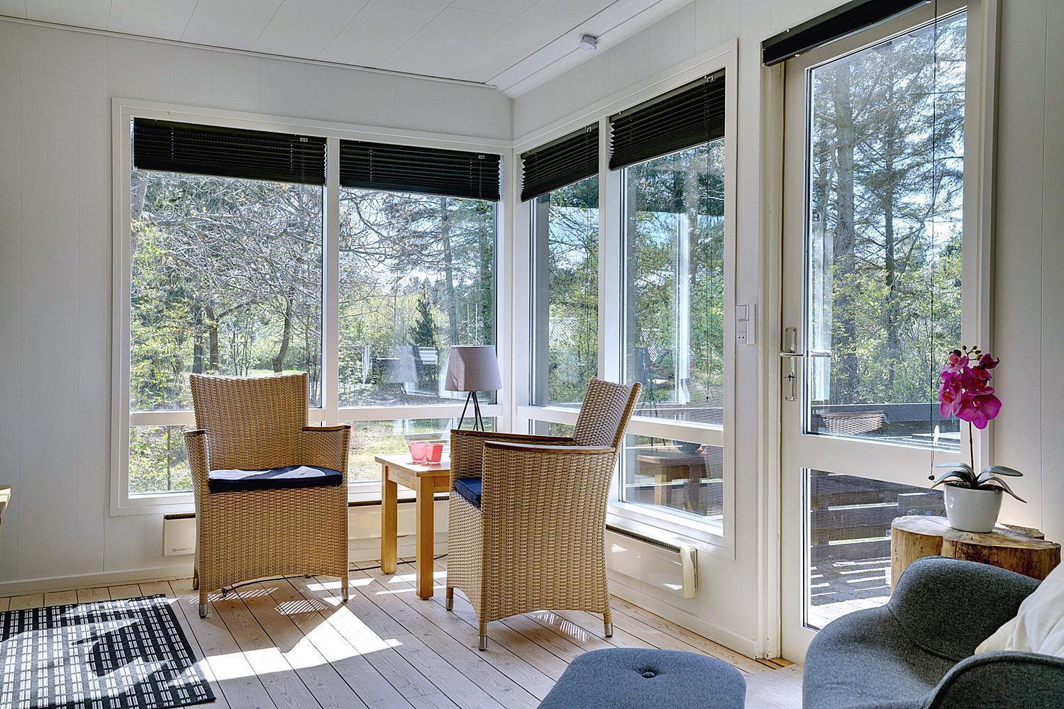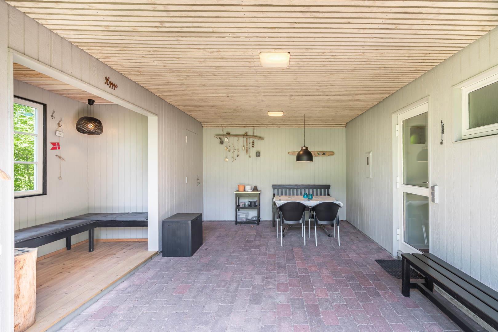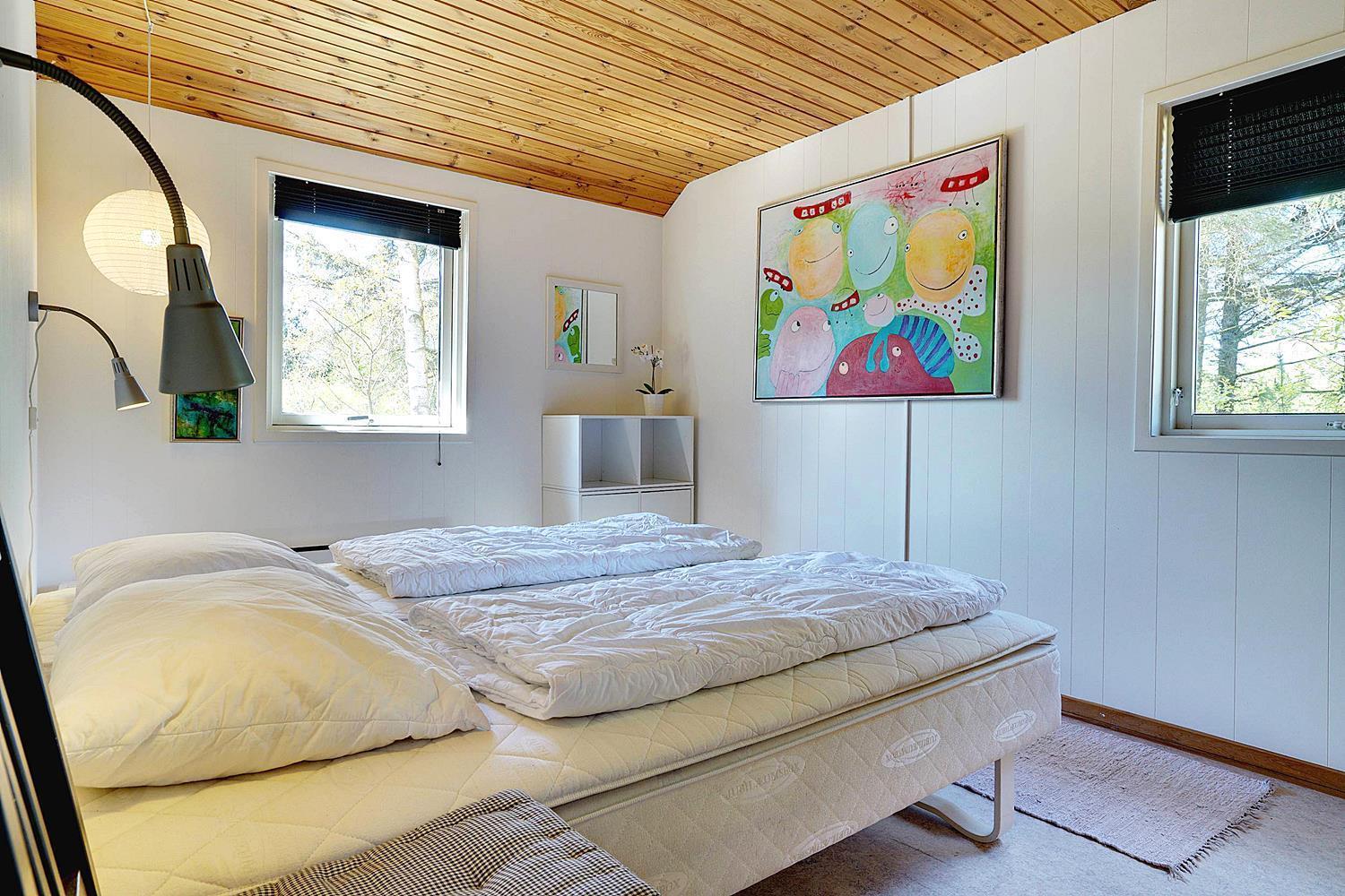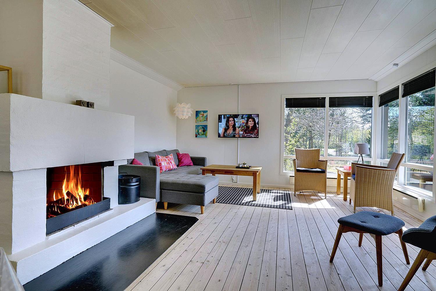 Hyggeligt og charmerende sommerhus, beliggende på en større naturgrund. På en dejlig naturgrund ligger dette charmerende og hyggelige feriehus. I huset med 3 soverum, hersker der dejlig feriehus stemning. Køkken og spiseplads er i åben forbindelse til hyggelig stue med pejs. Stort bryggers for opbevaring og med vaskemaskine og tørretumbler og udgang til udendørsbruser med varmt vand. Huset har flere terrasser, så solen kan nydes hele dagen samt hyggelige overdækkede uderum. Der er petanquebane på grunden og skur til rådighed. Energibesparende varmepumpe i huset.