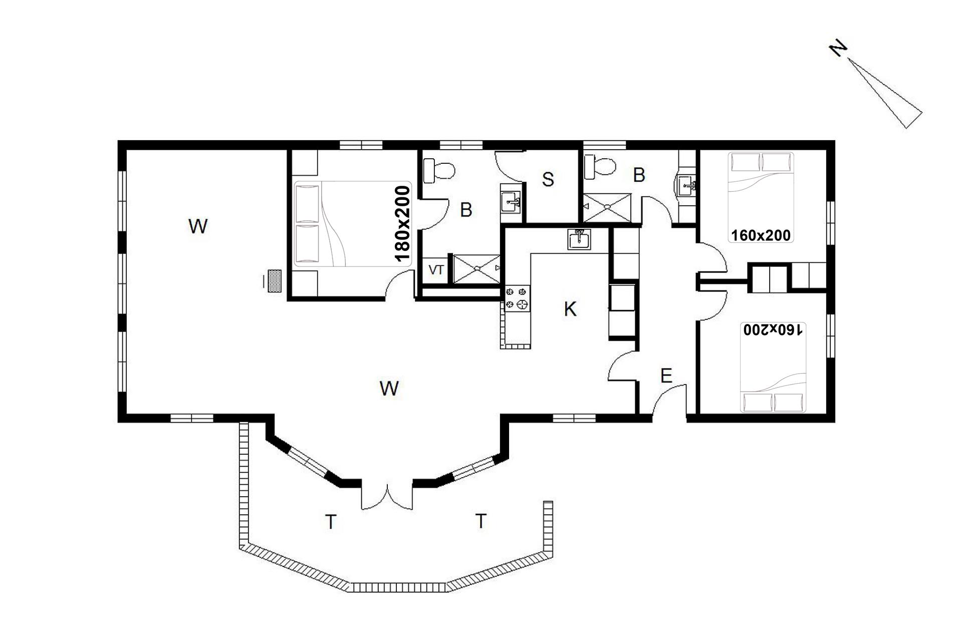 Sengestørrelser: 1 dobbeltseng 180x 200 cm + 2 dobbeltsenge 160 x 200 cm.