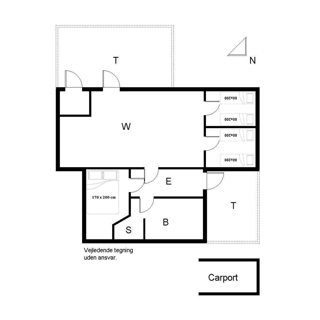 Sengestørrelse: 1 dobbeltseng 170 x 200 cm + 4 enkeltsenge 80 x 200 cm