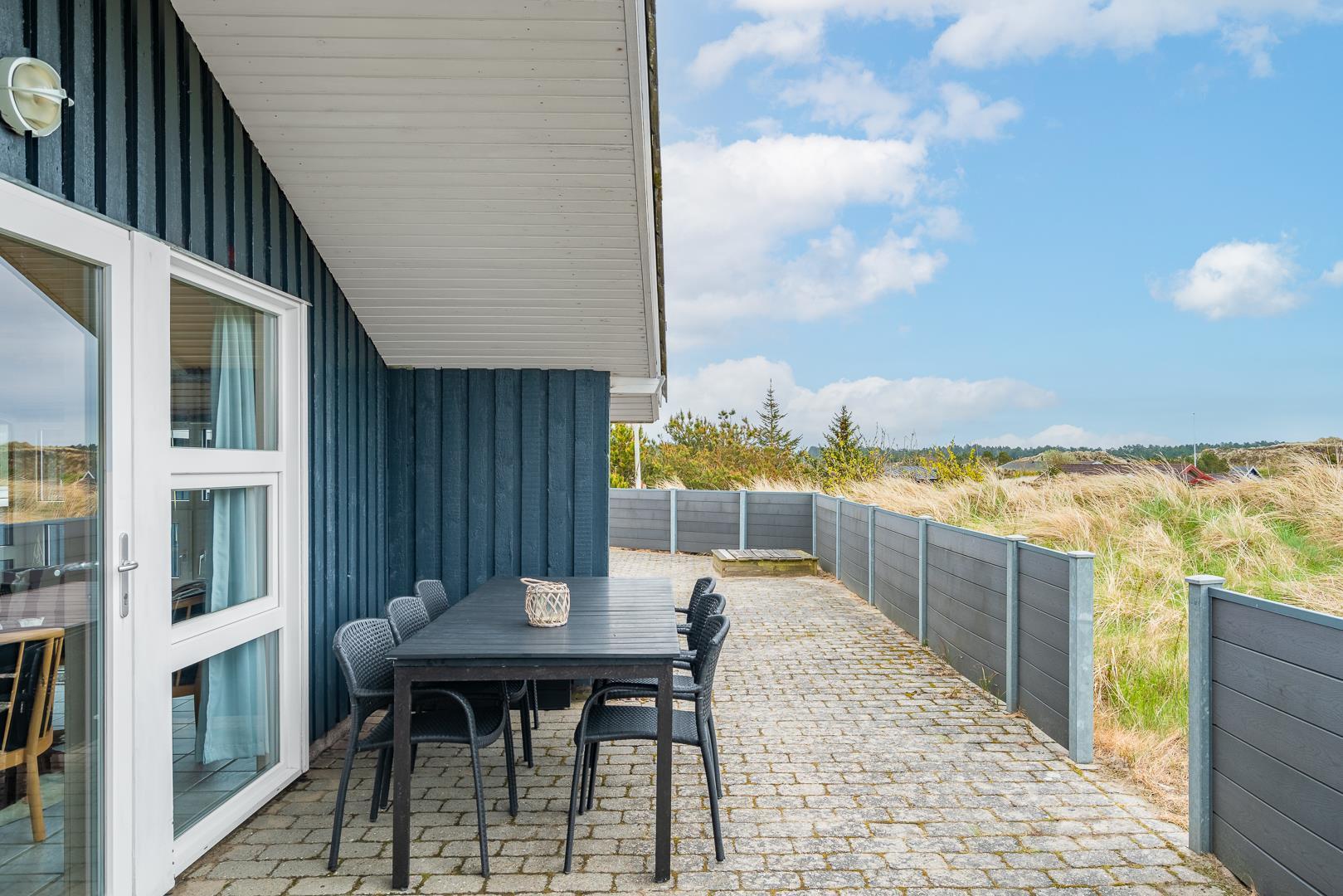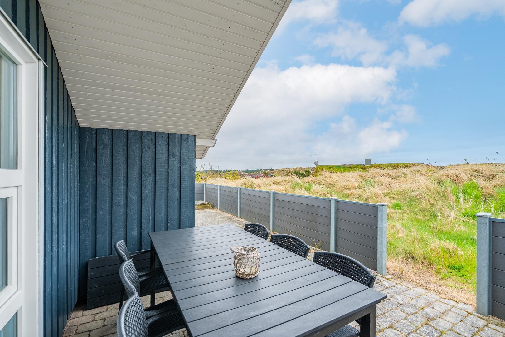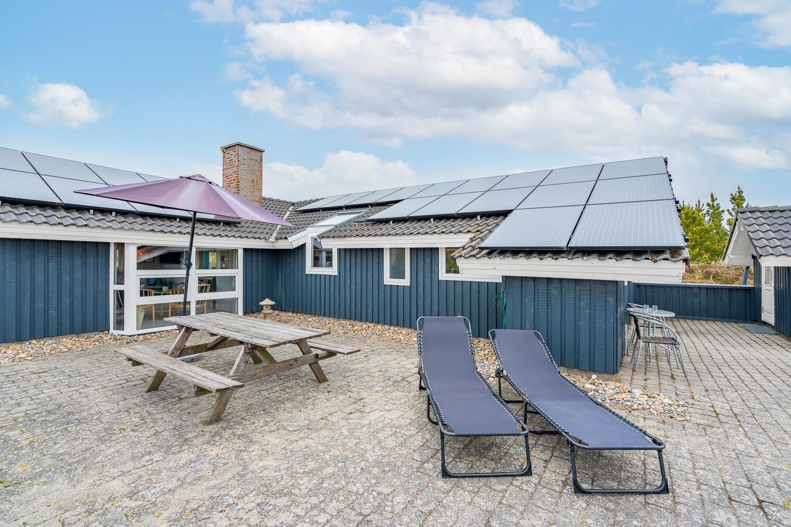 Hyggeligt feriehus med sauna, spa og stor sydvendt terrasse nær Henne Strand.