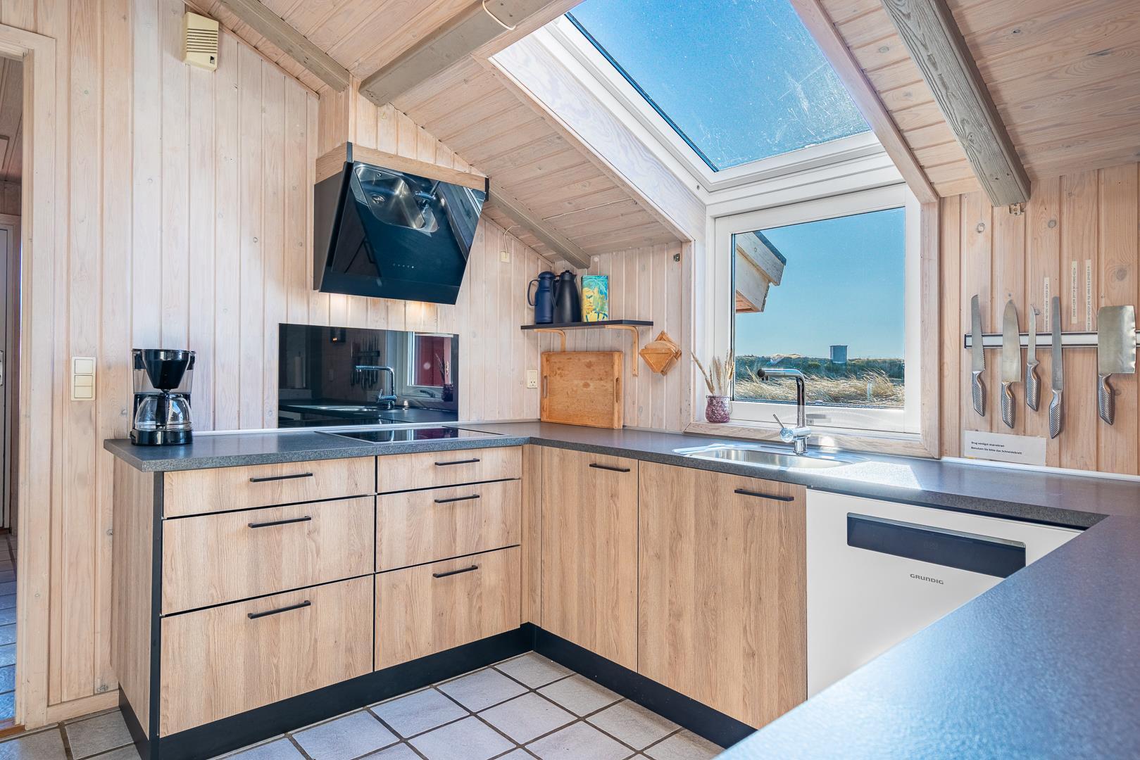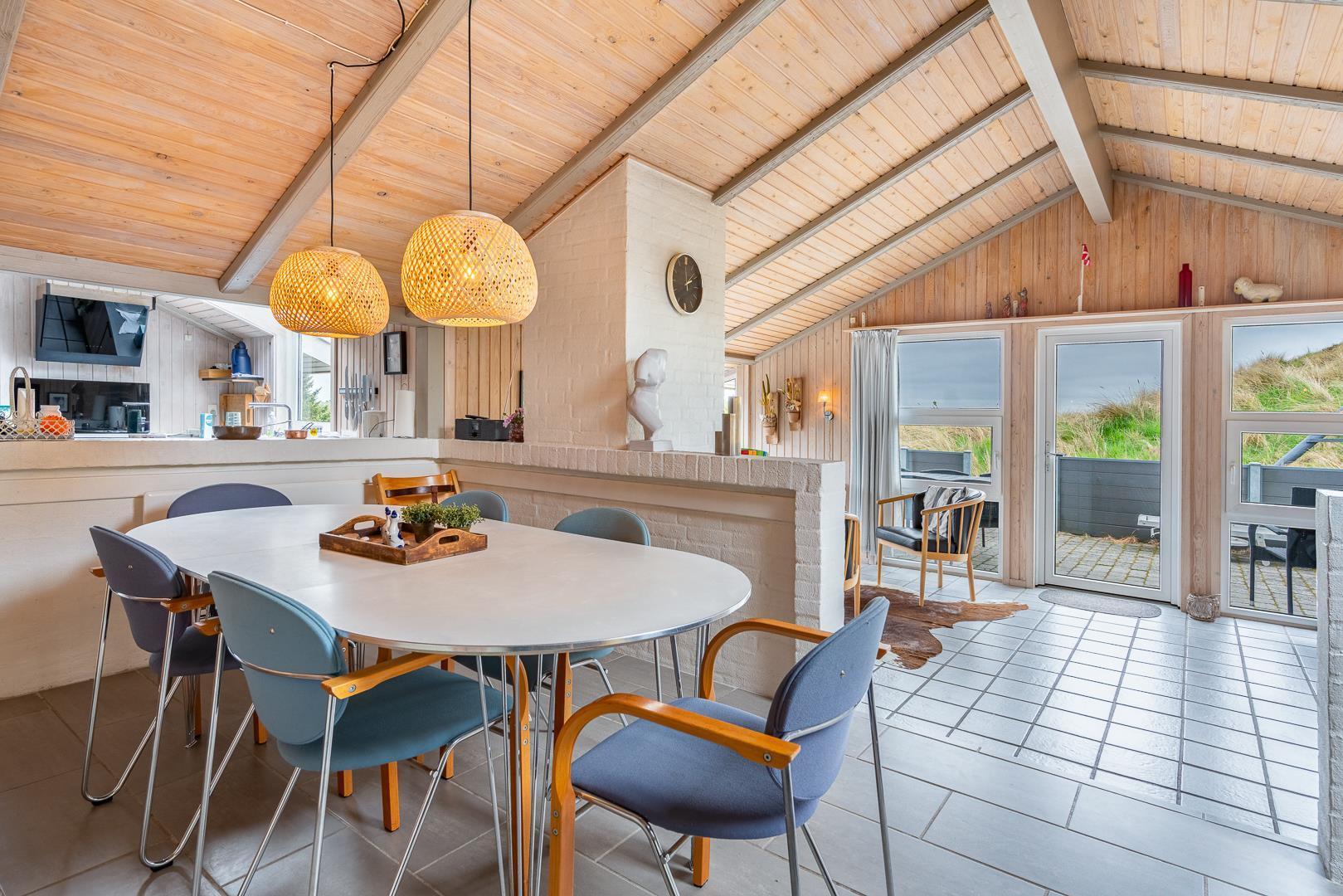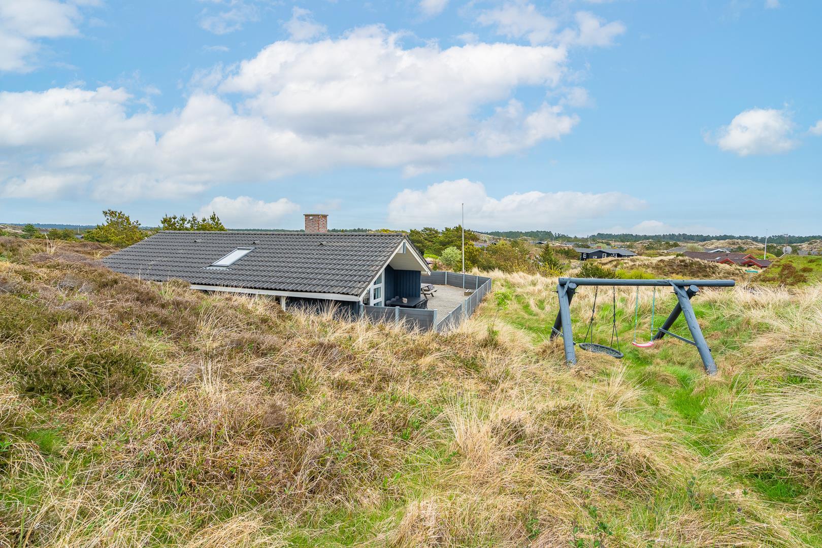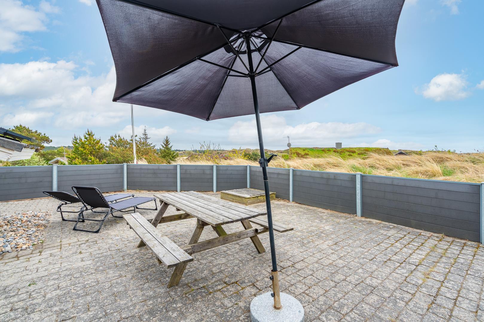 Hyggeligt feriehus med sauna, spa og stor sydvendt terrasse nær Henne Strand.