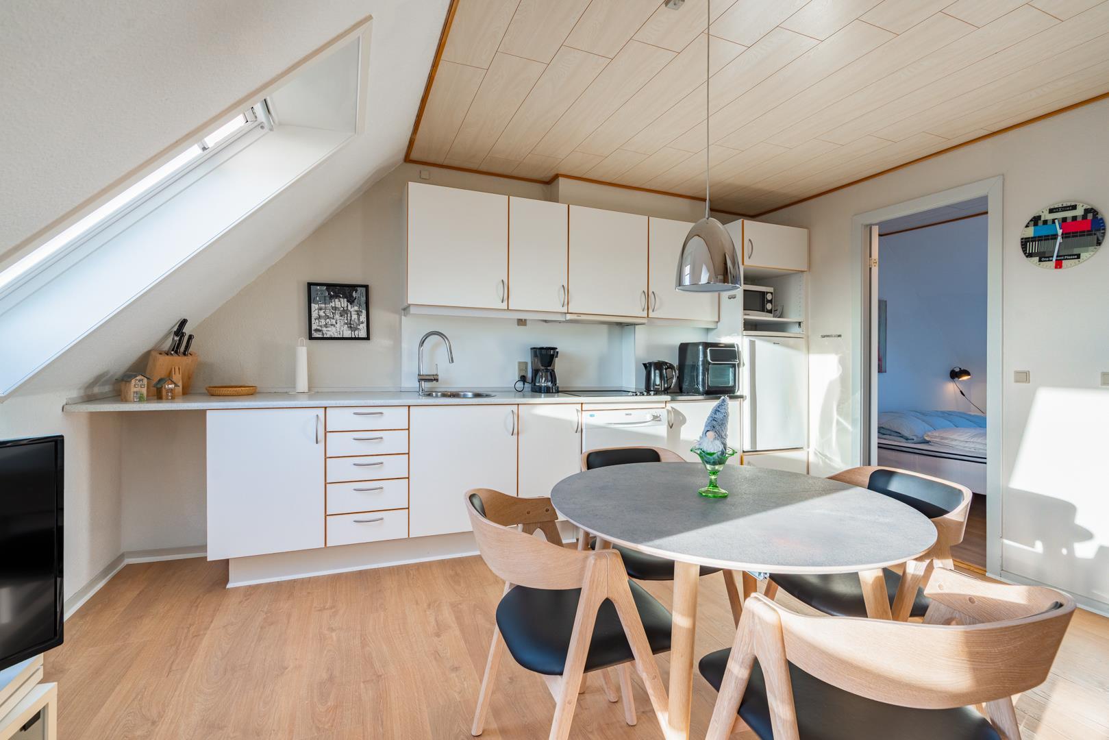 Charmerende ferielejlighed i Henne Strand med sydvendt terrasse og udsigt til hav og klitter.