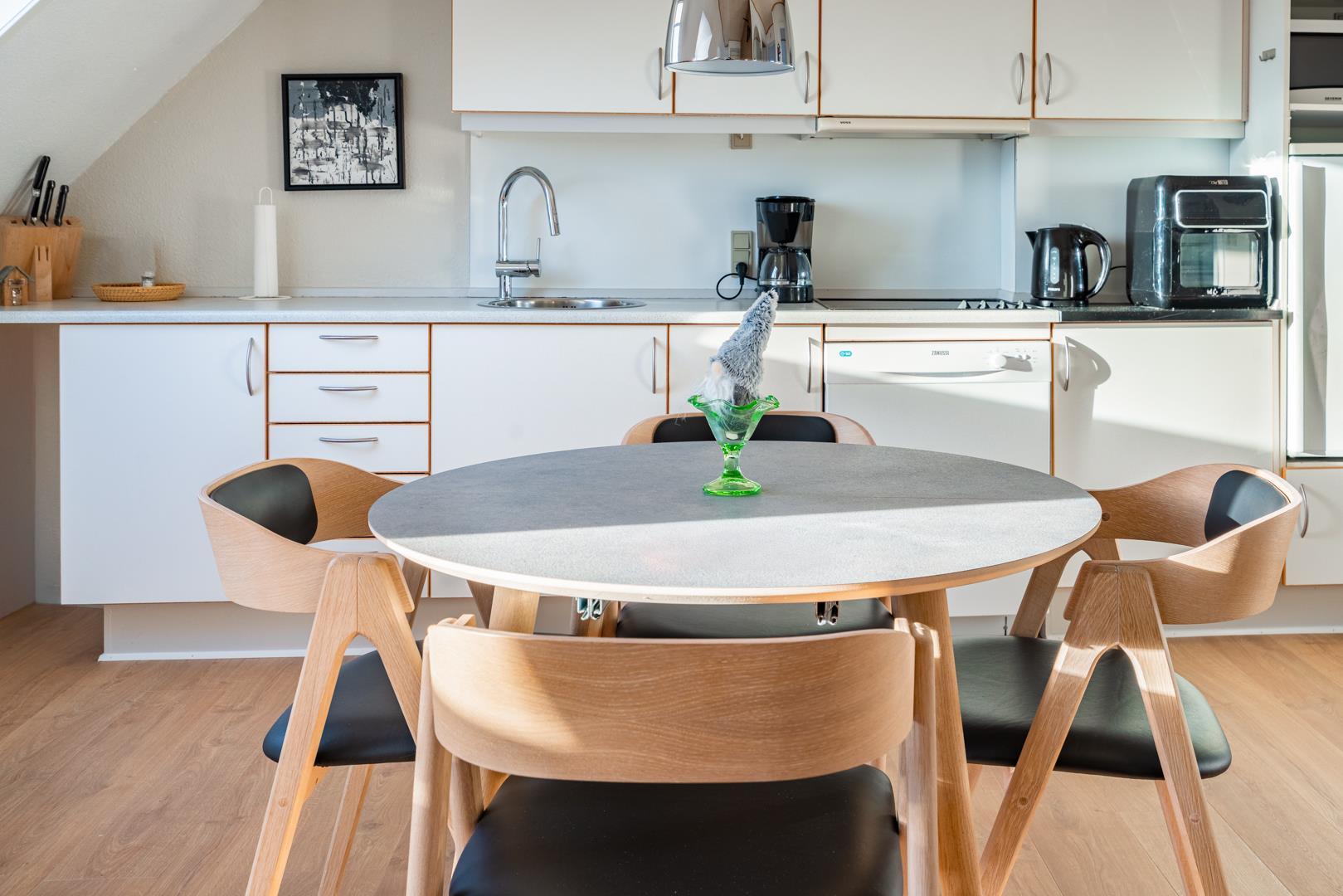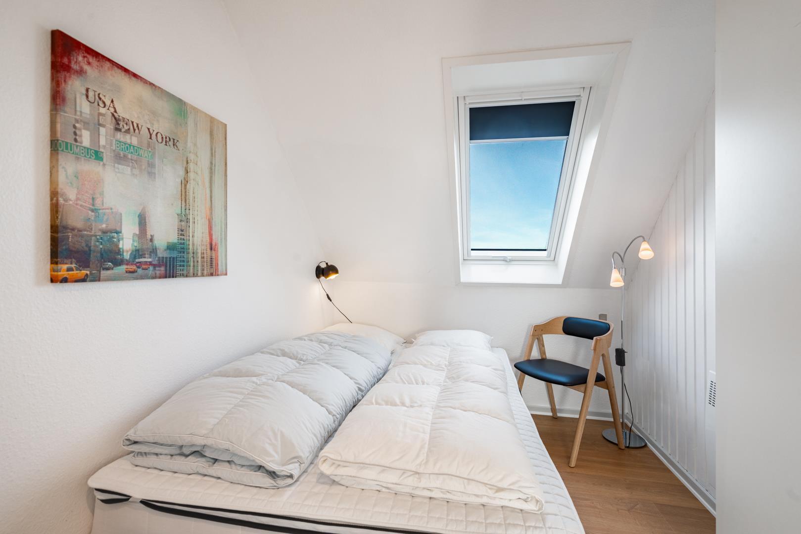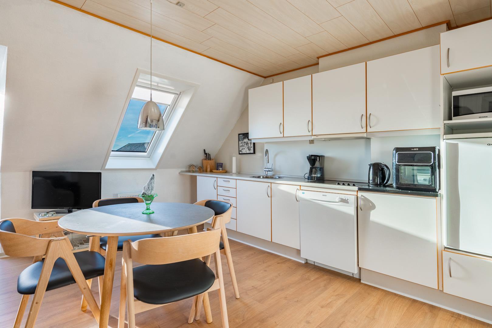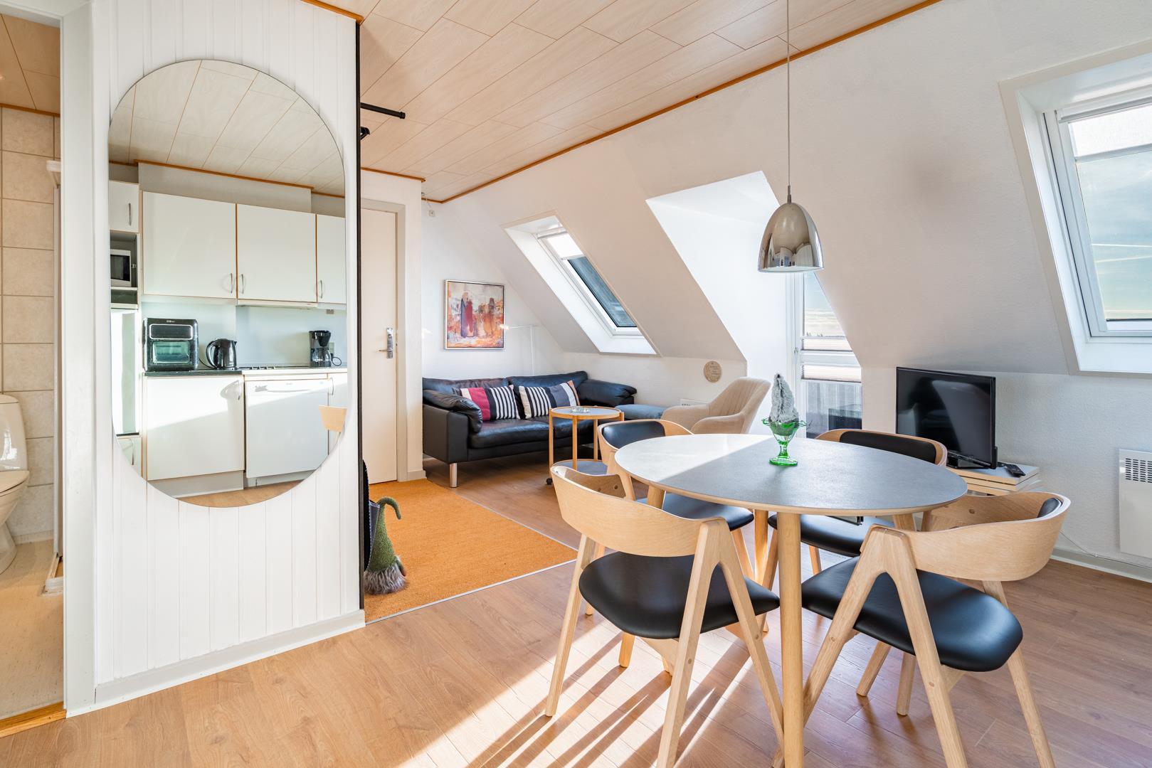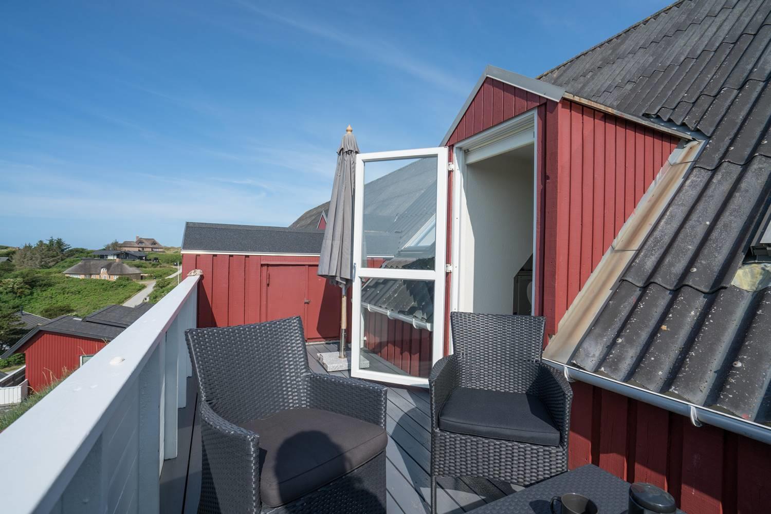 Ferielejlighed med sydvendt terrasse med unik udsigt til både hav og klitter. Lejligheden er lys og råder over lille hyggelig sofahjørne. Fra den store balkon mod syd, kan havudsigten nydes. To soverum, en med en dobbeltseng og en med enkeltsenge. Vaskeri er gratis.