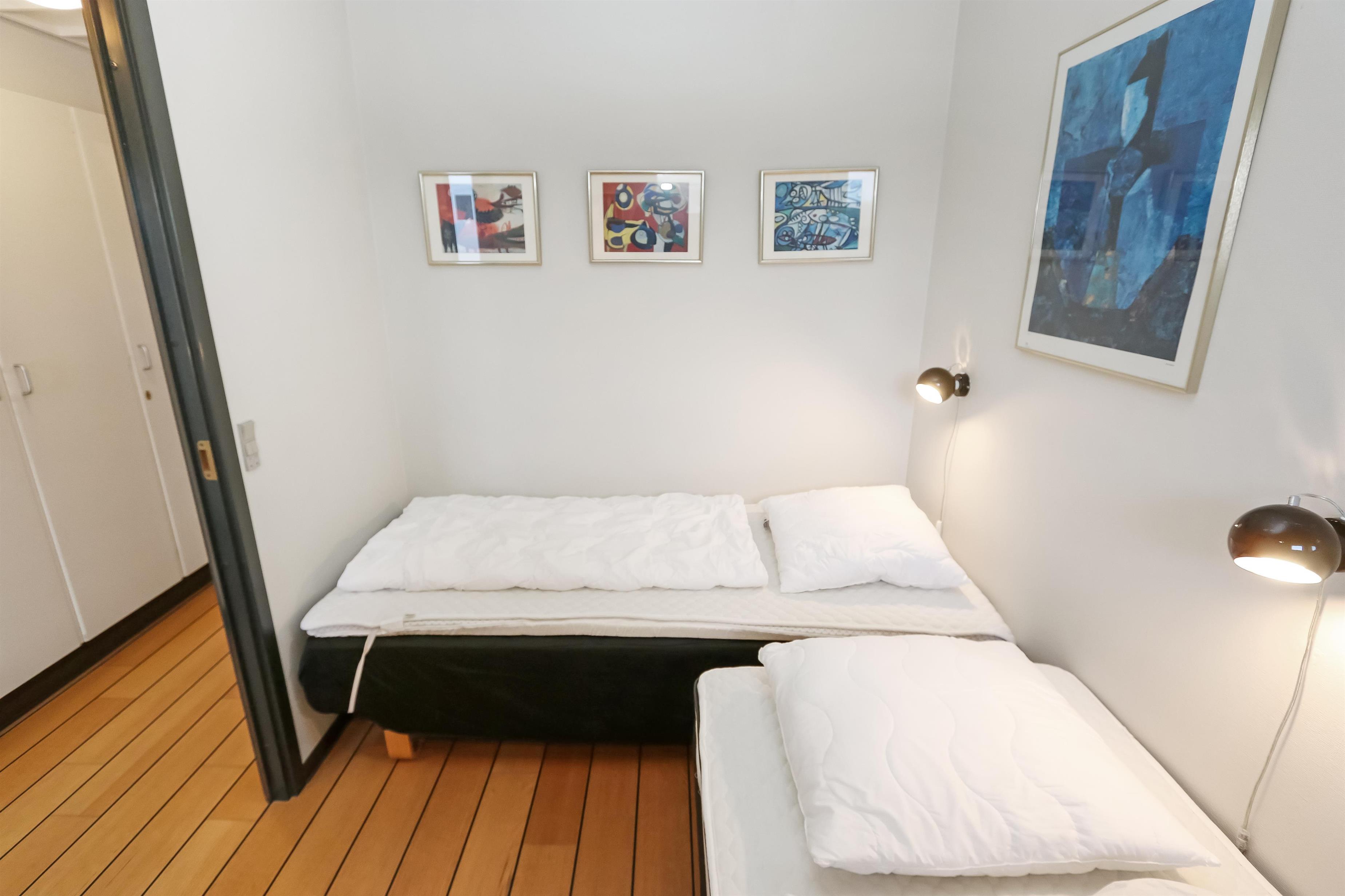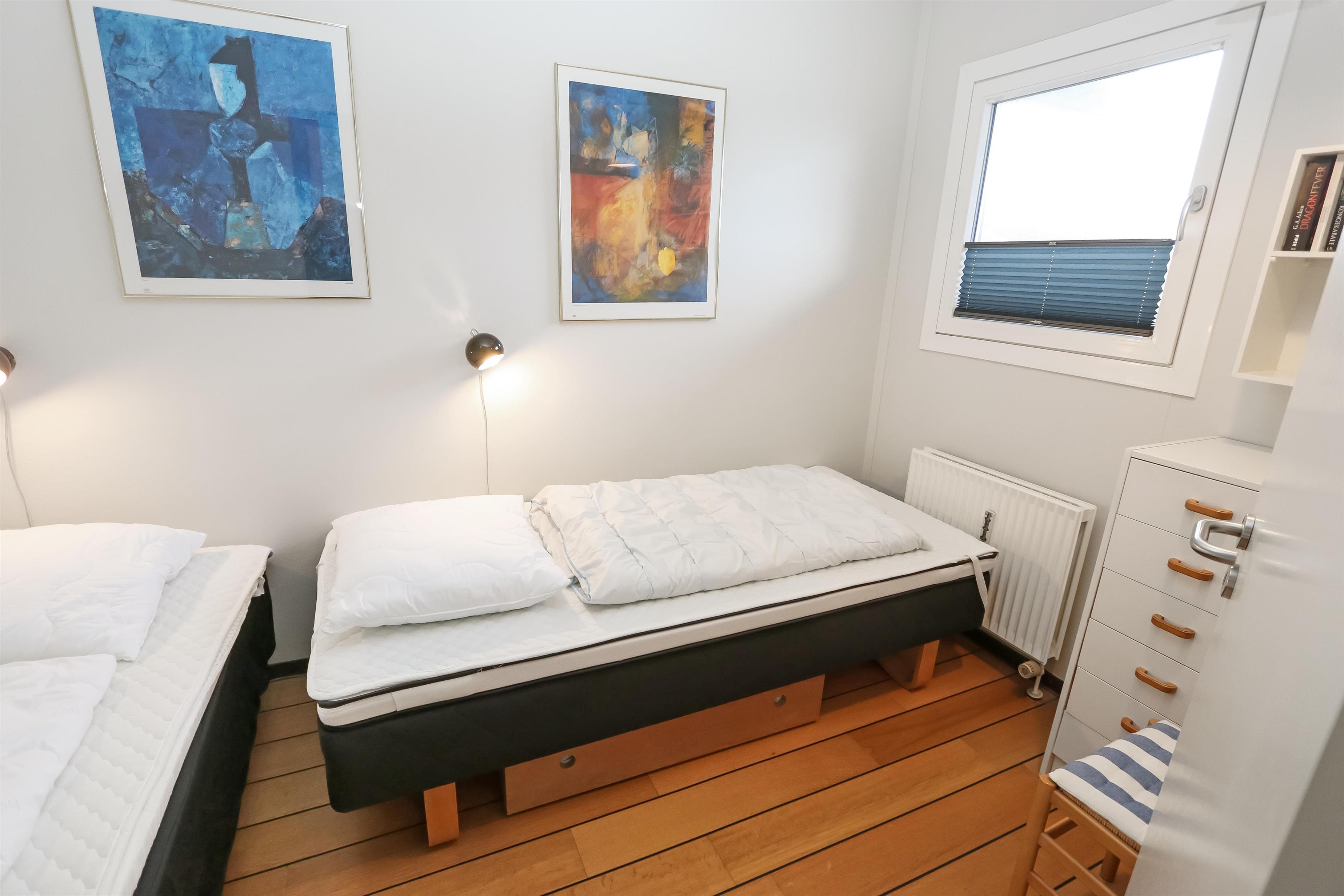 Ferielejlighed til 2 personer på 1. sal. Kombineret køkken og stue med gulvtæppe. Stuen er indrettet med polster og lædermøbler samt kabel-TV. Køkken med køleskab med 10 l frostboks, opvaskemaskine, el-keramisk komfur, emhætte. 1 soverum: 2S og trægulv. Badeværelse med toilet, håndvask og bruser. Fra stuen er der udgang til lille delvis overdækket balkon med havemøbler. Trappen til 1. sal består af 21 trappetrin.
