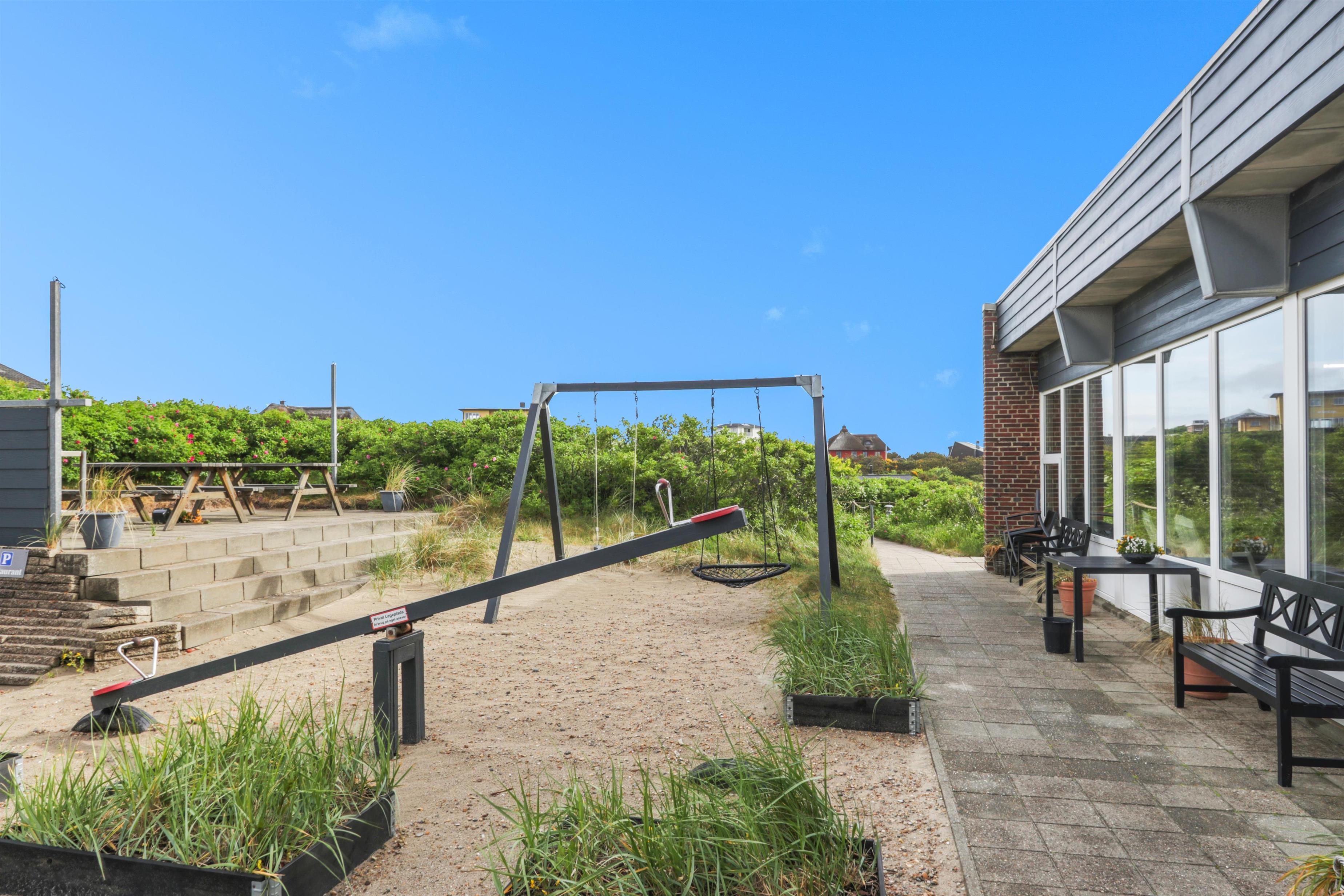 Til de små gæster er der en dejlig legeplads, hvor man kan suse ned af rutchebane eller lege i klatre- og gyngestativet m.m., mens forældre kan slappe af og nyde synet af Vesterhavet. Skulle det ske, at du spilder en kugle is på sin T-shirt når du har besøgt en lokale isbar, så har Henne Strand Feriecenter også et møntvaskeri med vaskemaskiner og tørretumblere. Har du medbragt eller lejet cykler er der mulighed for at låse disse ind centrets cykelrum, hvor der selvfølgelig også er en stor fryser som frit kan benyttes, hvis du har været på fisketur eller blot har brug for ekstra fryseplads.