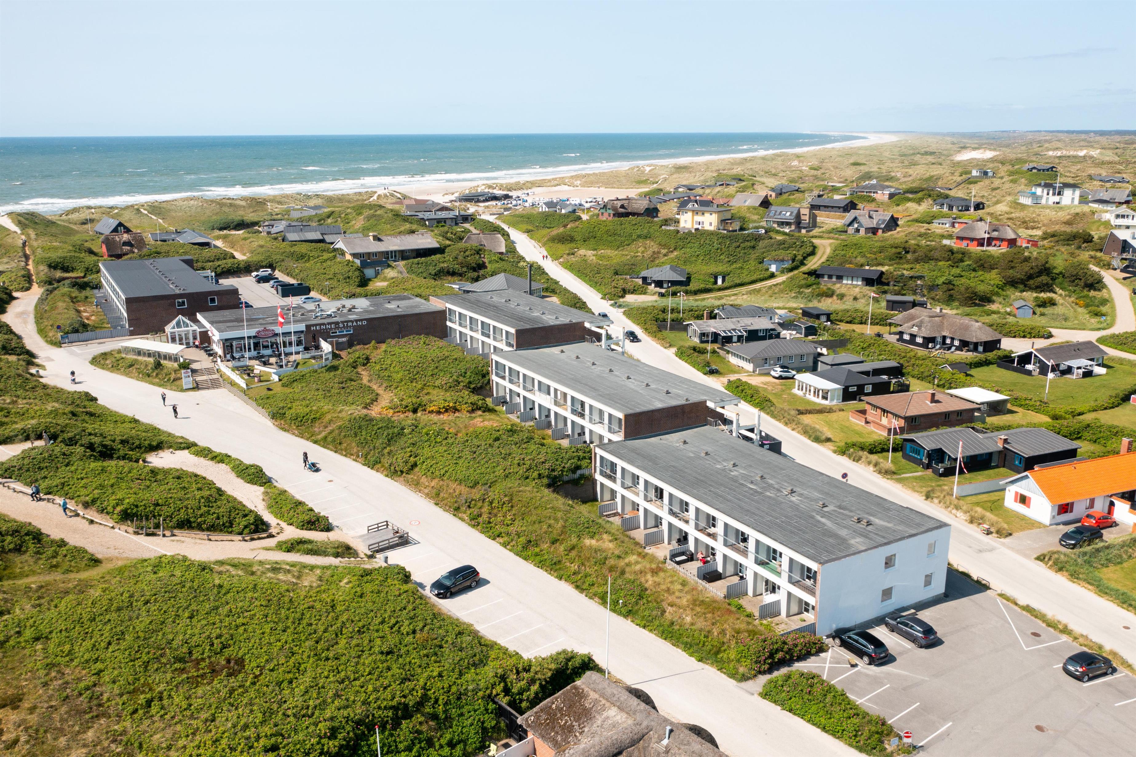 Henne Strand Feriecenter er en dejlig oase med mange muligheder og masser af spisesteder. Om du er til en ægte Strandby med masser af indkøbsmuligheder, aktiv ferie eller blot ønsker at bo tæt ved Vesterhavet så er der alle muligheder i Henne Strand. På selve feriecenteret er der mange faciliteter. Spiller du golf ligger der en 18 hullers golfbane i Henne By - kun 3 km meter fra lejligheden. Her der også findes en butik med rav, ridecenter og Henne Kirkeby Kro som er en enestående Michelin gourmetoplevelse. I Blåbjerg Plantage er der en fantastisk mountainbikerute og dejlige afmærkede stier – som kan benyttes i alt slags vejr både til fods og på cykel. Den genoprettede Filsø ligger sydøst fra Henne Strand og tilbyder en unik natur oplevelse i særklasse. Hertil kommer at Vesterhavet ligger 150-200 m fra lejlighederne. En oplevelse som hver dag året rundt byder på nye maleriske indtryk.