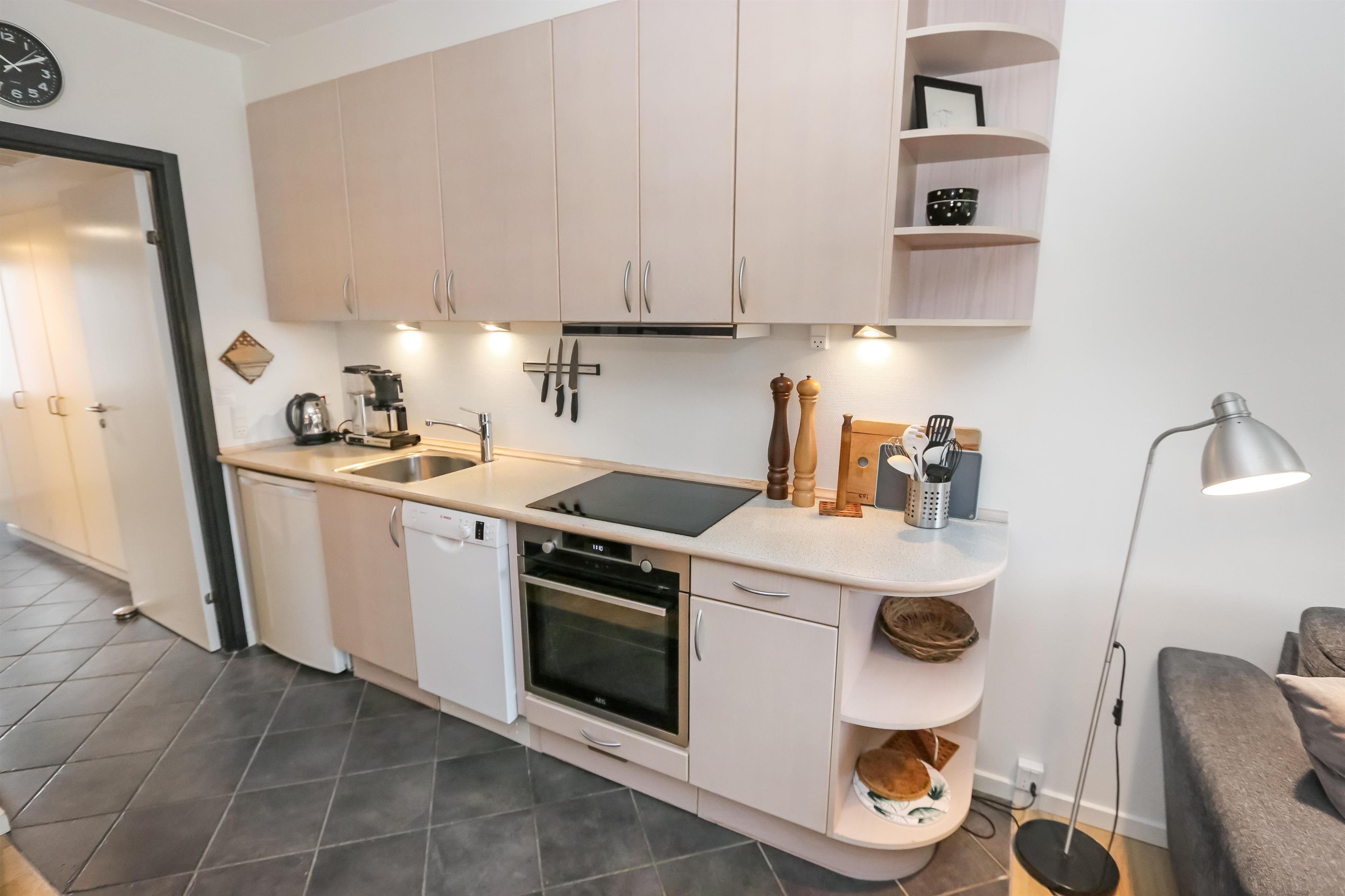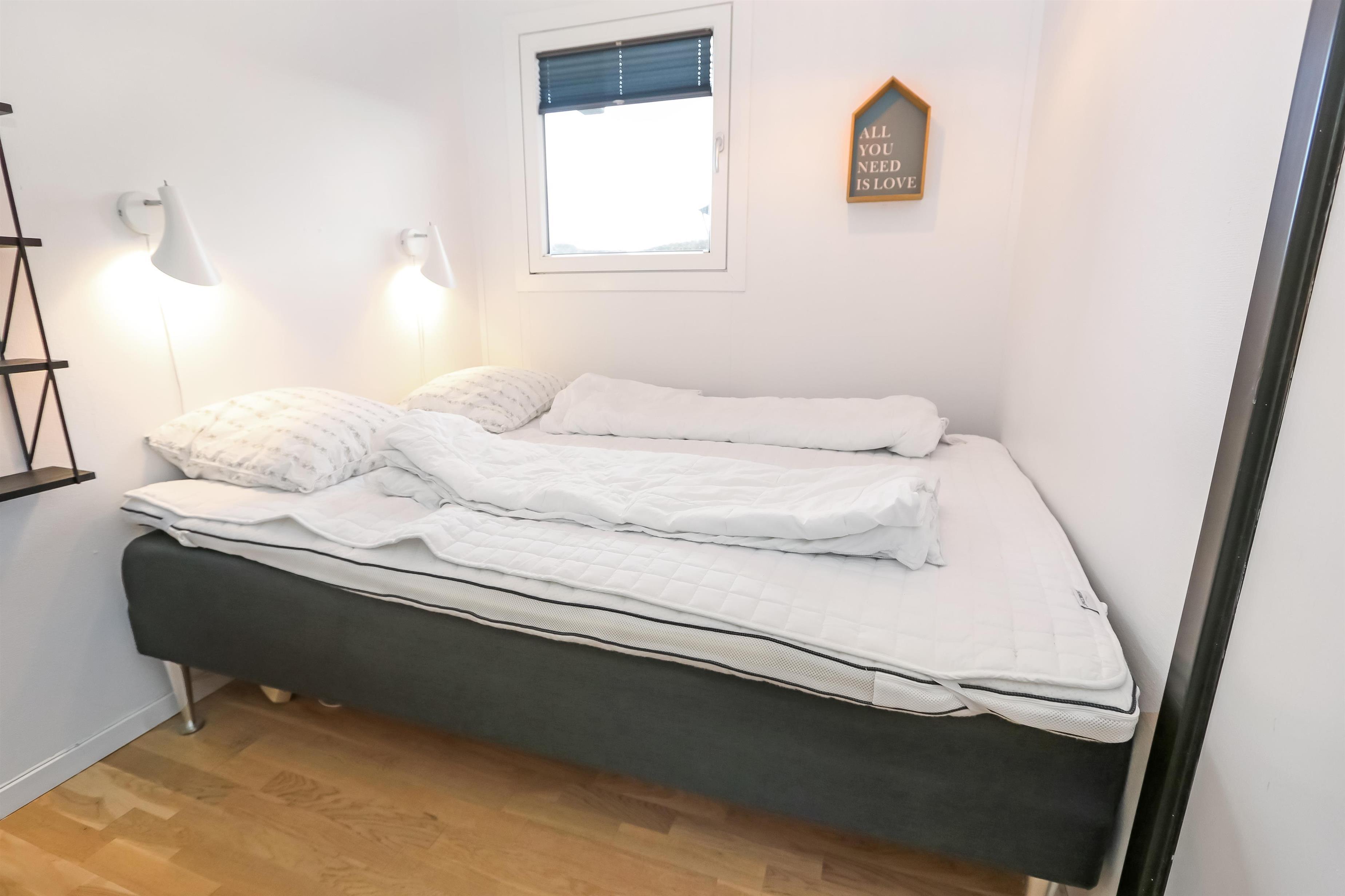 Meget hyggelig og pænt indrettet ferielejlighed til 4 personer. Kombineret stue og køkken. Køkkenet er indrettet med glaskeramisk komfur, emhætte, opvaskemaskine og køleskab med lille frostboks. Stuen er indrettet med trægulv, polstermøbler, radio, CD-afspiller, DVD og kabel-TV, sofaen i stuen kan slåes ud så der er plads til 2 personer. Fra stue er der udgang til lille indhegnet og delvis overdækket terrasse med havemøbler. 1 soverum: 1DS + 1ES. Badeværelse med håndvask, bruser og toilet.