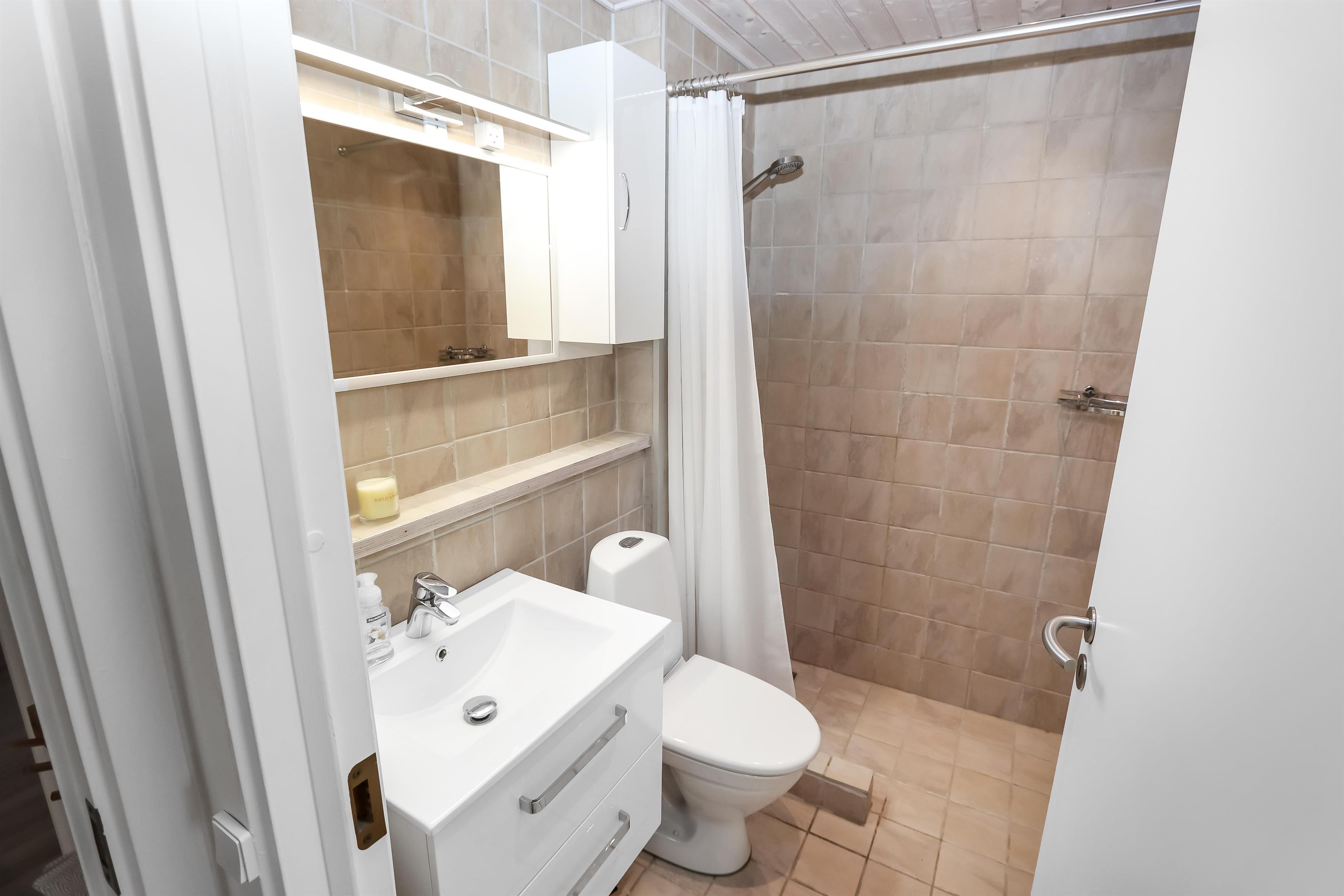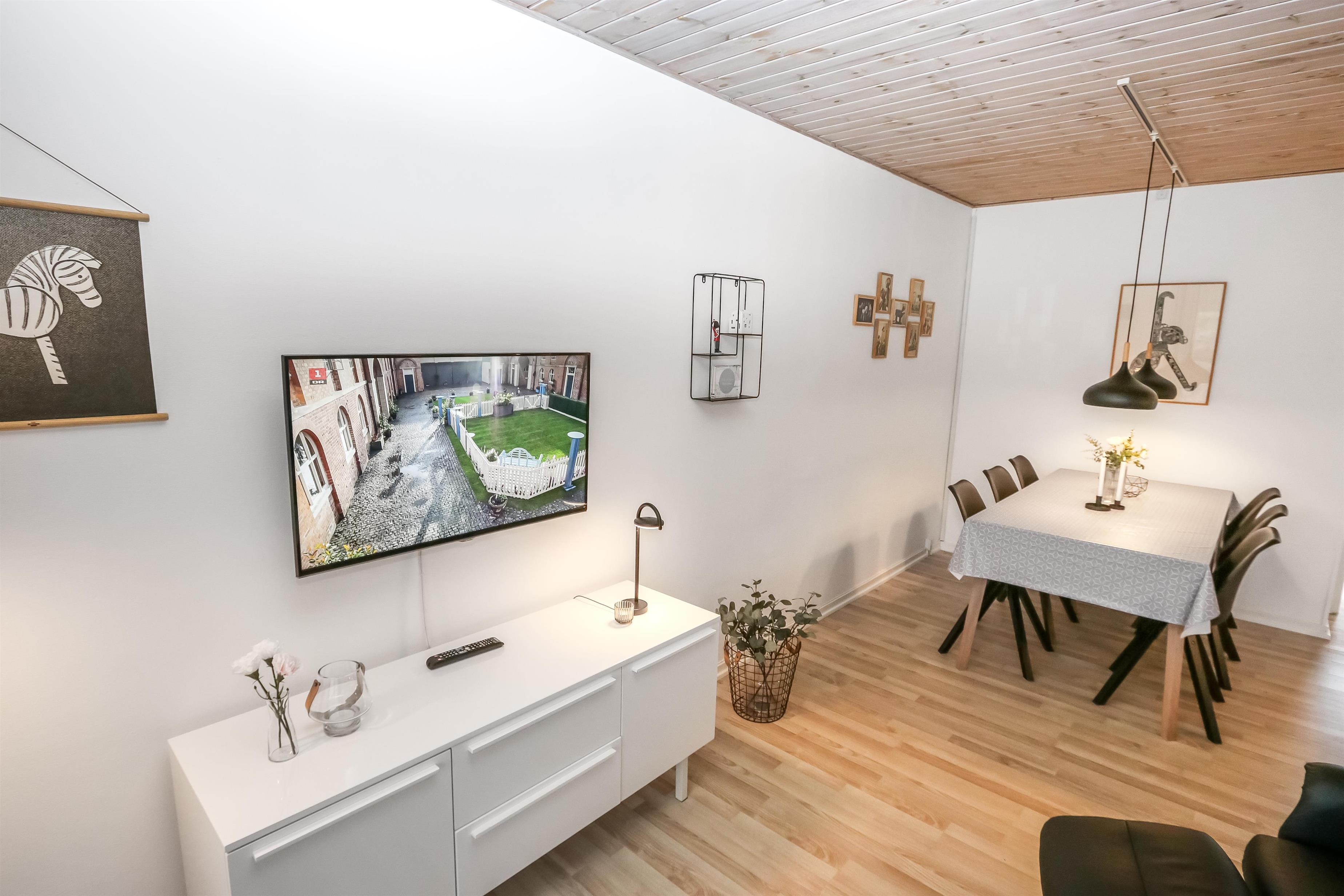 Flot renoveret ferielejlighed til 2 personer beliggende i stueplan. Kombineret stue og køkken med laminatgulv. Stuen er indrettet med gode lædermøbler, kabel-TV. Køkkenet er med el-keramisk kogeplade, indbygningsovn, emhætte, køleskab med 40 l fryseboks, opvaskemaskine. Badeværelse med toilet, håndvask og bruser. 1 soverum med 1DS + 1S ekstra TV og laminatgulv. Fra stuen er der udgang til lille delvis overdækket terrasse med havemøbler.