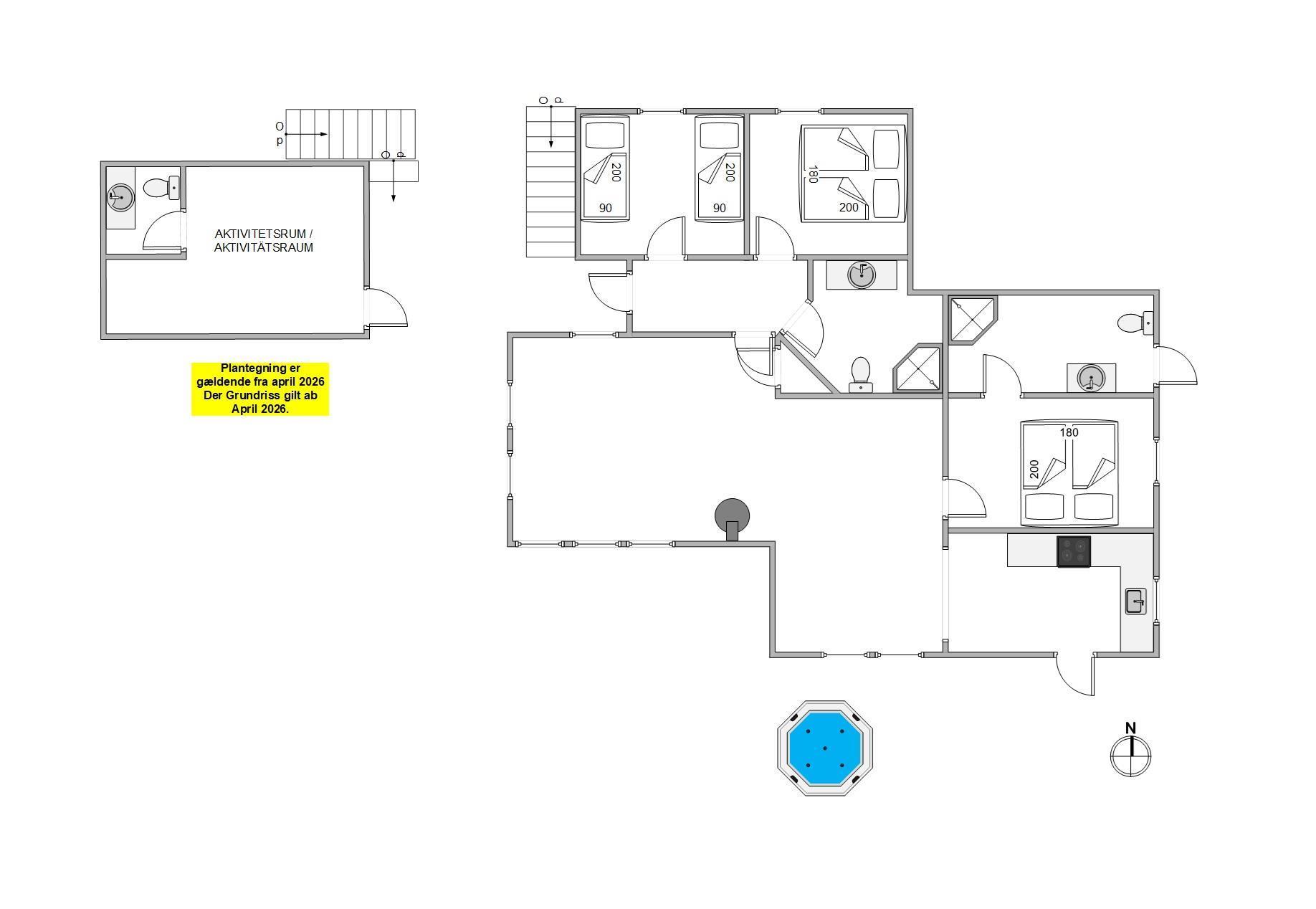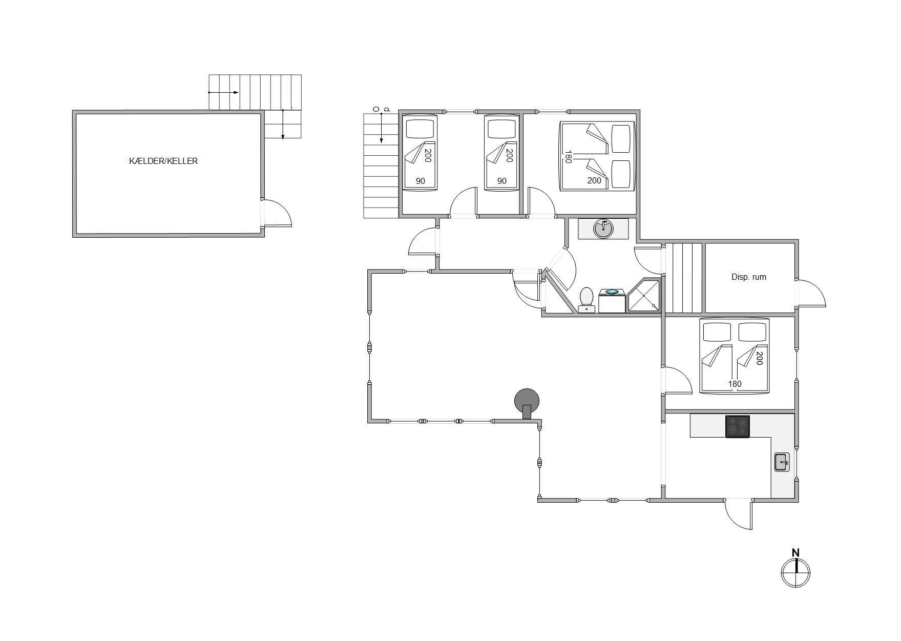 Derudover sørger en energibesparende og støgsvag luft-til-luft varmepumpe for jeres komfort, uanset vejret udenfor. Blandt sommerhusets yderligere faciliteter finder I en fryser på 80 liter og en effektiv opvaskemaskine.