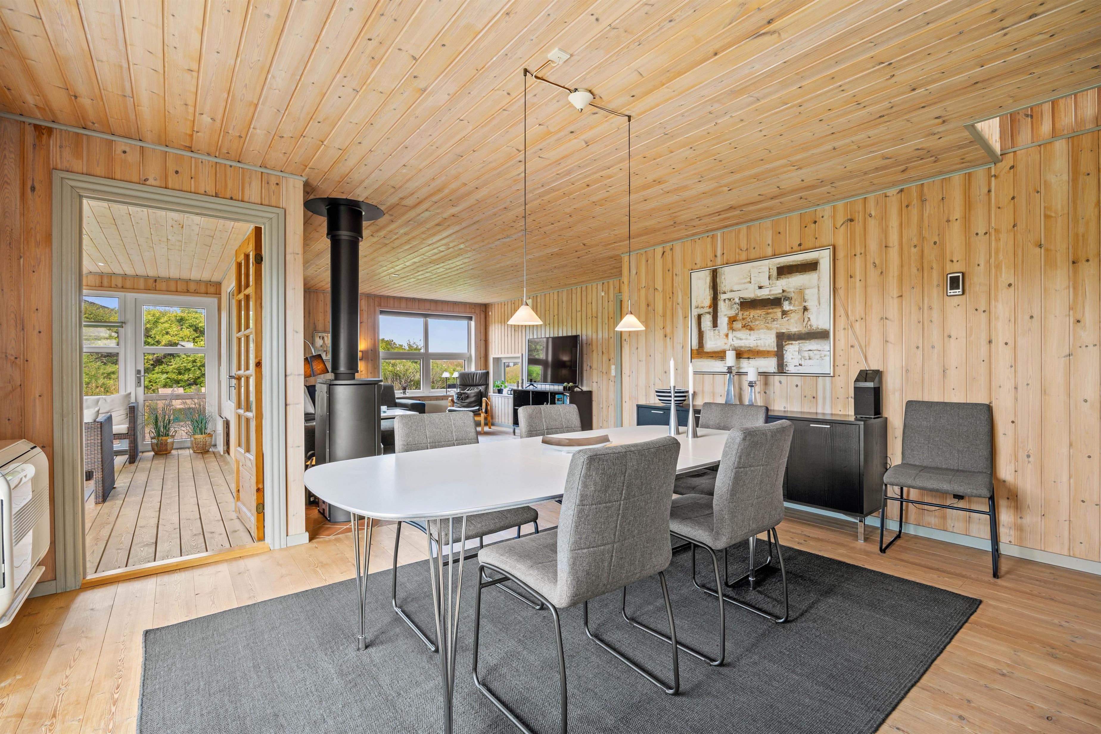 En trappe fører jer fra P-pladsen op til dette sommerhus, som straks byder jer indenfor med autentisk sommerhusstemning, der vil gøre jeres ophold både behageligt og mindeværdigt. På de koldere aftener kan I samles om brændeovnen, der skaber en hyggelig atmosfære med varme og afslapning – imens I benytter More TV, som byder på underholdning for hele familien.