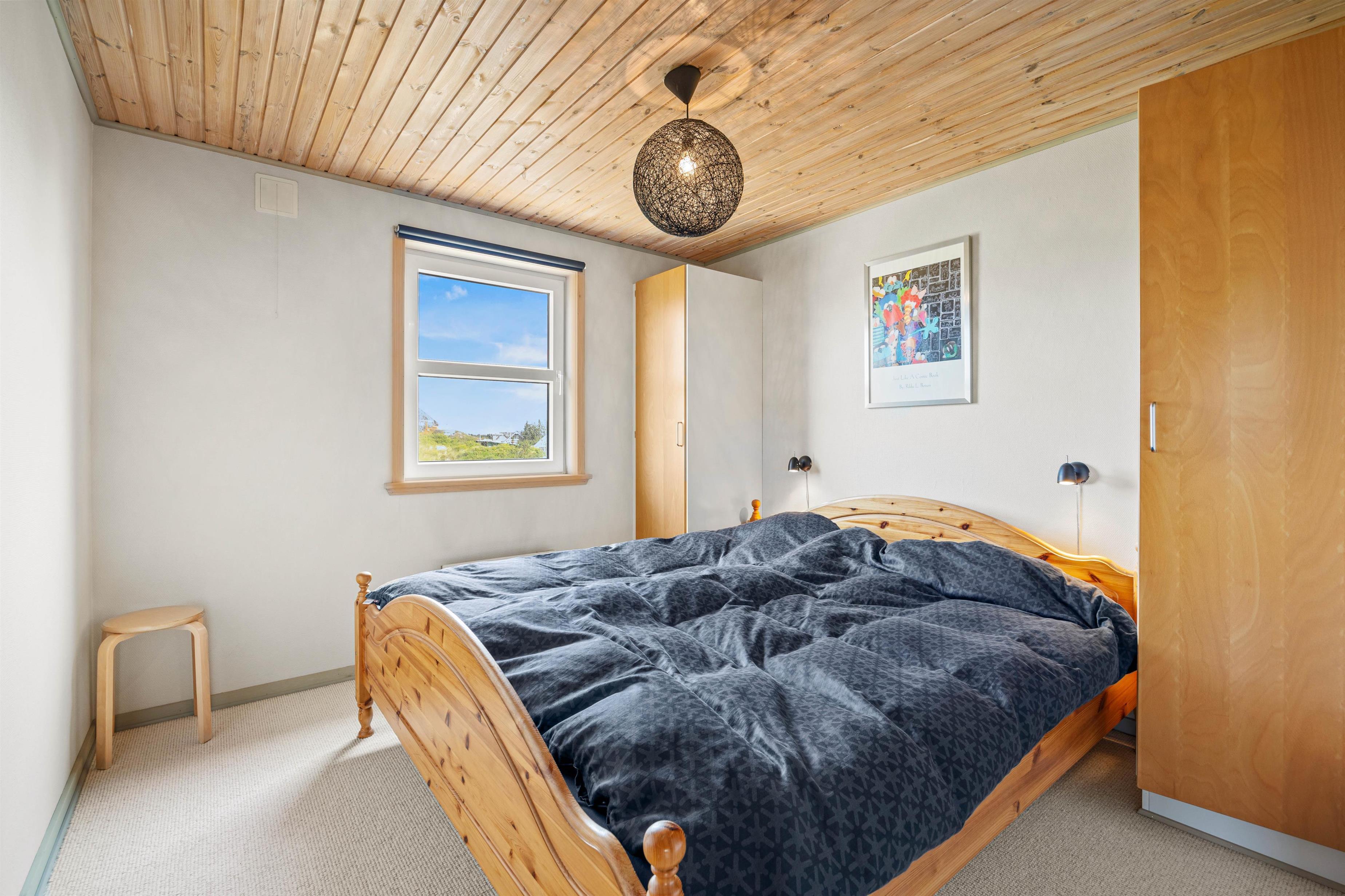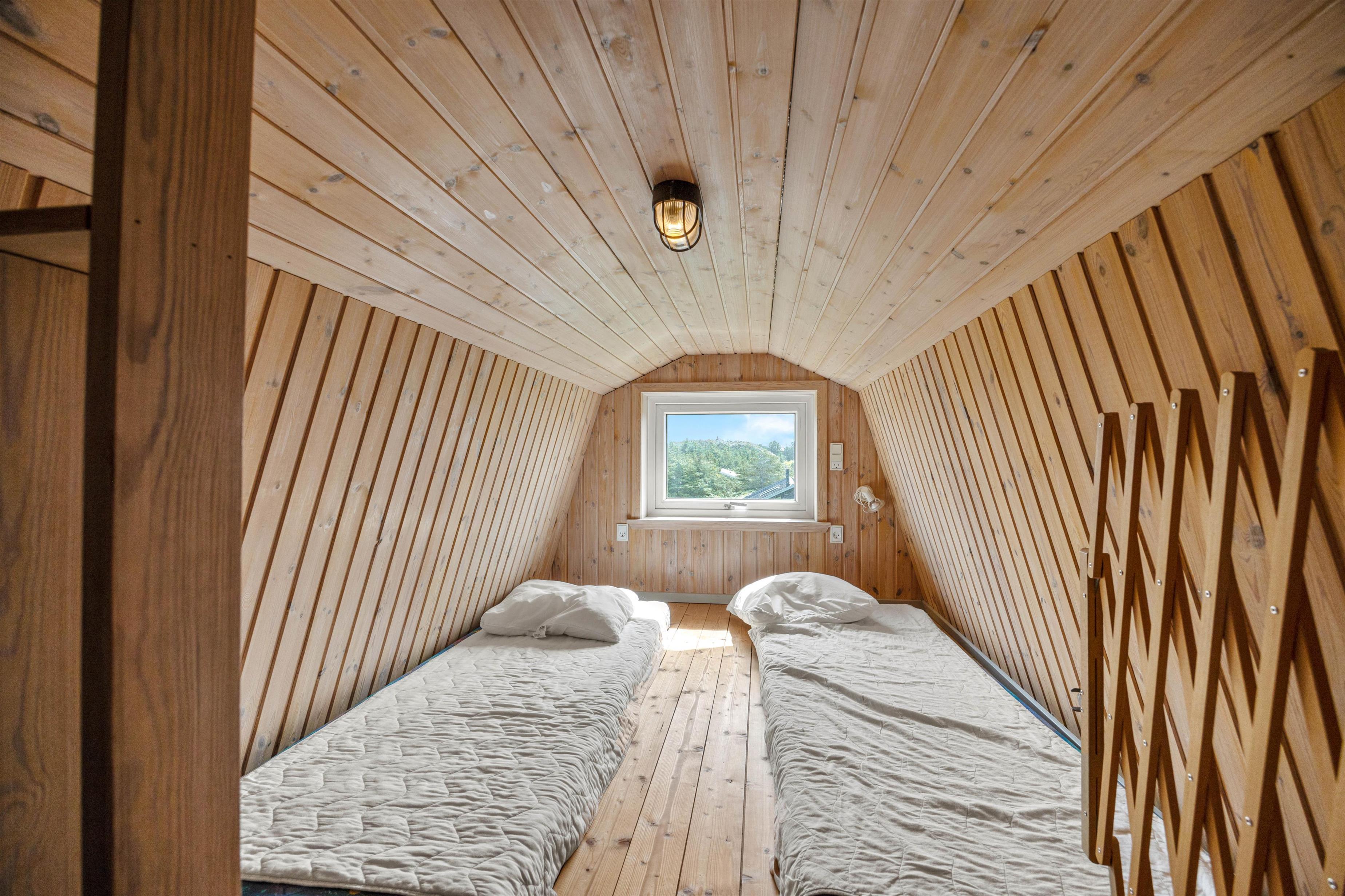 Dette sommerhus byder på 3 rummelige soveværelser, udstyret med dobbeltsenge og enkeltsenge, der sikrer en komfortabel søvn. De 2 yderligere sovepladser findes på den hyggelige hems, hvortil en stejl trappe fører jer op. Efter en dag fyldt med oplevelser kan en tur i saunaen varme kroppen igennem. Saunaen befinder sig i det moderne badeværelse med gulvvarme, hvor også tørretumbler og vaskemaskine befinder sig, for at gøre jeres ophold i dette sommerhus endnu mere bekvem.