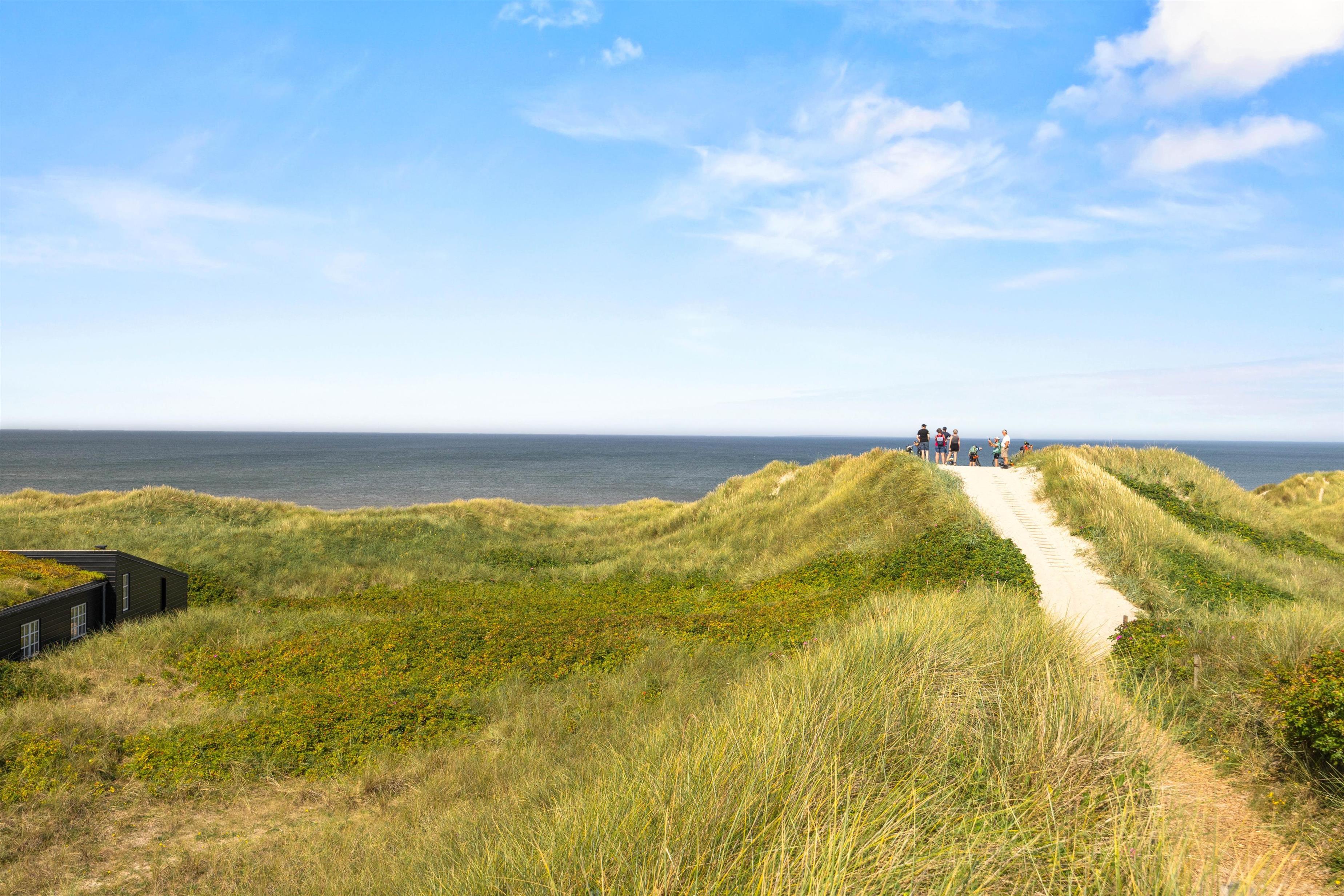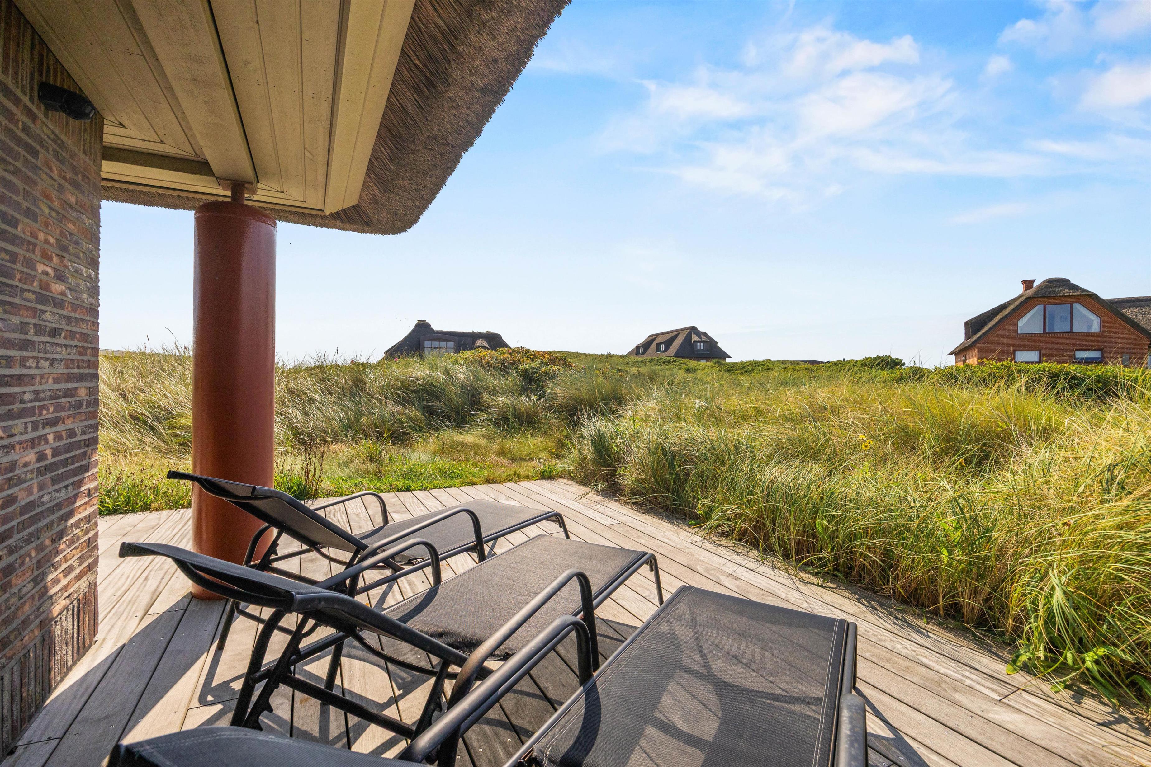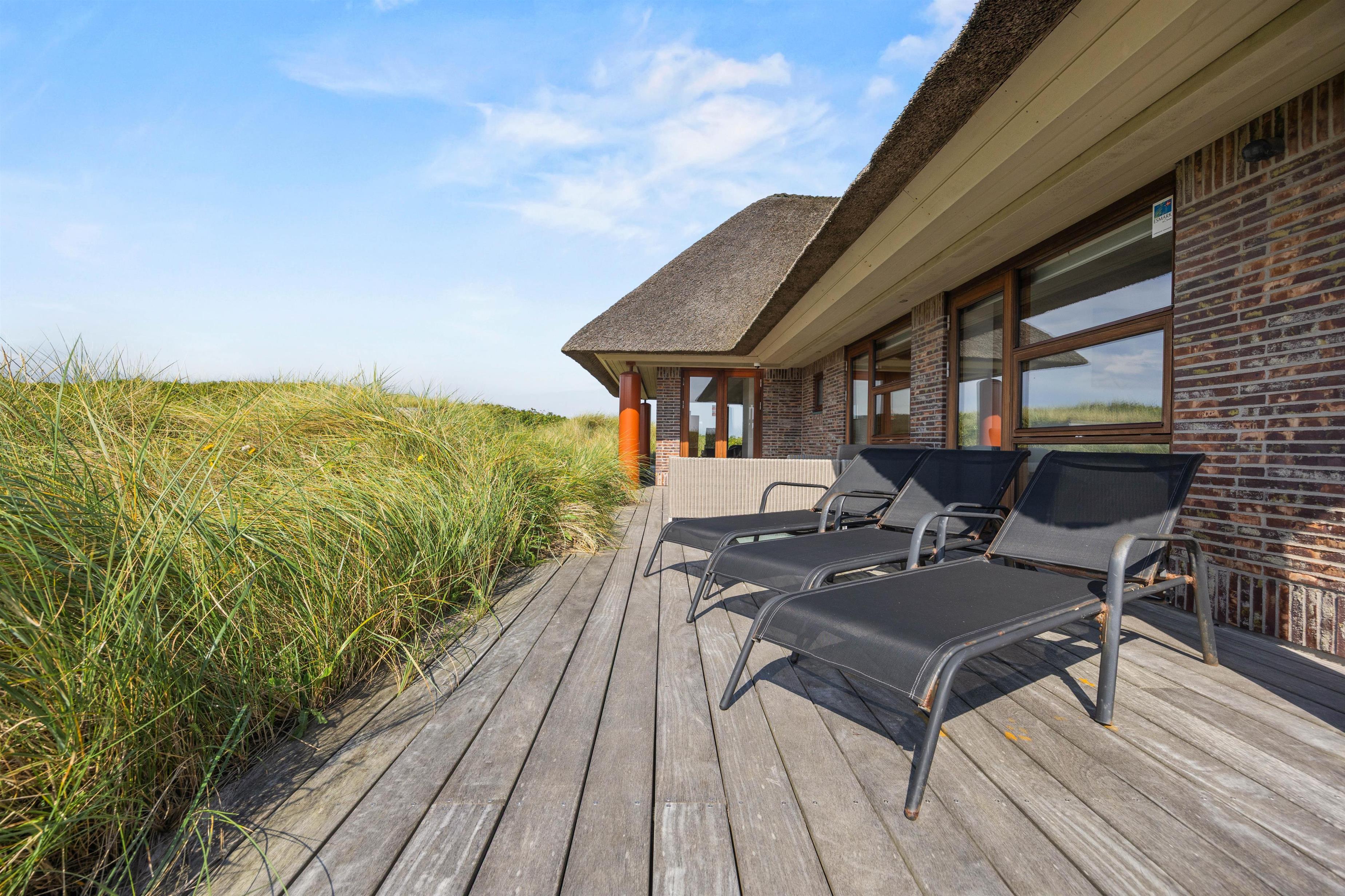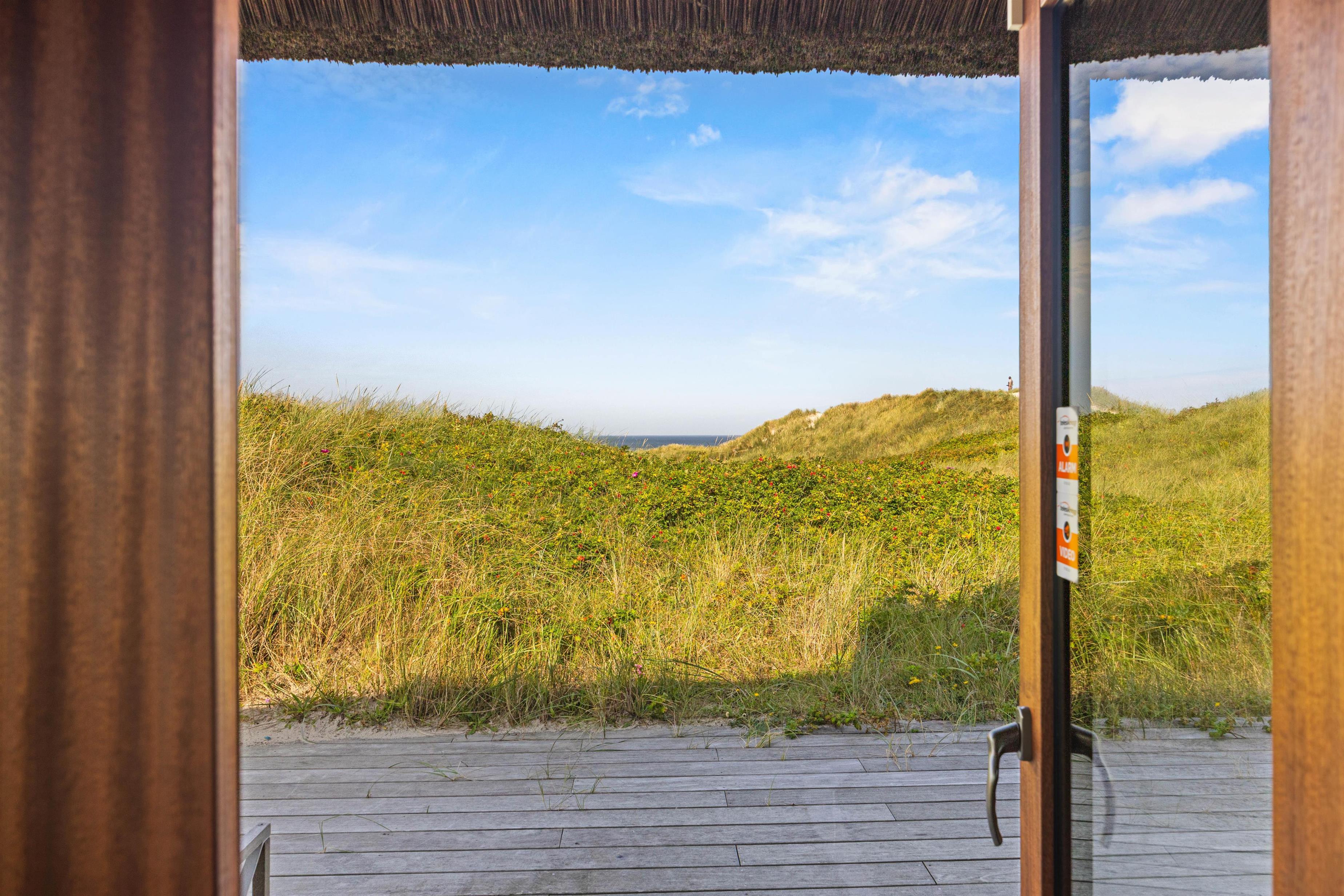En skøn udsigt, der lover masser af sommer, sol og strand: Dette stilfulde feriehus er til dig, der også i ferien lægger værd på smukke omgivelser og luksus, og hvor intet mindre end den perfekte beliggenhed kan gøre det. Det smukke stråtækte feriedomicil ligger på en klittop med udsigt til Vesterhavet og i gåafstand til feriebyen Henne Strand, der emmer af sommerstemning med udendørsliv foran cafeer og butikker.