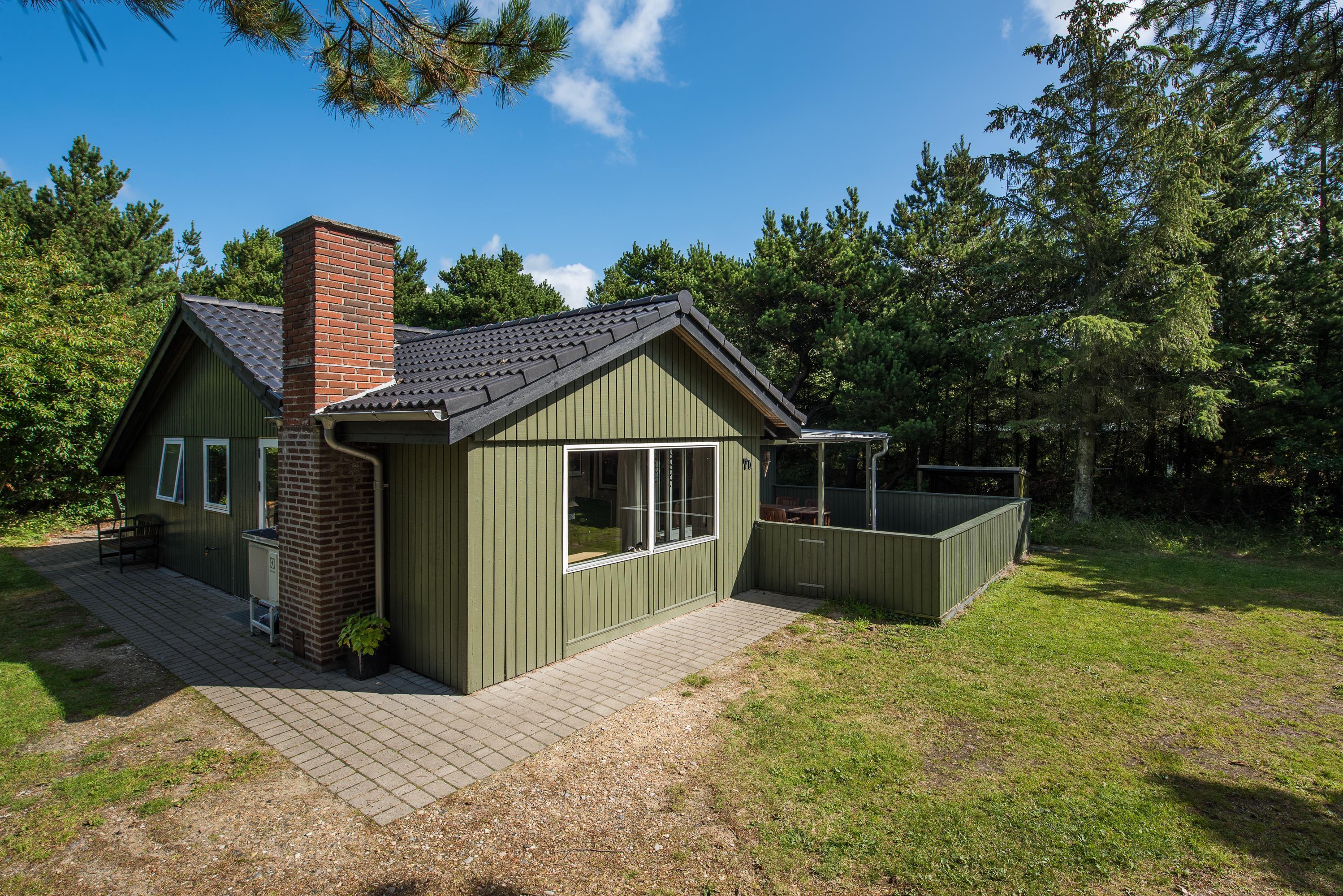 Feriehuset har en fantastisk ugeneret beliggenhed på en stor plænegrund omkranset af høje træer, og på den fine terrasse kan I nyde solen og fuglenes fløjten i god ro og fred fra liggestolene. Her er også tænkt på de mindste feriegæster, og med en sandkasse og et gyngestativ på grunden skal de nok blive holdt godt beskæftiget, mens I slapper af.