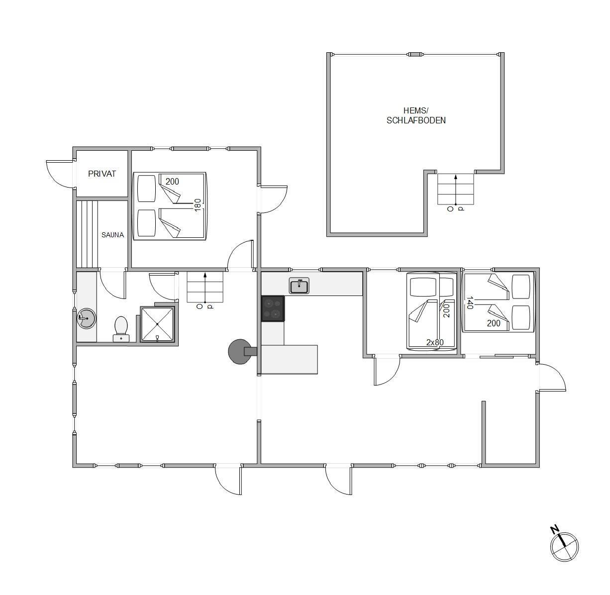 Har I brug for lidt ekstra wellness, gemmer badeværelset på en ekstra overraskelse. Herfra har I nemlig adgang til en dejlig sauna, som med garanti vil blive brugt flittigt i løbet af ferien. I skal ikke bekymre jer om kolde fødder, da der er gulvvarme på badeværelset.