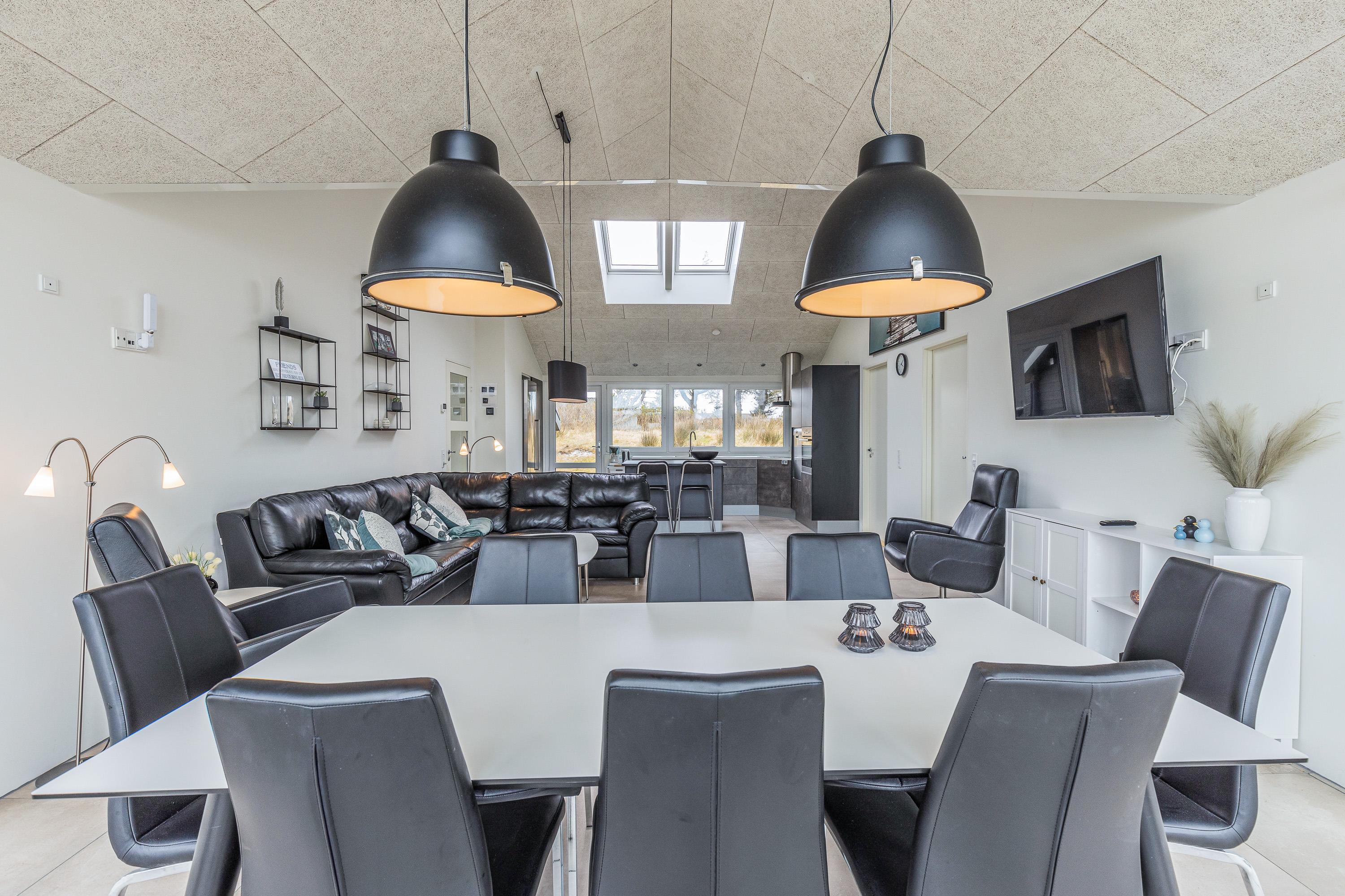 På Rylevej 16 bor I i skønne og bekvemme omgivelser. Sommerhuset er velindrettet med bekvemme møbler, mørke fliser og elementer, som er fint afstemt til de lyse vægge og store vinduespartier, der giver masser af lysindfald.