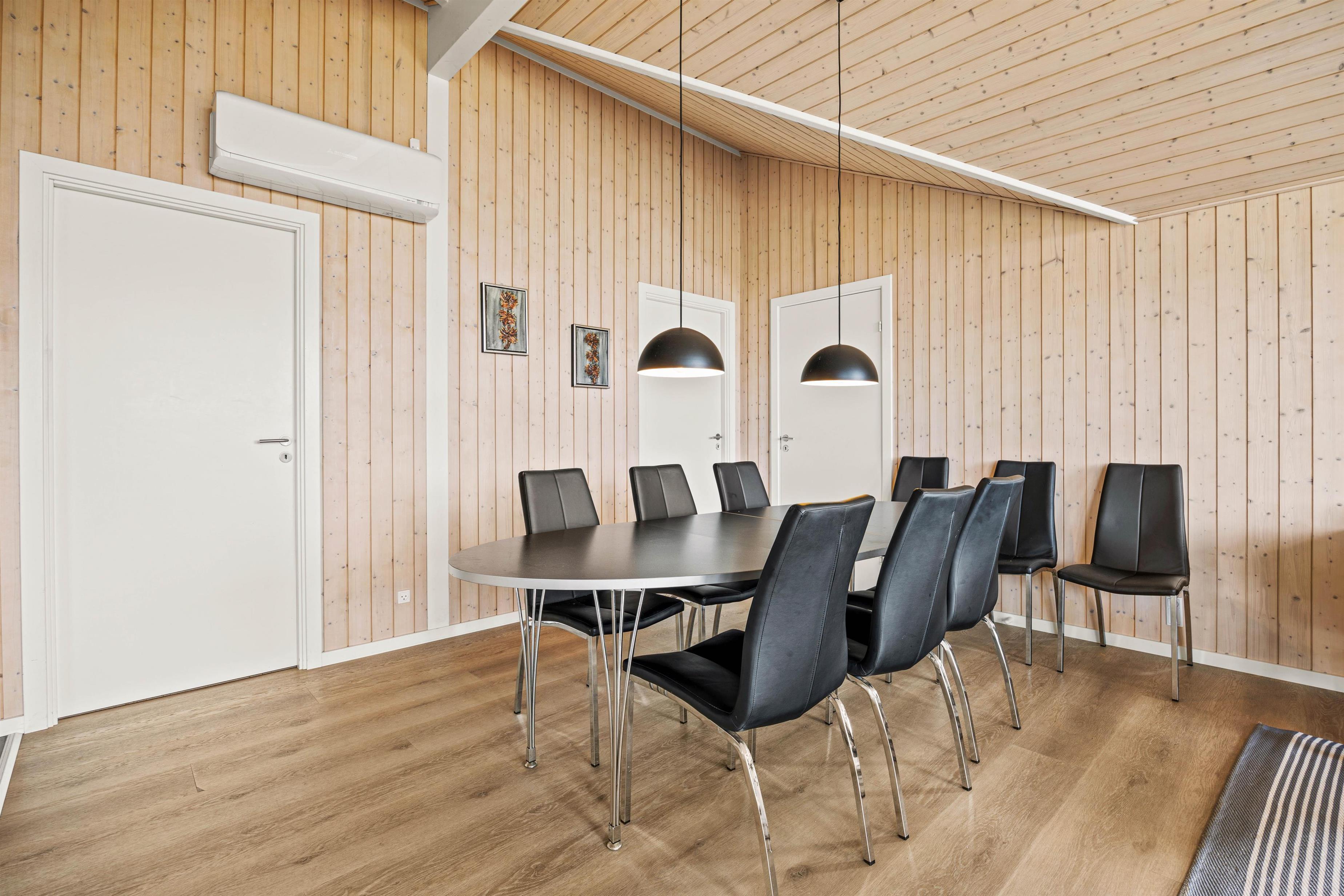 Den åbne planløsning skaber en behagelig atmosfære. Spiseområdet har god plads til alle gæster, og her kan I nyde hyggelige stunder sammen. Køkkenet er godt udstyret, så I kan tilberede lækre måltider i fællesskab, og bagefter kan I nyde fordelene ved den integrerede opvaskemaskine, der klarer det kedelige arbejde for jer.