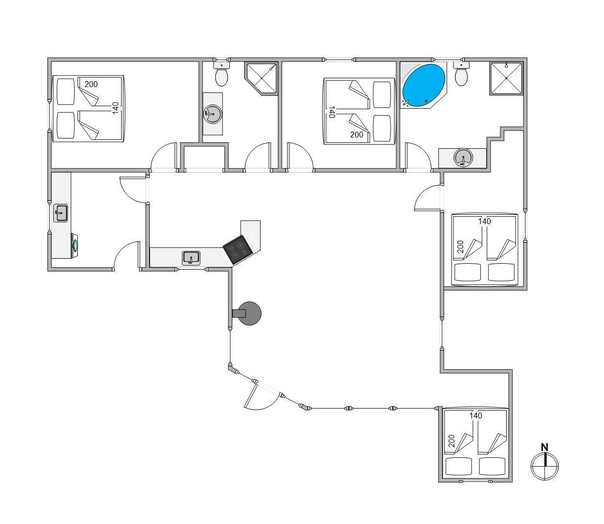 De 3 soveværelser er hver især indrettet med en dobbeltseng på 140 x 200 cm, så alle gæster får en god nattesøvn. Derudover er der en hyggelig alkove med de resterende 2 sovepladser.