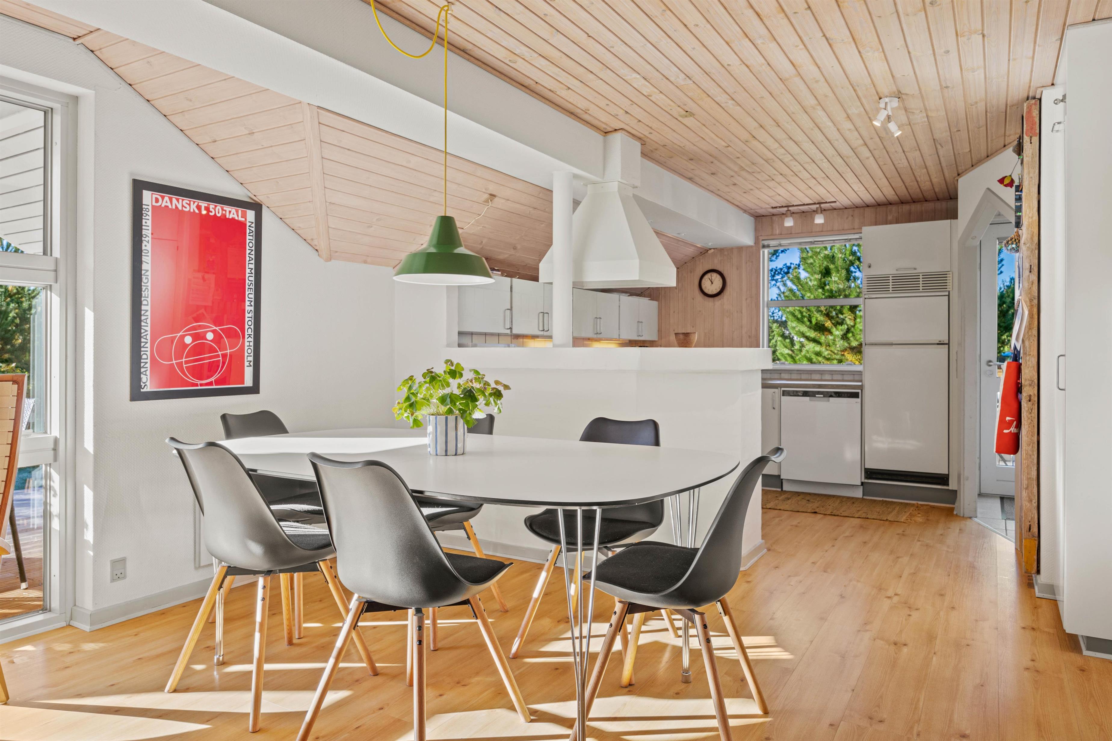 Uanset årstiden, tilbyder dette sommerhus en hyggelig oplevelse for op til 6 personer. Der er en brændeovn, der skaber en varm og indbydende atmosfære på de køligere aftener, samt en skøn spisestue, hvor I nemt kan spille brætspil eller planlægge næste dags aktiviteter. Den indbyggede og energibesparende luft-til-luft varmepumpe sikrer, at temperaturen i sommerhuset er behagelig året rundt.