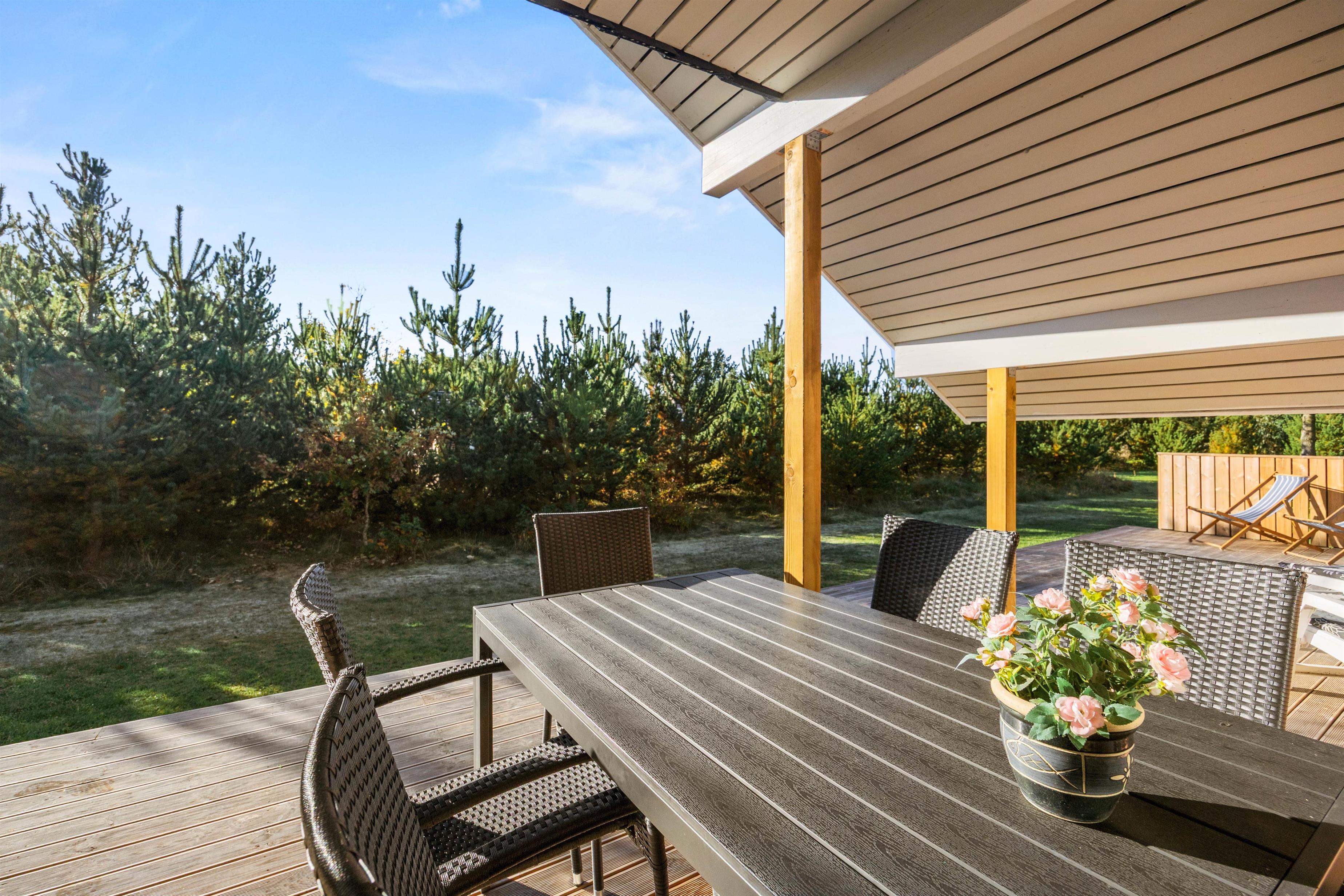 Sommerhuset har en rummelig grund på 1921m2, hvor der er rig mulighed for udendørs aktiviteter. I vælger selv, om aftenerne skal bruges på grill på den overdækkede terrasse eller om børnene skal nyde gyngen og sandkassen. Havemøblerne indbyder til hyggelige stunder udendørs, imens jeres 2 kæledyr også nyder omgivelserne omkring sommerhuset.