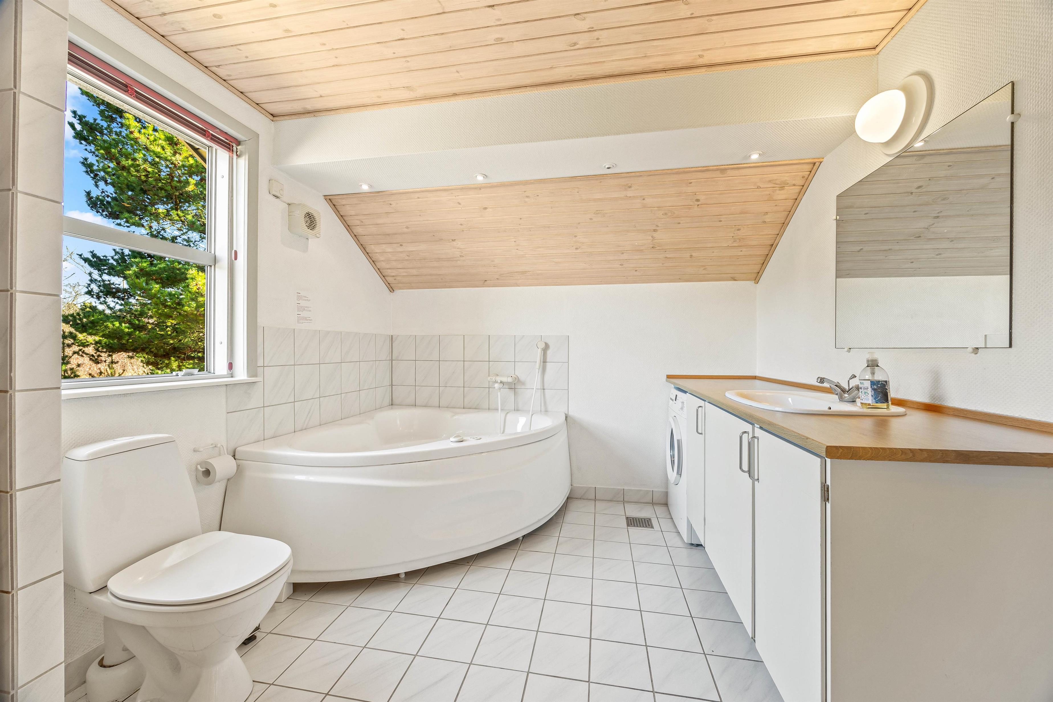 Et af sommerhushusets største højdepunkter er den luksuriøse tømmespa samt saunaen, der indbyder til afslapning og velvære. Mens saunaens varme lader jer slippe af med dagens stress, giver tømmespaen mulighed for at nyde et beroligende bad. Gulvvarmen i badeværelset tilføjer ekstra komfort efter en lang dag ved havet.