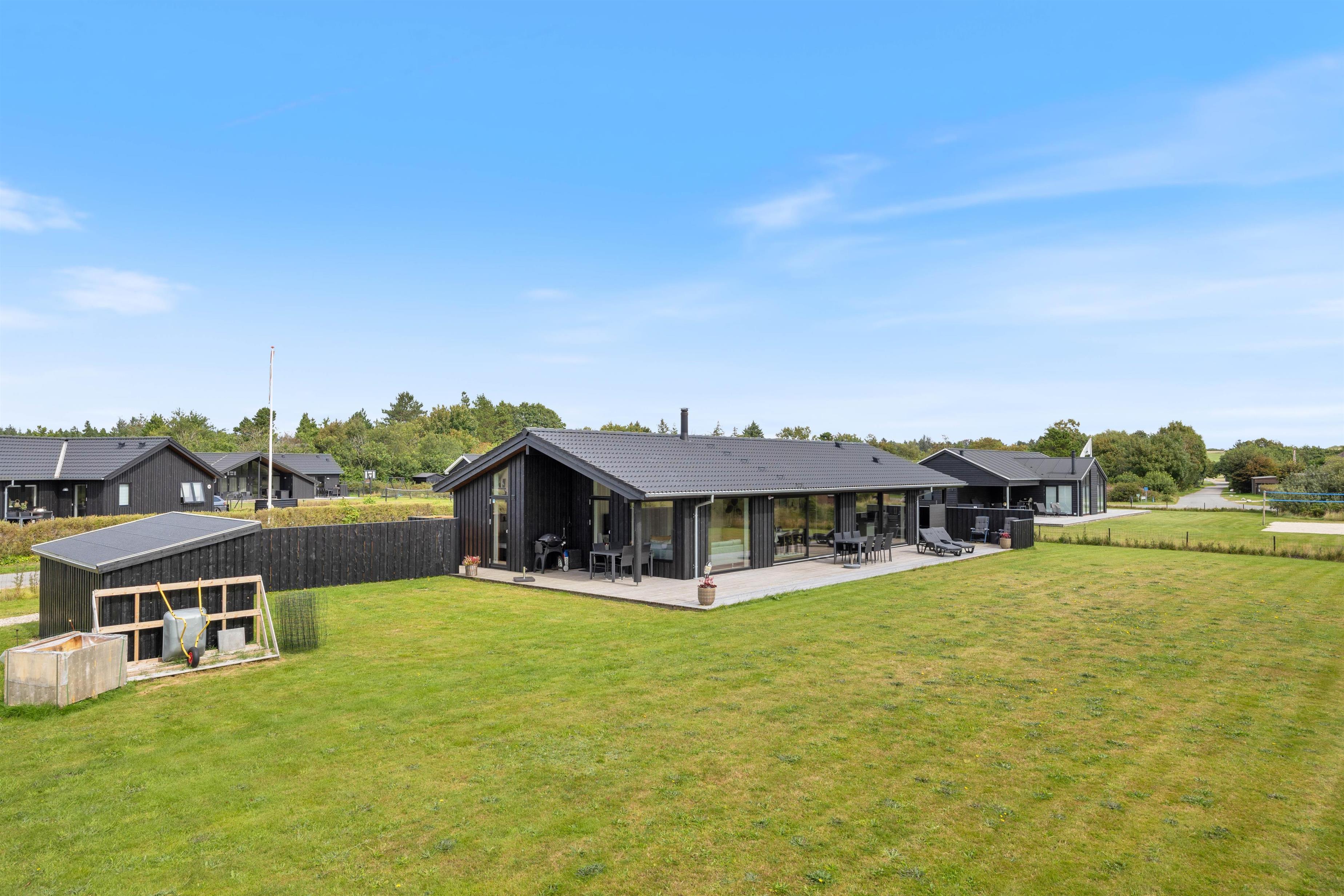 Dette moderne sommerhus ligger på en skøn naturgrund i Henneby, og dermed i et område med masser af natur. Her har I mulighed for at opleve et rigt dyre- og planteliv på nær hånd. I kan bl.a. besøge Blåbjerg Plantage, hvor der er flere veludbyggede vandre- og cykelstier. Skulle I gerne ville svinge golfkøllen, vil det kunne lade sig gøre på den lokale golfbane.