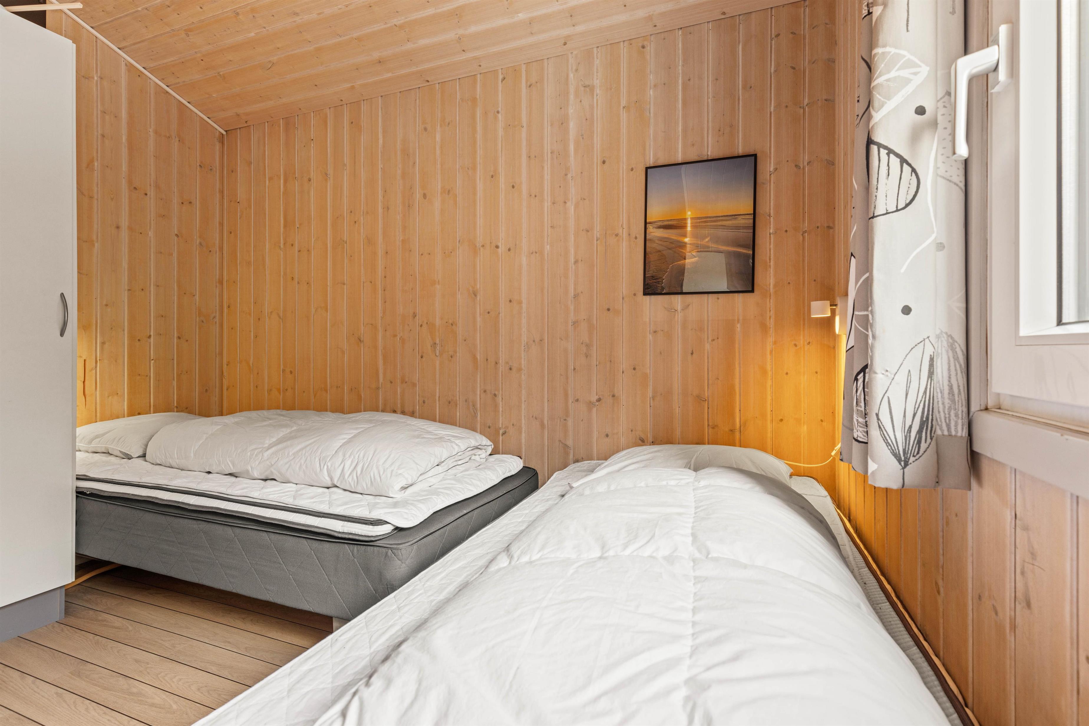 En anden mulighed er at udnytte wellnessområdet ved det store badeværelse til en skøn tur i sauna og spa, den helt optimale mulighed for afslapning, før I skal sove godt ud i de komfortable senge. Her er 3 soveværelser, 2 med dobbeltsenge og 1 værelse med 2 enkeltsenge. Læg mærke til, at den friske vesterhavsluft gør noget godt for nattesøvnen. Både badeværelset og gæstetoilettet har gulvvarme, så I behøver ikke at få kolde fødder under tandbørstningen.