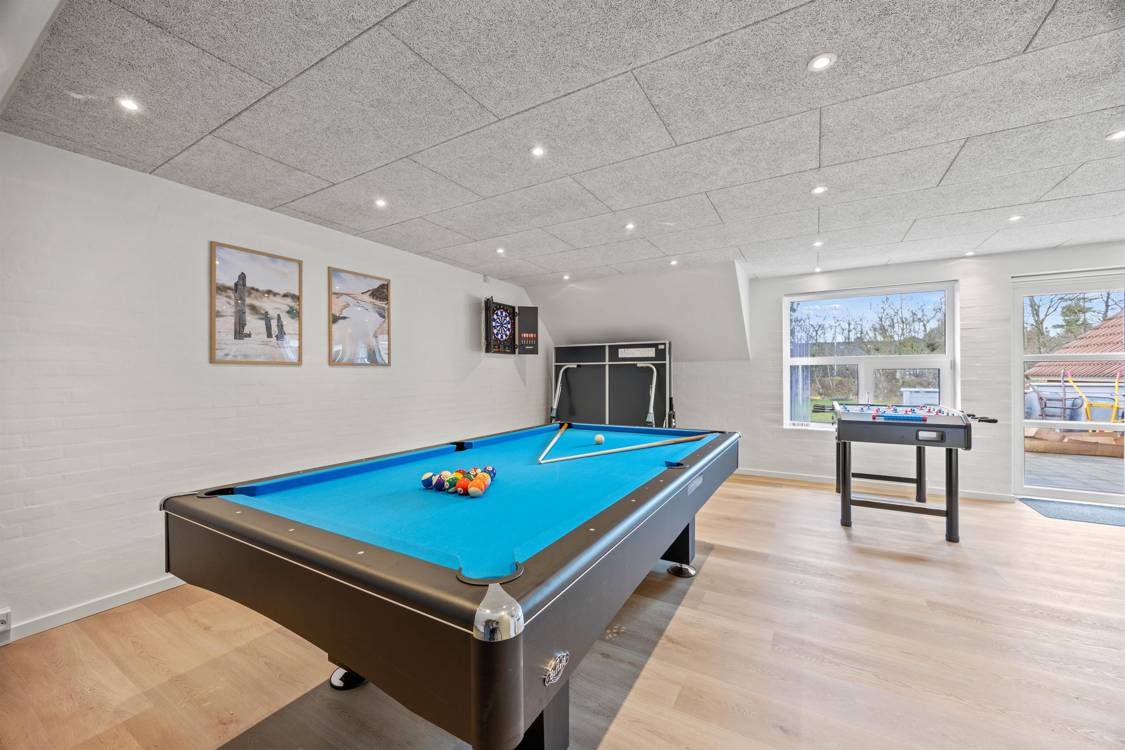 For at fuldende luksusfornemmelsen finder I også et stort aktivitetsrum i dette sommerhus. Dette rum byder på et poolbord, bordtennis, bordfodbold og dart, og er dermed et sandt paradis for især børnene og de barnlige sjæle.