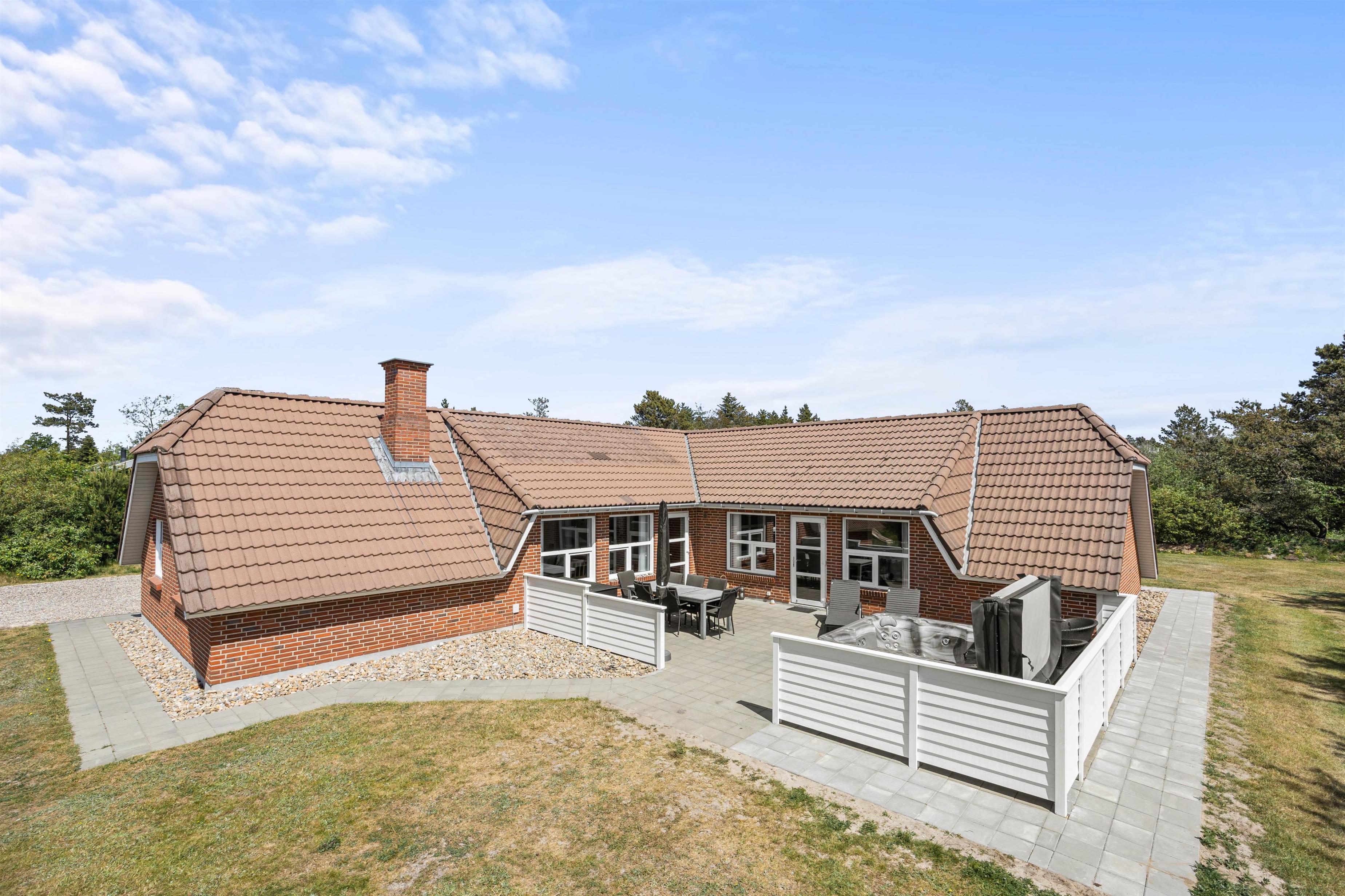 I det flotte skov- og klitområde i Henneby venter jer dette hyggelige sommerhus: Her har I mulighed for at holde en dejlig, afslappende ferie, hvor I kan nyde et veludstyret aktivitetsrum, sauna og udespa.