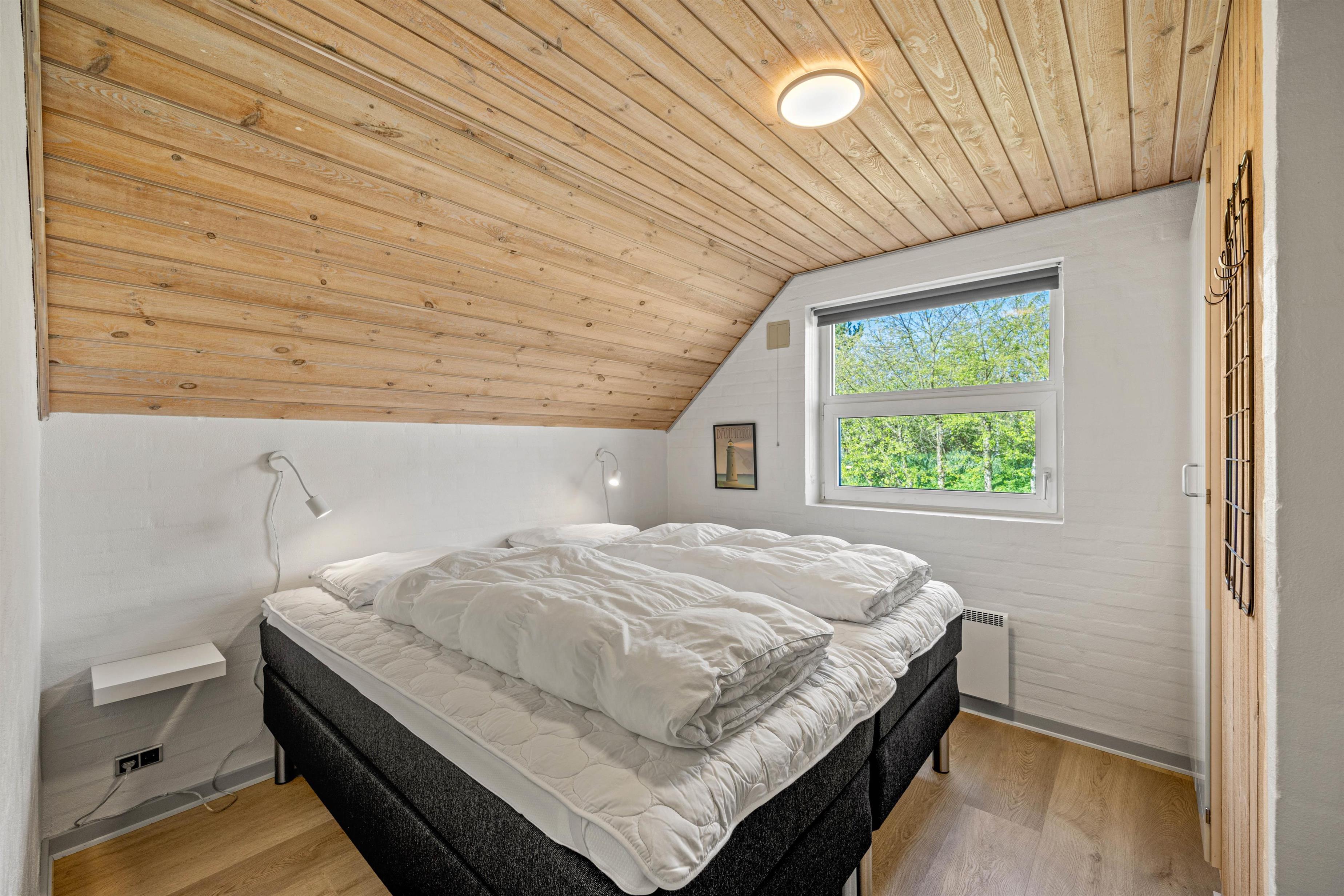 Sommerhusets gode soveværelser er fordelt over 4 værelser med 2 enkeltsenge i hver. Hver af rummene har trælaminat på gulvene.