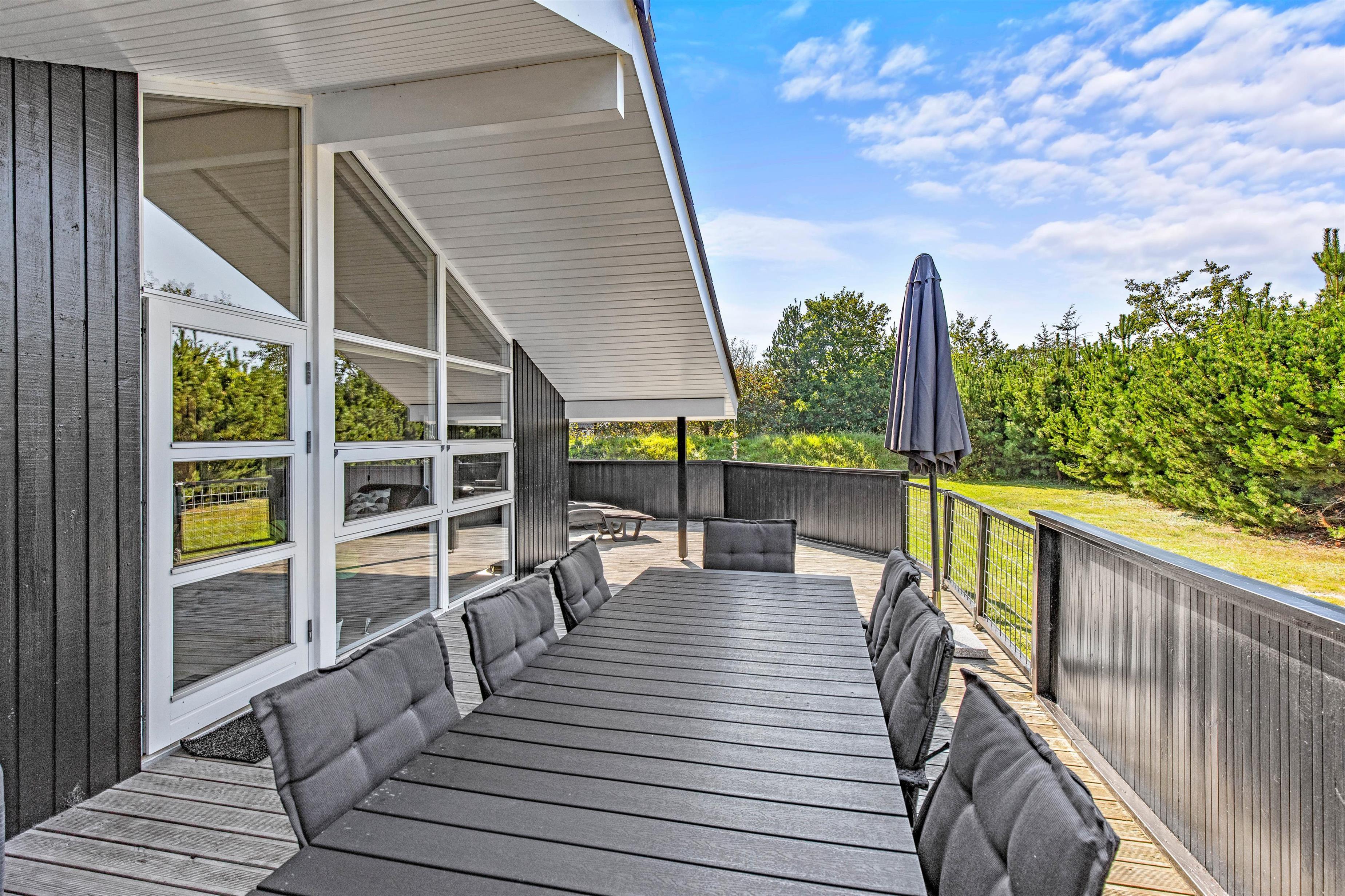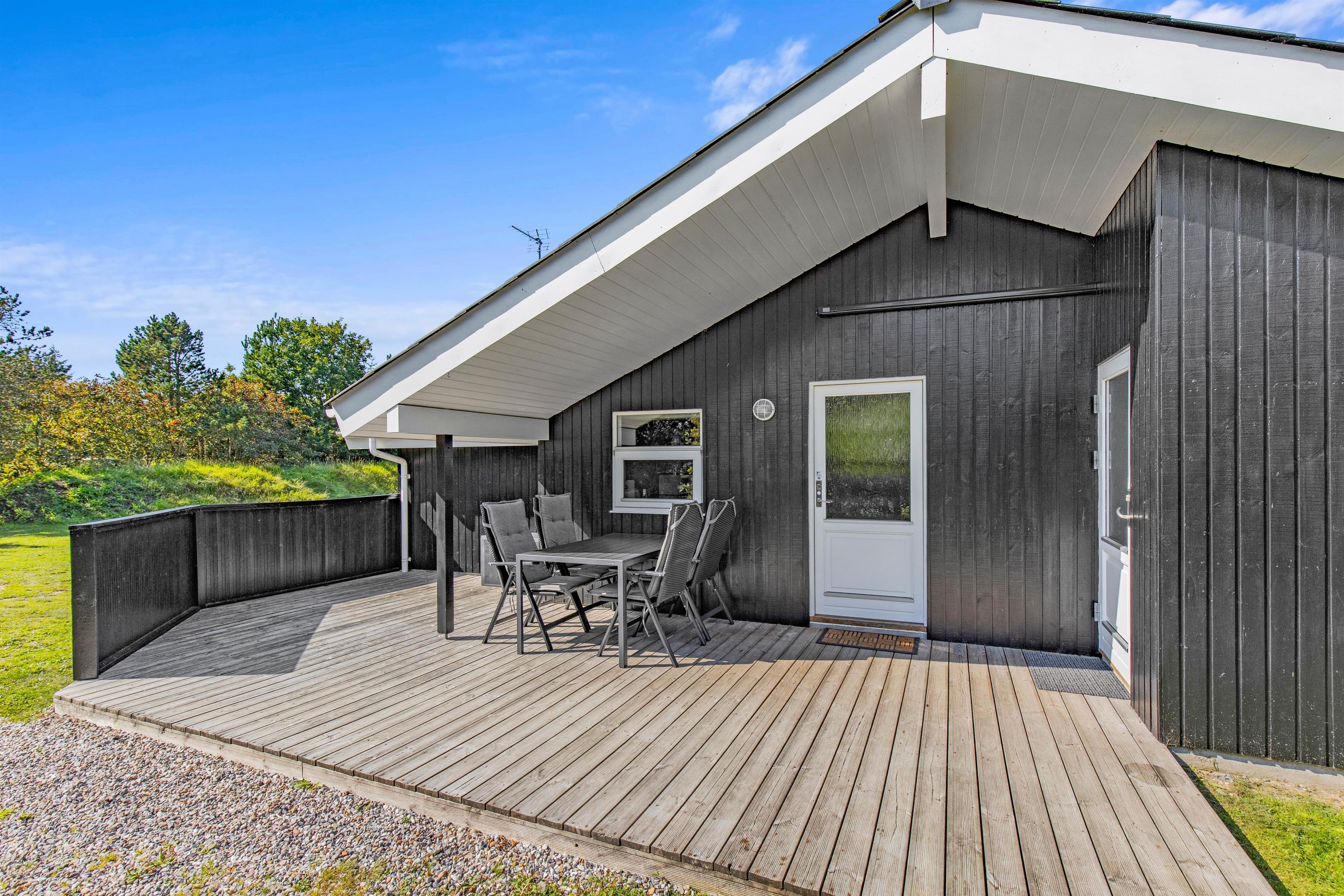 Dette fine feriehus i Henne er veludstyret og har 4 soveværelser, 1 badeværelse med spa og sauna og 1 gæstetoilet. Feriehuset blev renoveret i efteråret/vinteren 2021/2022, så I kan være sikker på, at alle detaljerne er på sin plads. Med plads til op til 7 personer og jeres hund kan I nyde jeres ferie her og ligge på solvognen på den lukkede terrasse helt uden at bekymre jer om, at hunden løber væk. Henne Strands bymidte med butikker, cafeer og restauranter ligger kun ca. 2 kilometer fra feriehuset, og med cykelstien, der starter lige uden for feriehuset, kan I nemt tage cyklen til Henne Strand. Vil I have ungerne med til vandet, er der kun ca. 10 kilometer til den familie- og børnevenlige strand ved Børsmose, hvor I kan køre bilen helt ned på stranden.