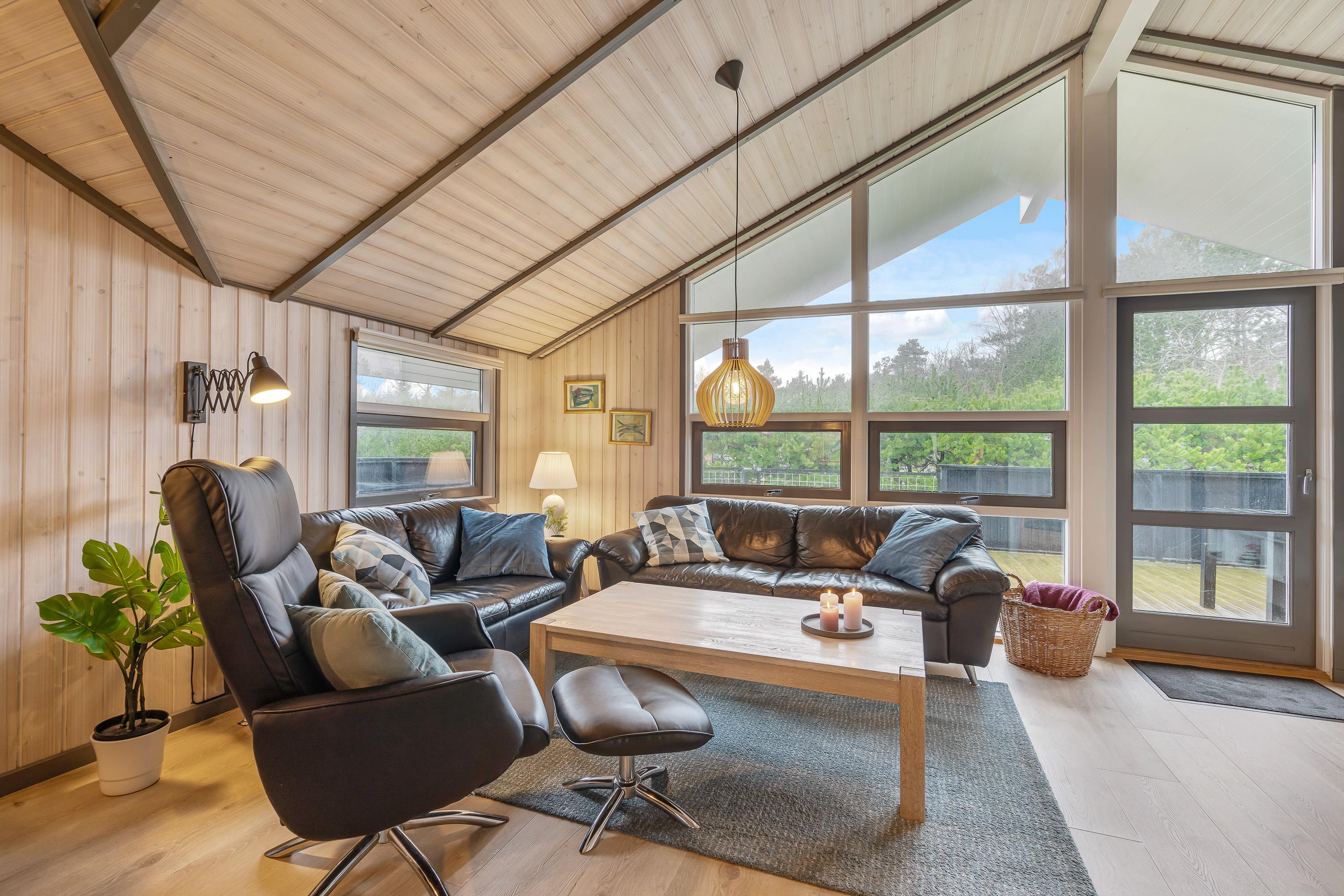 Hyg jer ved brændeovnsilden i opholdsstuens store sofahjørne med en bog eller en god film – eller få jeres bedste feriefotos uploadet til Facebook – I har gratis internetforbindelse i feriehuset.
