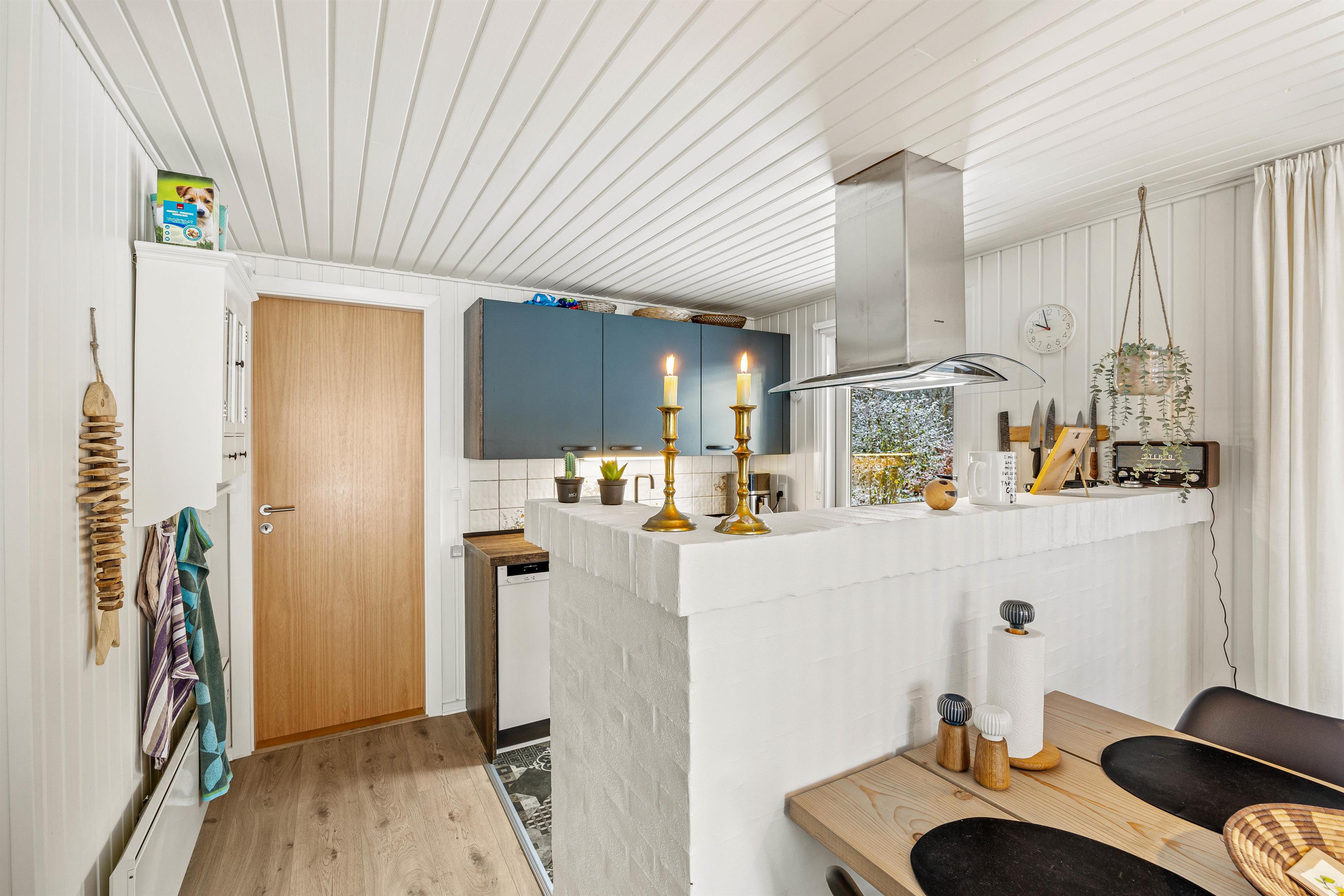 Så snart I træder ind ad døren, bliver I mødt af ægte sommerhusstemning: ikke blot den lyse indretning, men også de skønne udkig til naturen omkring sommerhuset gør, at I straks føler jer på ferie.