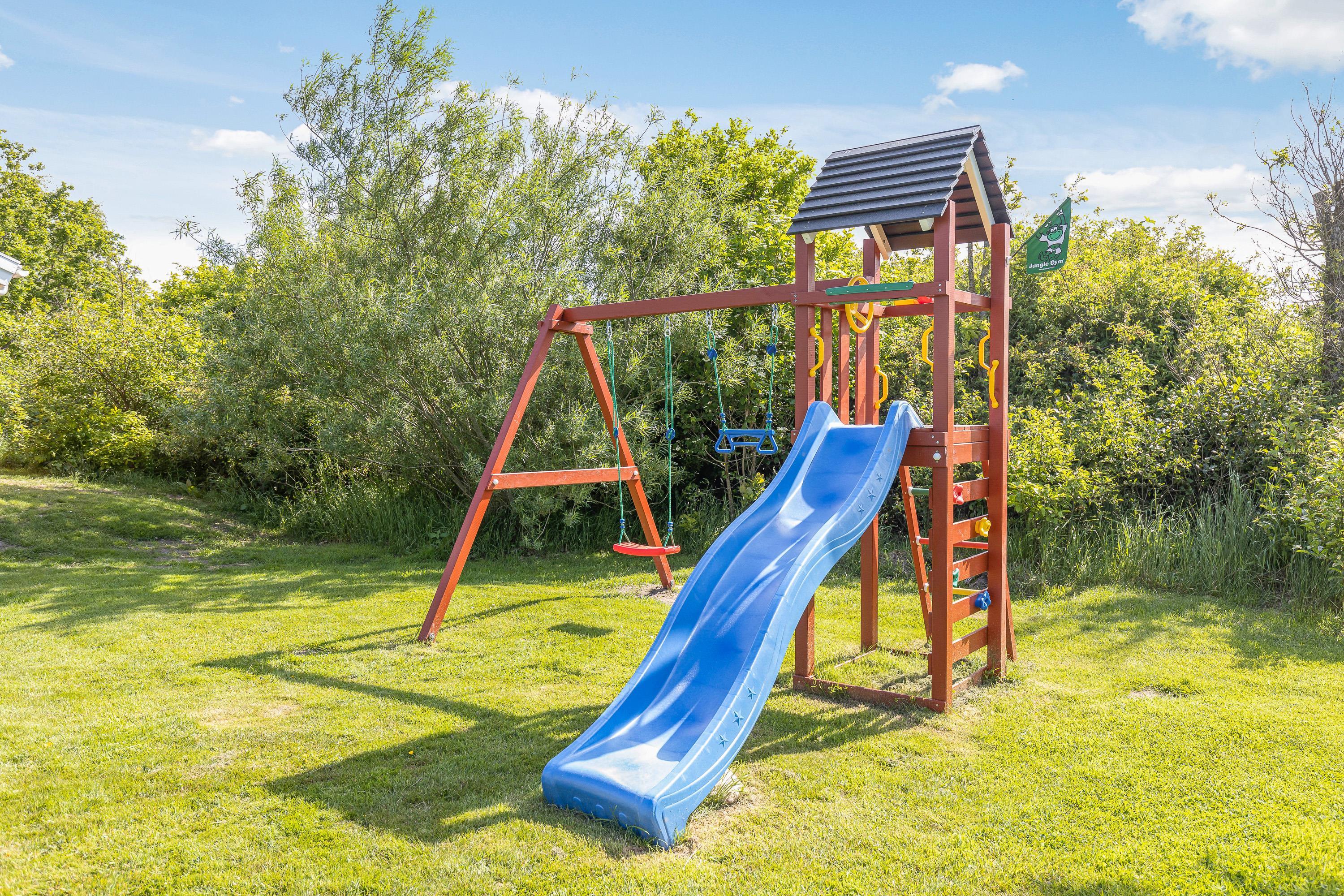 Der er både havemøbler og liggestole, så I kan dase i solen på de varme sommerdage og grillen står klar, så I kan tilberede et lækkert måltid til aften. Til glæde for de yngste feriegæster er der desuden et gyngestativ på grunden, så de er godt underholdt, mens I slapper af med en god bog og lidt koldt at drikke.