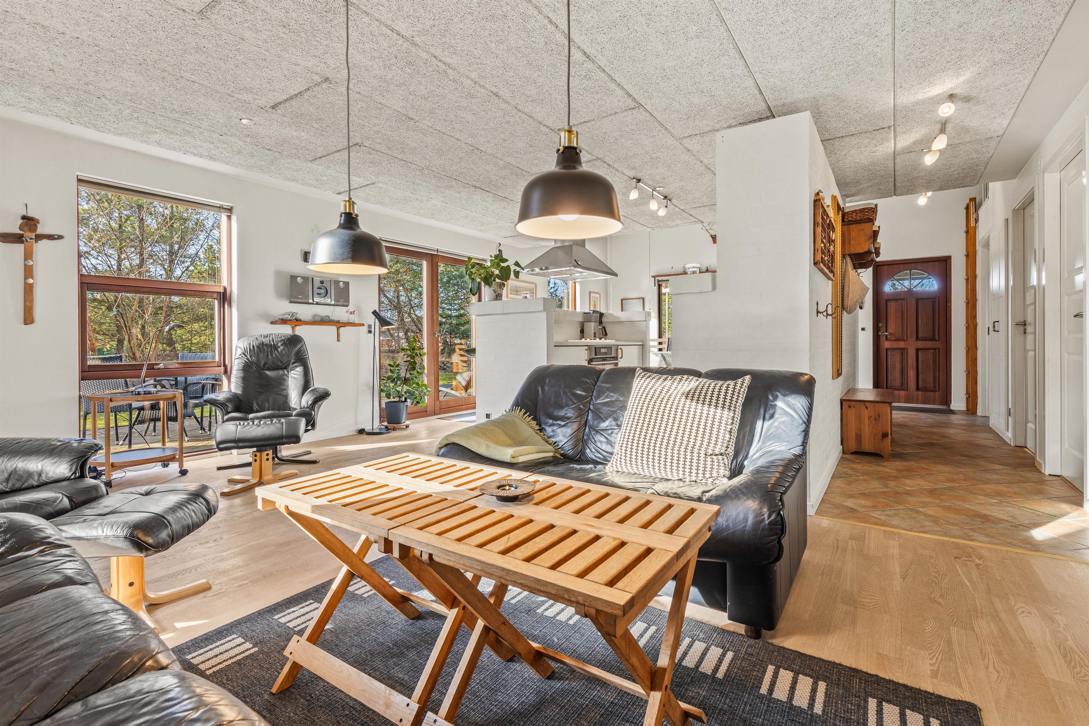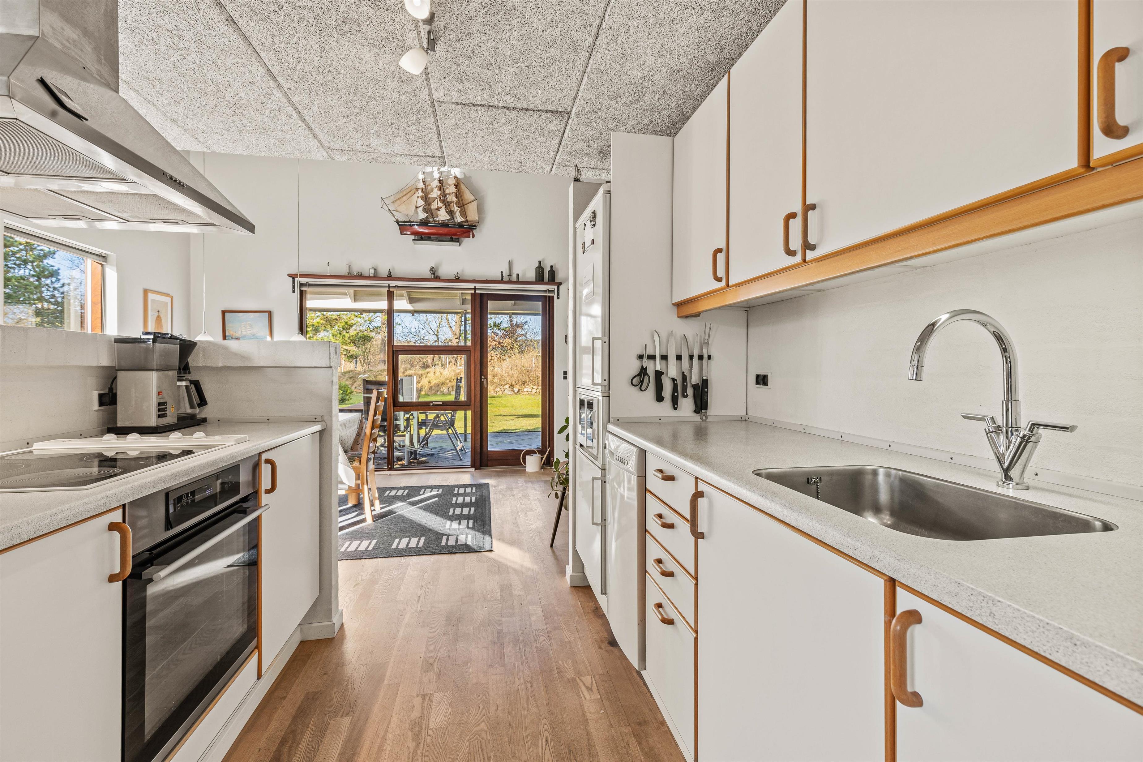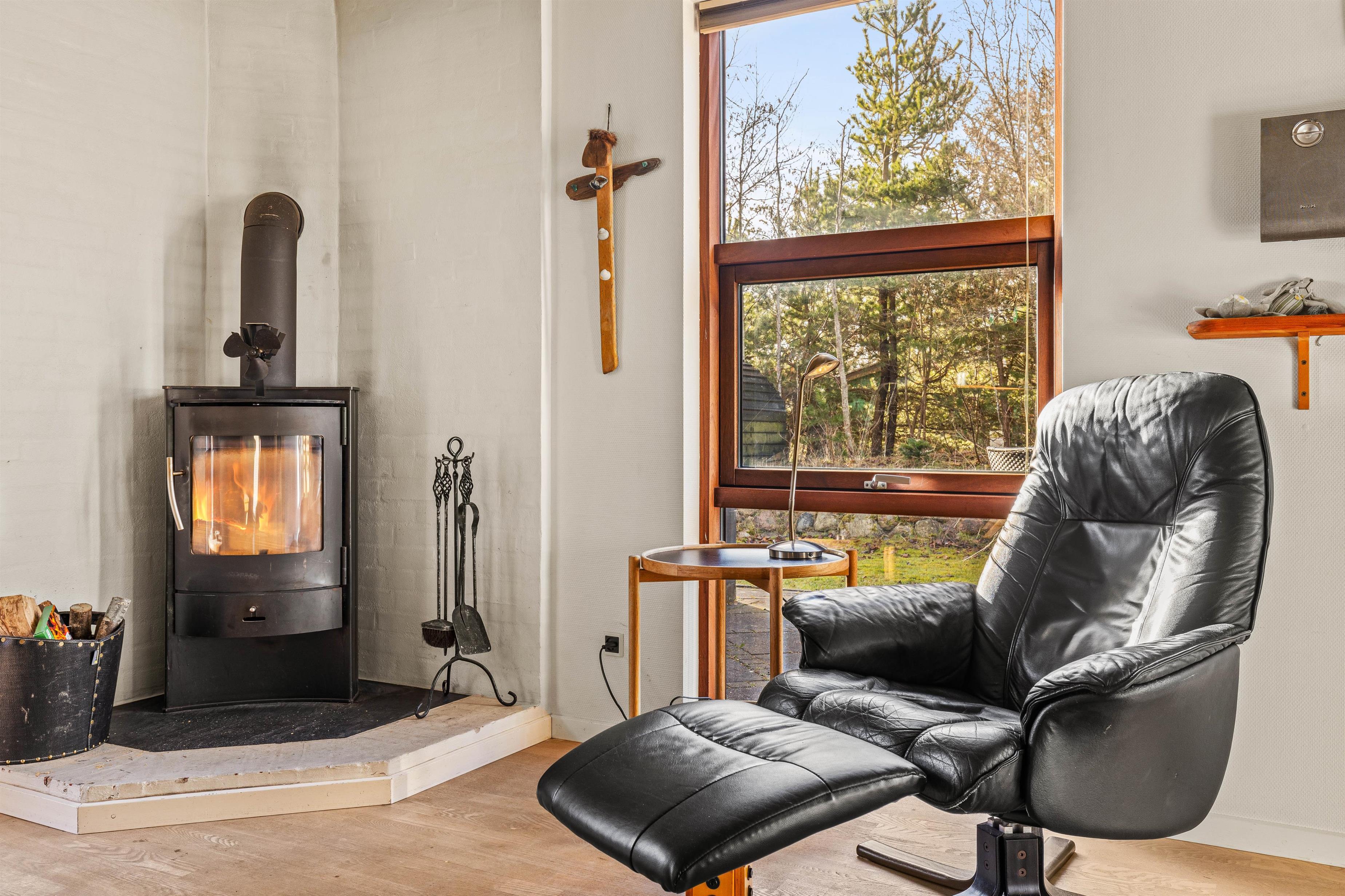 Et indbydende åbent køkken/stue-miljø lægger op til, at I som familie kan være tæt på hinanden, imens de voksne laver mad og hyggesnakker, nyder børnene måske at "gemme" sig på hemsen. Når der rigtigt skal hygges, kan I tænde op i stuens brændeovn og nyde varmen og lyden af den knitrende ild, som virker beroligende og spreder hygge i rummet. For ekstra afslapning og wellness for hele familen bidrager husets sauna og badekar med dyser og på varme dage, når I har tilbragt dage på stranden eller ved huset på liggestolene, så kan I nyde en afkøling under sommerhusets udendørs bruser*.