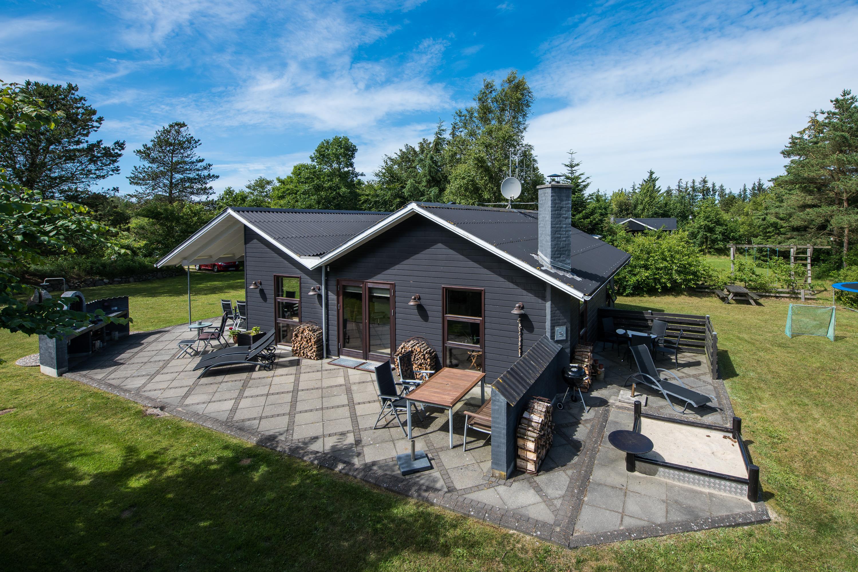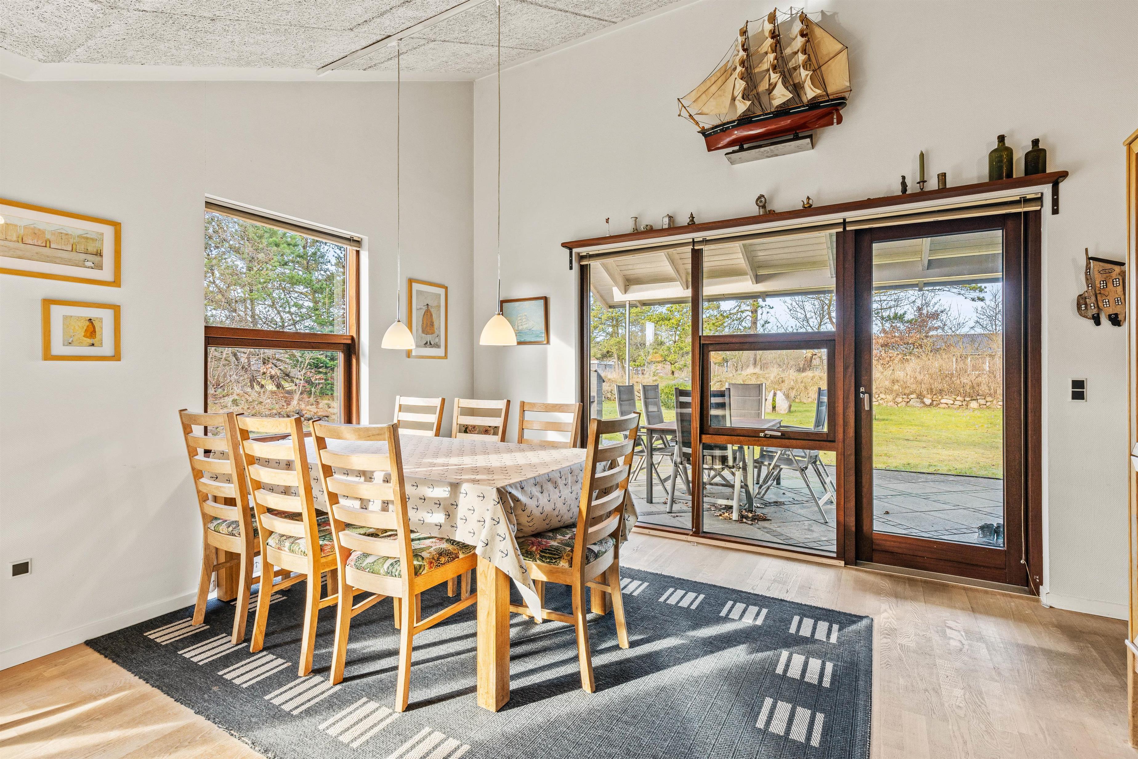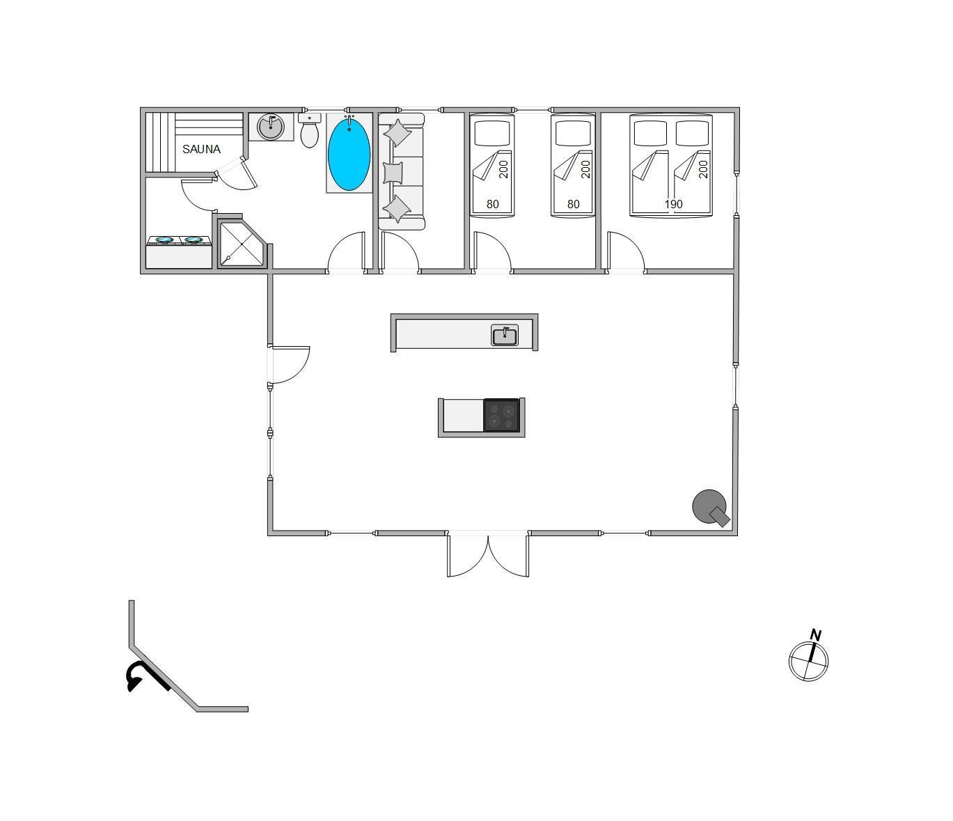 Et indbydende åbent køkken/stue-miljø lægger op til, at I som familie kan være tæt på hinanden, imens de voksne laver mad og hyggesnakker, nyder børnene måske at "gemme" sig på hemsen. Når der rigtigt skal hygges, kan I tænde op i stuens brændeovn og nyde varmen og lyden af den knitrende ild, som virker beroligende og spreder hygge i rummet. For ekstra afslapning og wellness for hele familen bidrager husets sauna og badekar med dyser og på varme dage, når I har tilbragt dage på stranden eller ved huset på liggestolene, så kan I nyde en afkøling under sommerhusets udendørs bruser*.