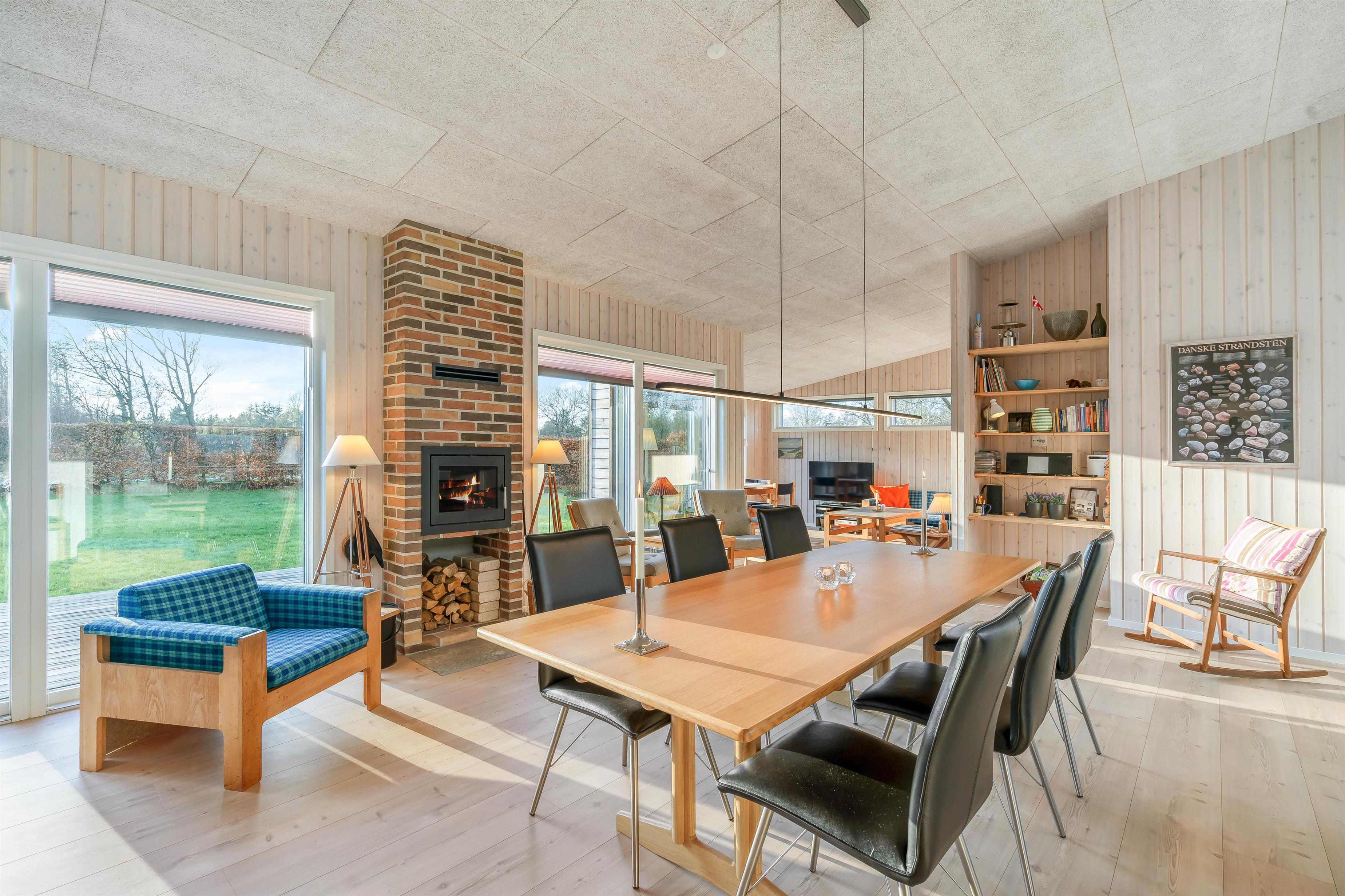Feriehusets brændeovn befinder sig i stuen, og skaber den helt rigtige feriehusstemning. Den energibesparende luft-til-vand-varmepumpe samt gulvvarmen i alle rum, sørger begge for at holde feriehusets temperatur på et passende niveau. Der bliver heller ej fodkoldt, når I bruger badeværelserne: de 2 rummelige og flotte badeværelser er begge udstyret med gulvvarme. Ydermere er der både vaskemaskine og tørretumbler i det ene badeværelse, som kan være jer behjælpelige med jeres vasketøj under hele opholdet.