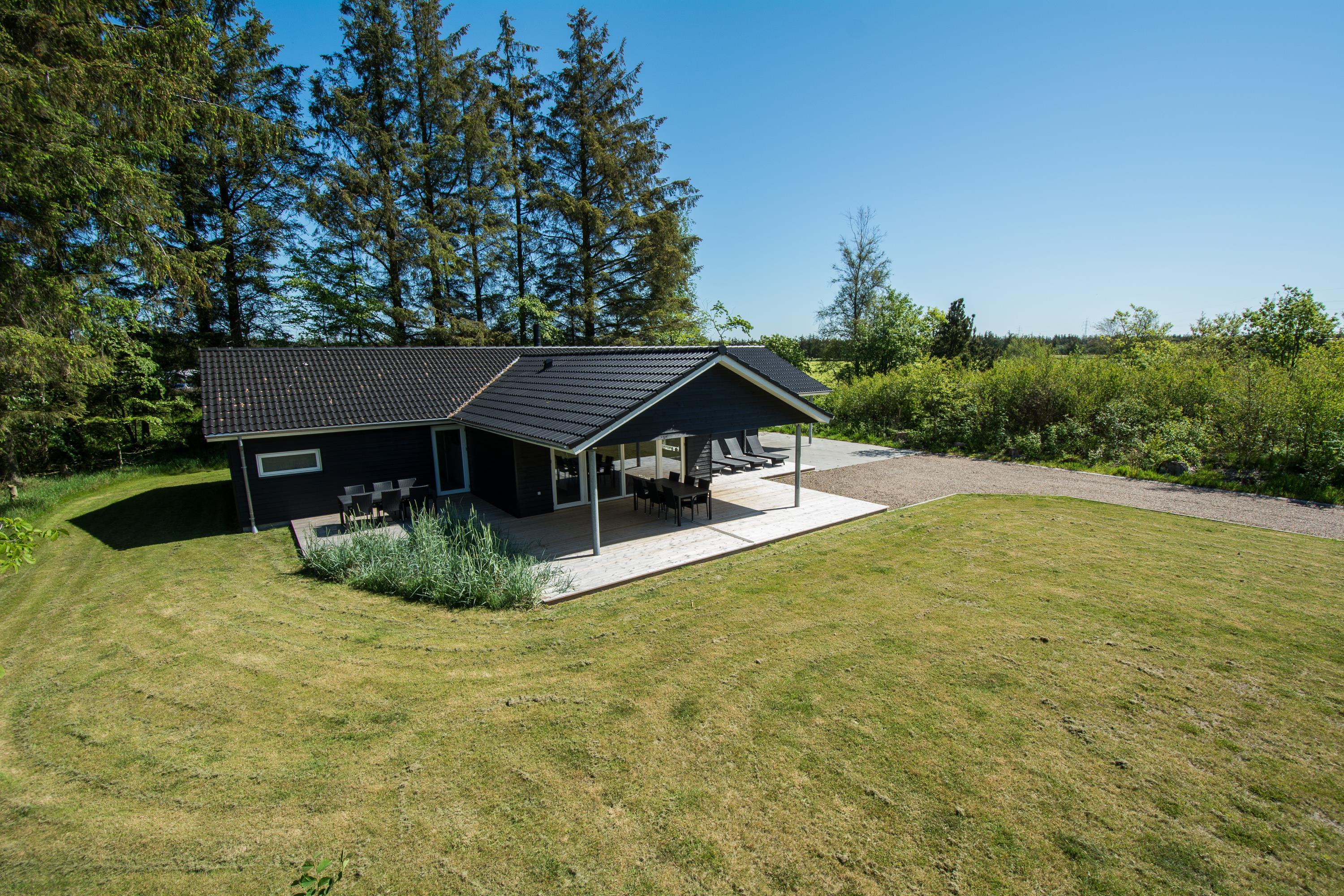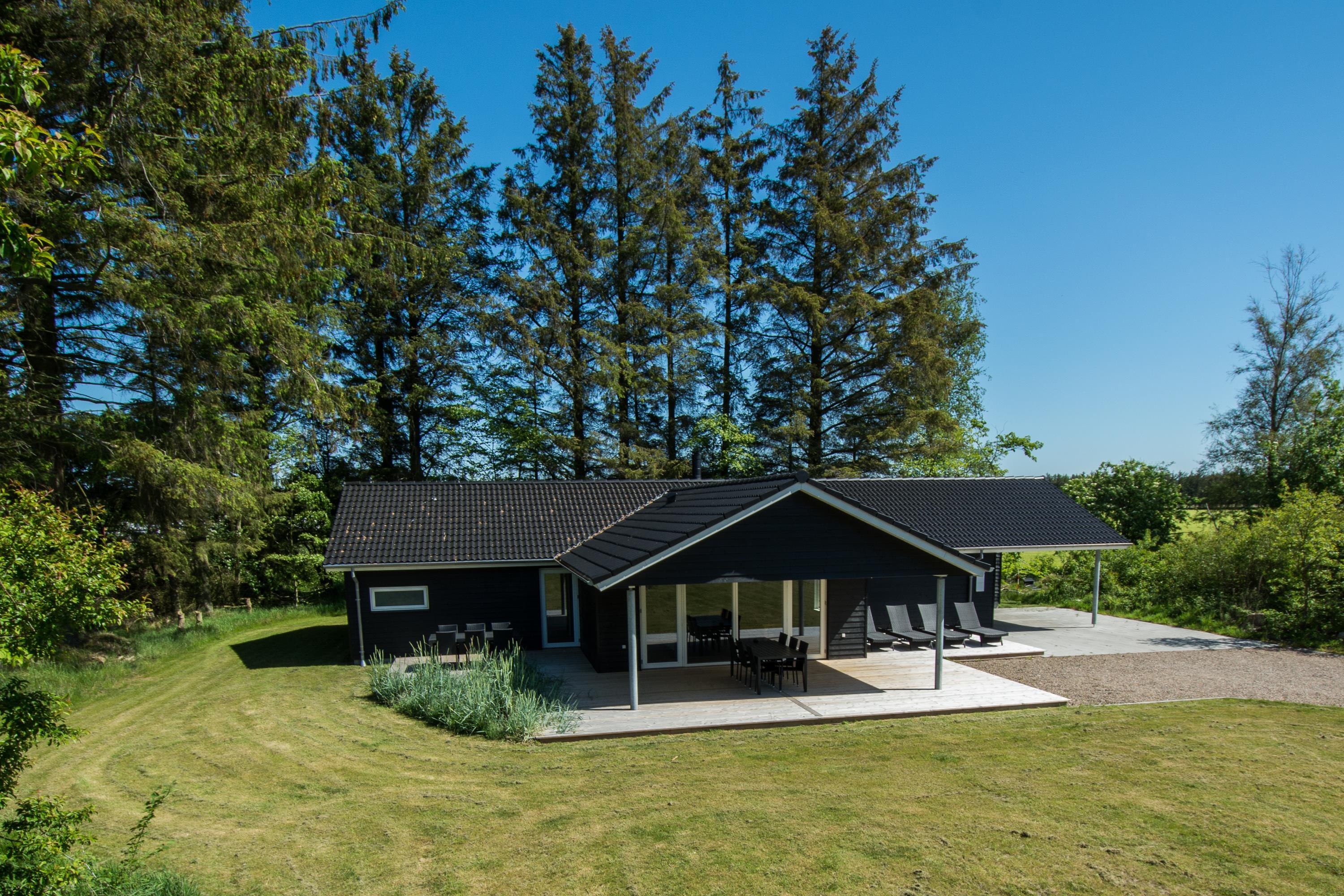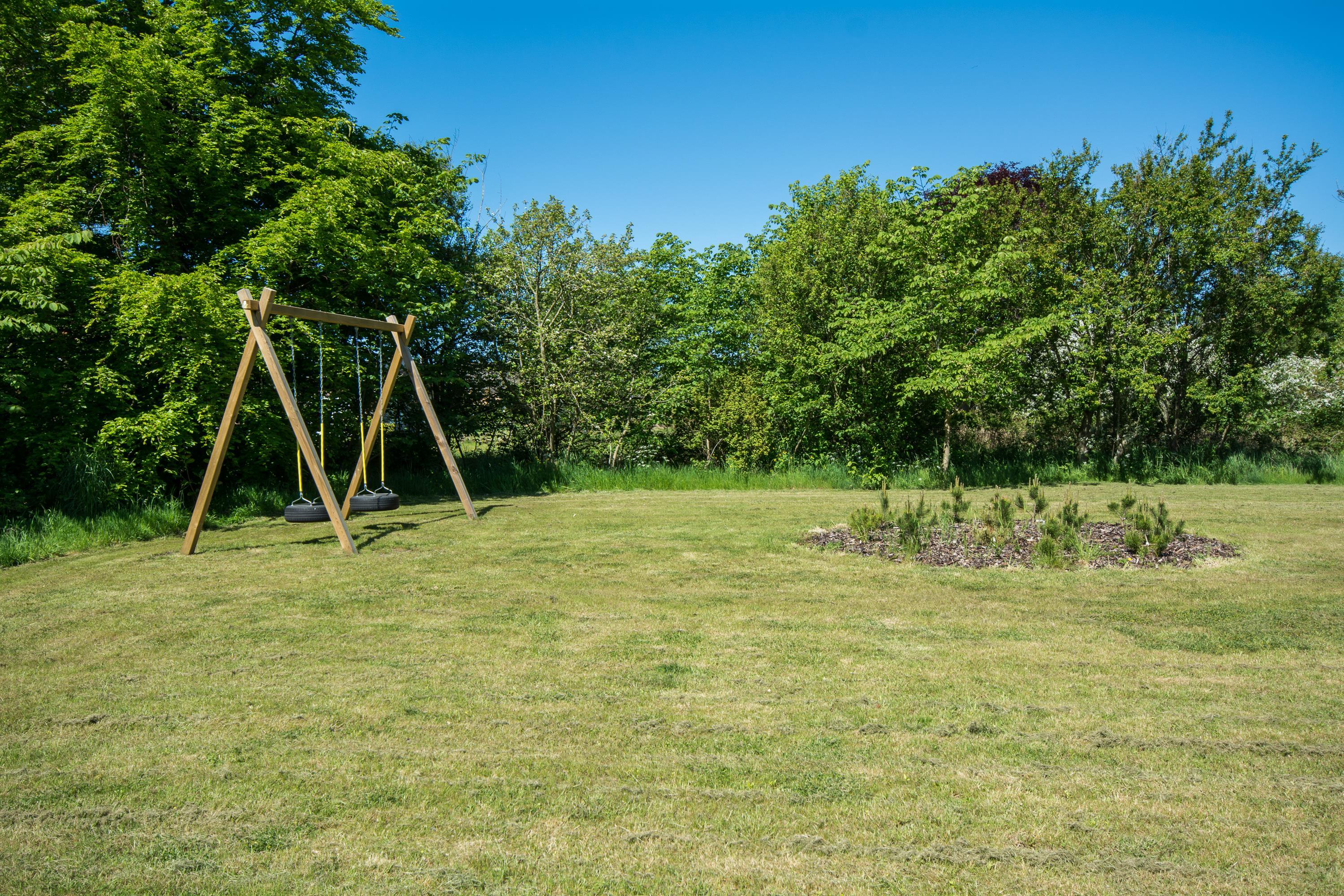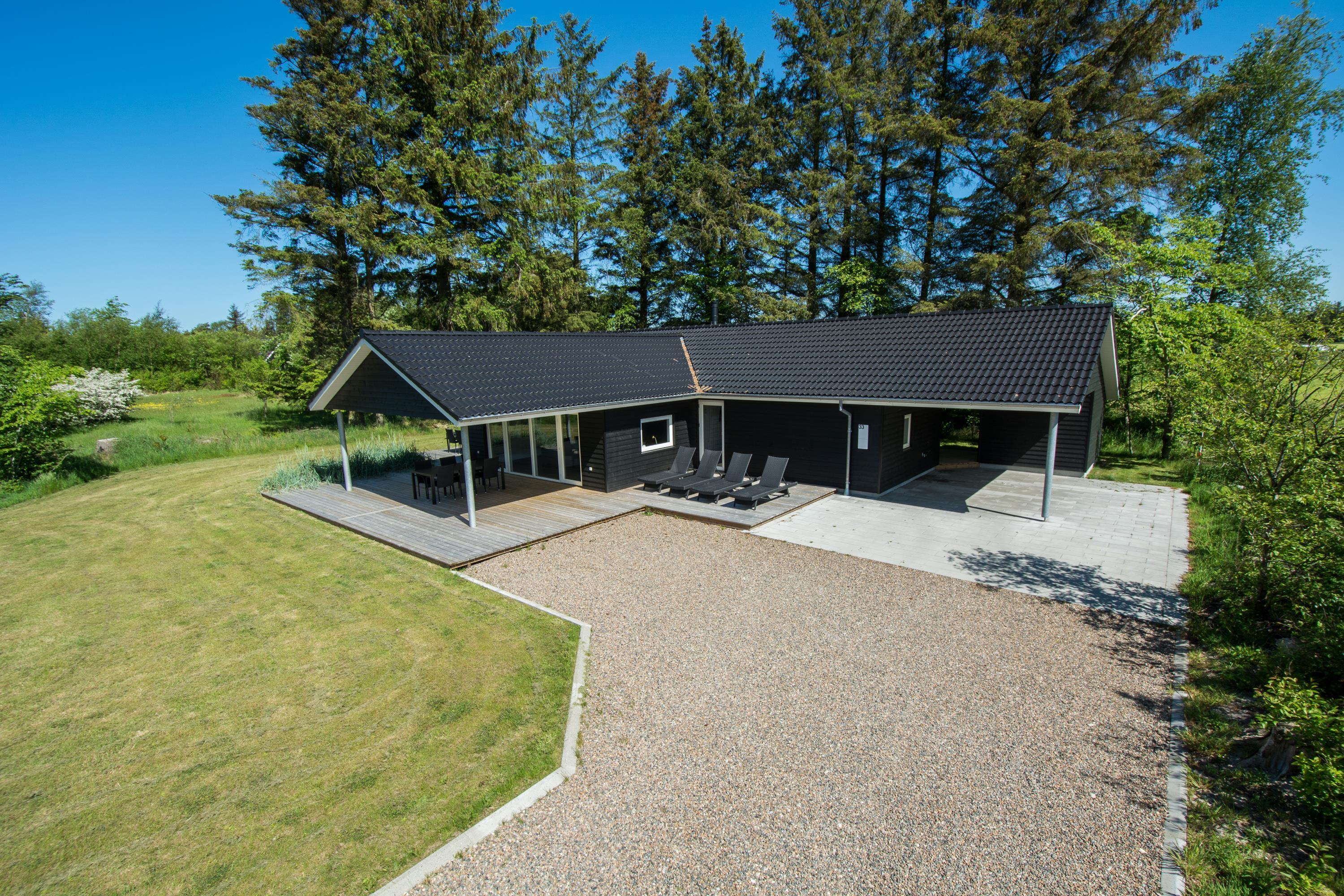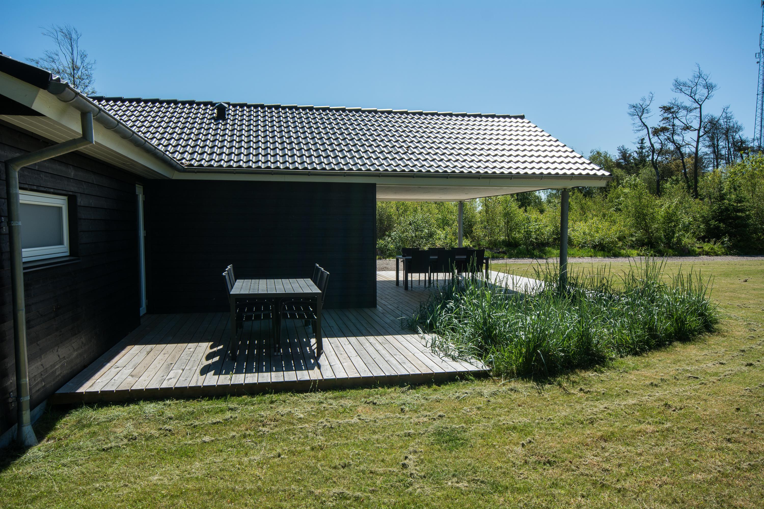 Den overdækkede terrasse er skøn i næsten alt slags vejr, og er udstyret med gode havemøbler og naturligvis med gasgrill hvor du kan lave en lækker middag til dine kære. Plænegrunden, der omgiver huset, indbyder til leg og boldspil og til de mindste er der også opsat gynge. På en regnvejrsdag kan du parkere bilen i husets carport og komme tørskoet ind med bagage eller indkøb.