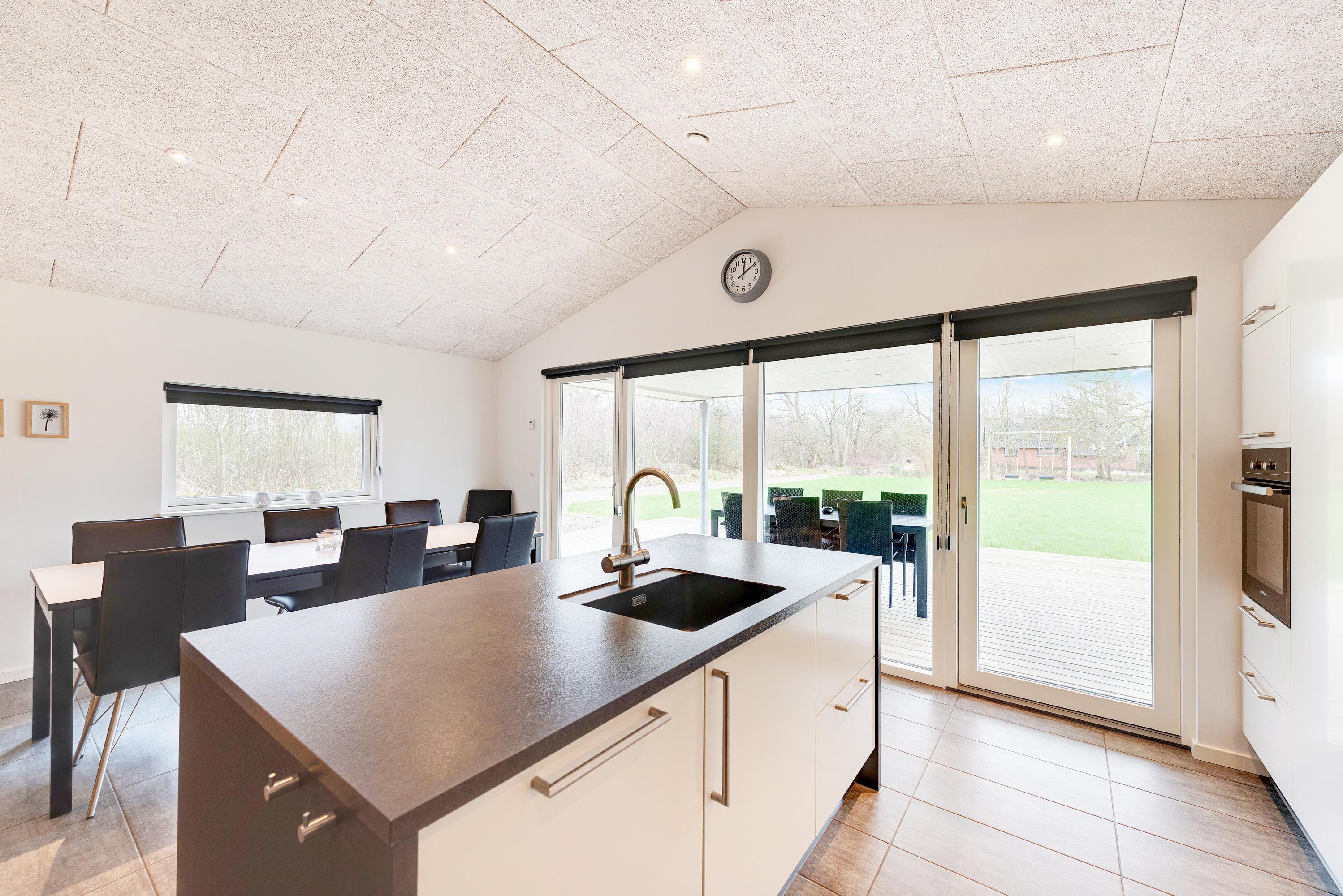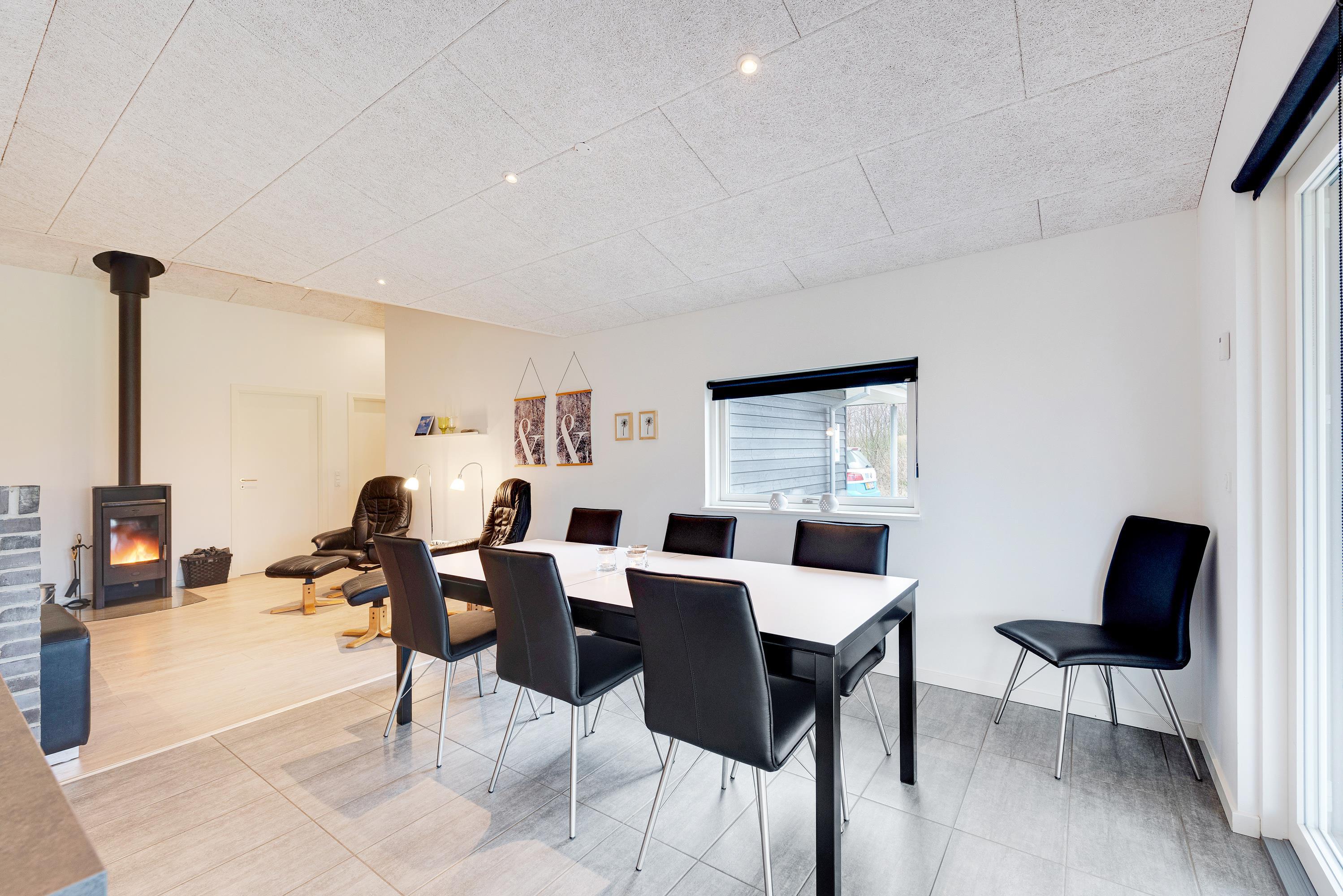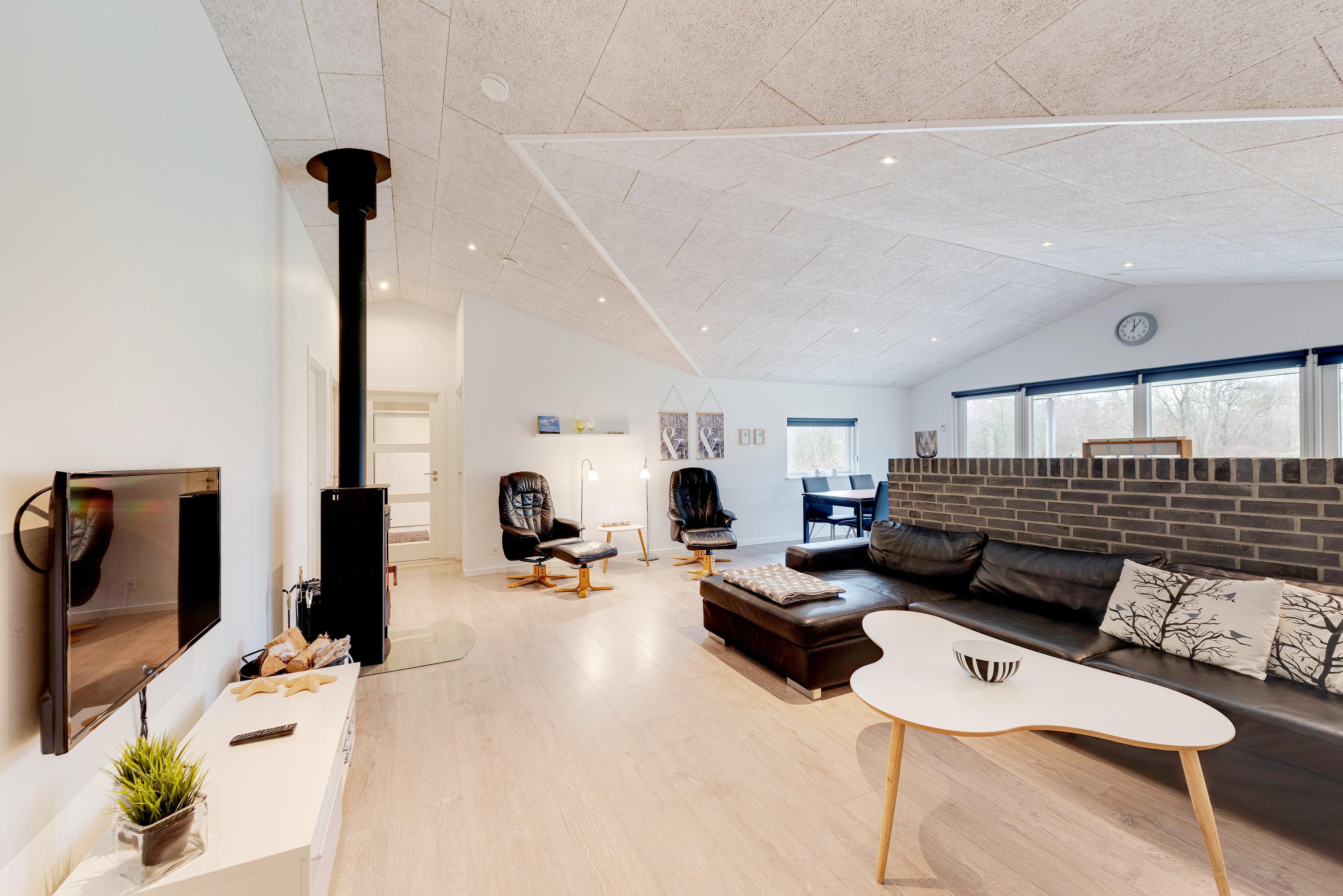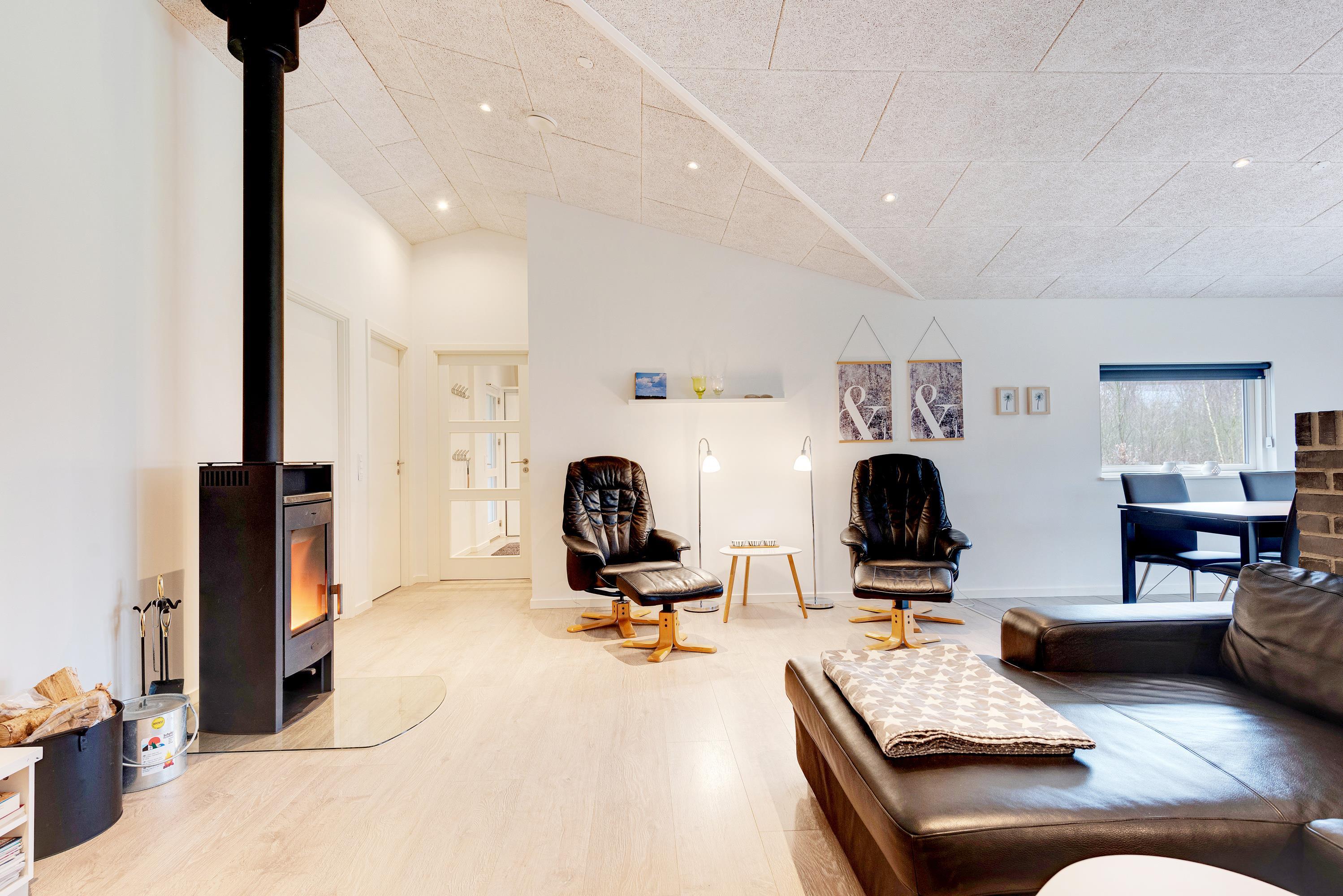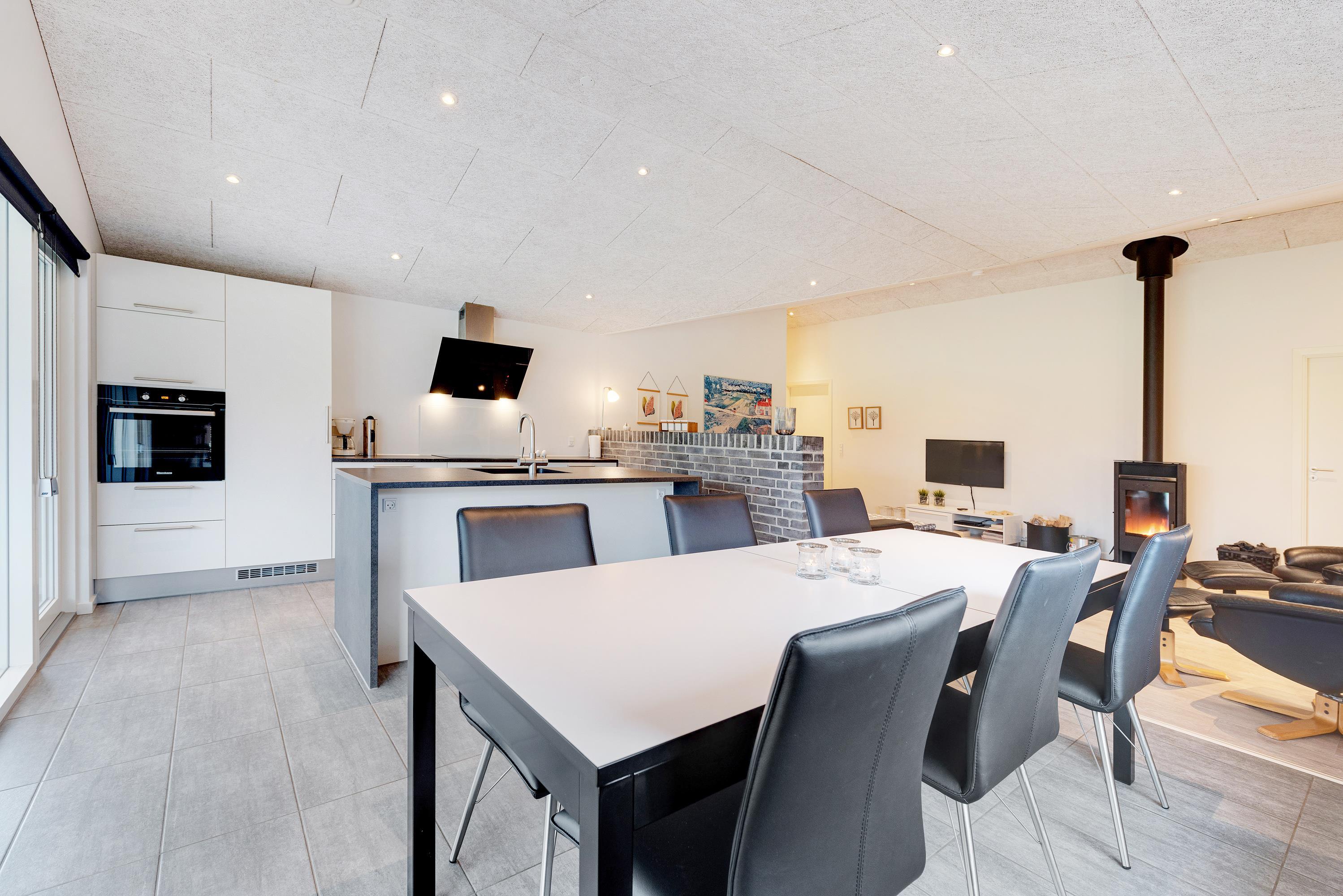 Husets hjerte spiseafdelingen og det store flotte, moderne køkken, der er velindrettet og blandt andet udstyret med en quooker- vandhane. Lyst og lækkert indrettet med brændeovn og flotte, komfortable møbler er det nemt at føle sig godt tilpas. Saml familien til en hyggeaften med billard, en dejlig middag og kortspil, imens ilden knitrer i brændeovnen og mørket sænker sig udenfor.