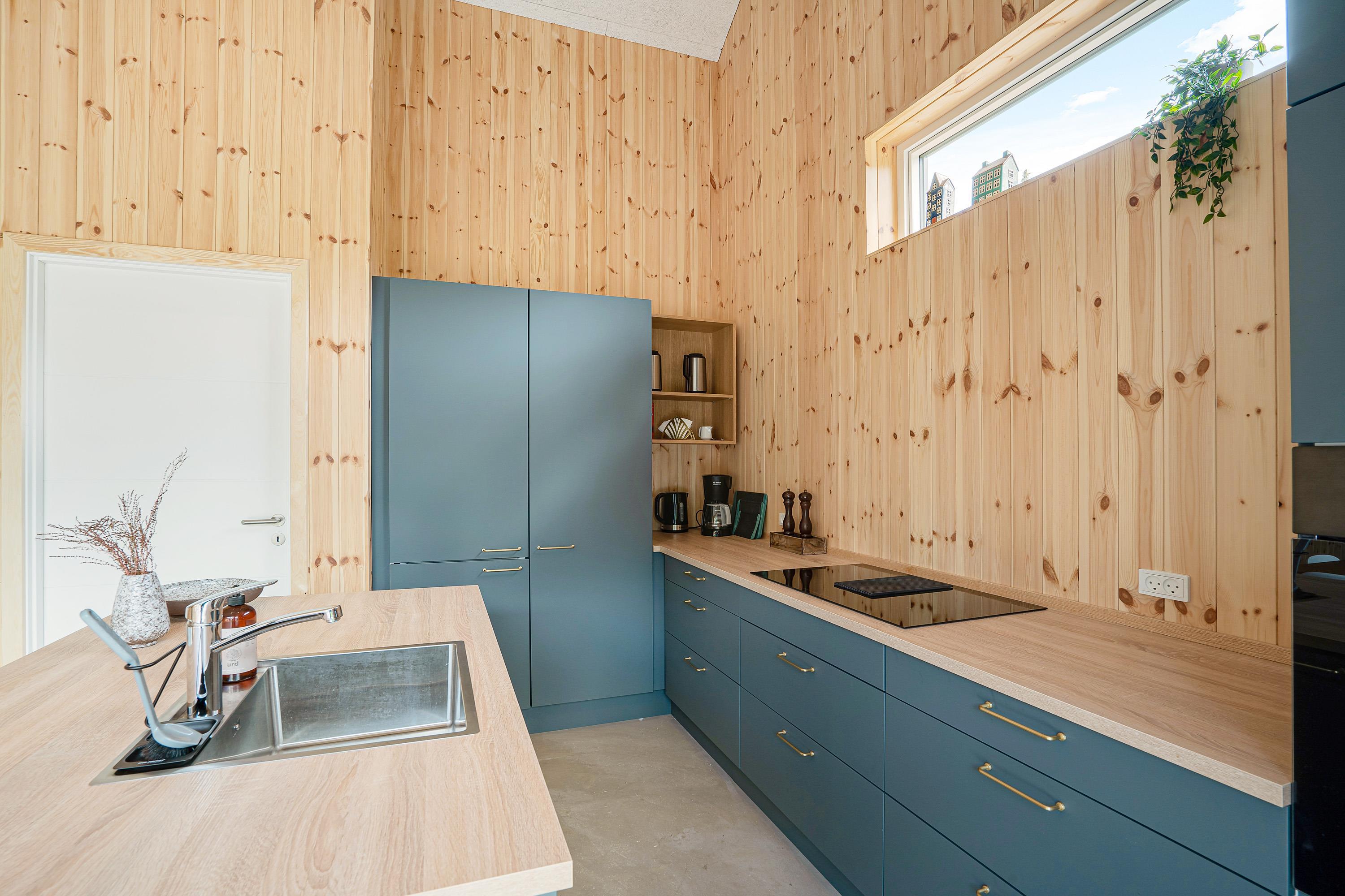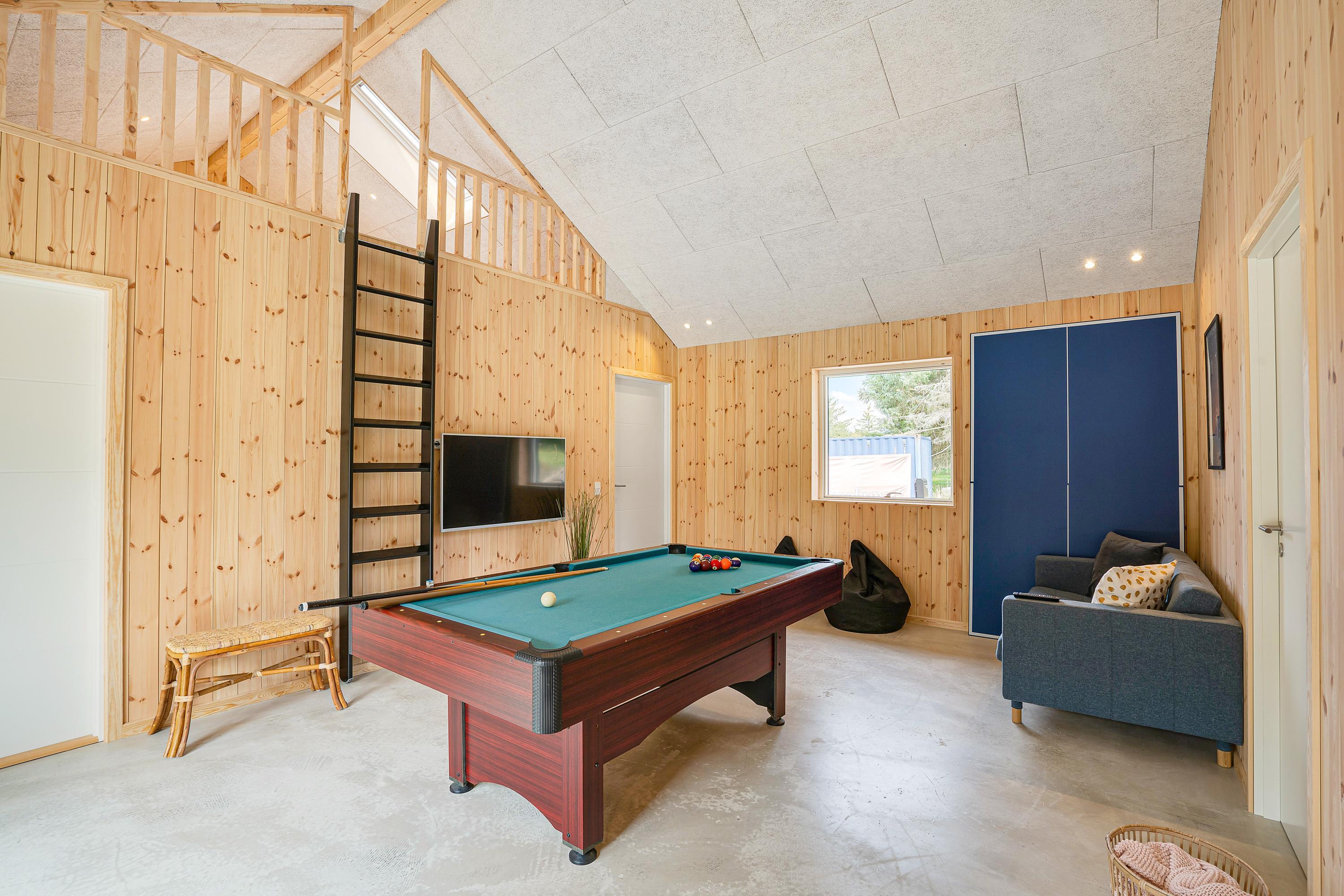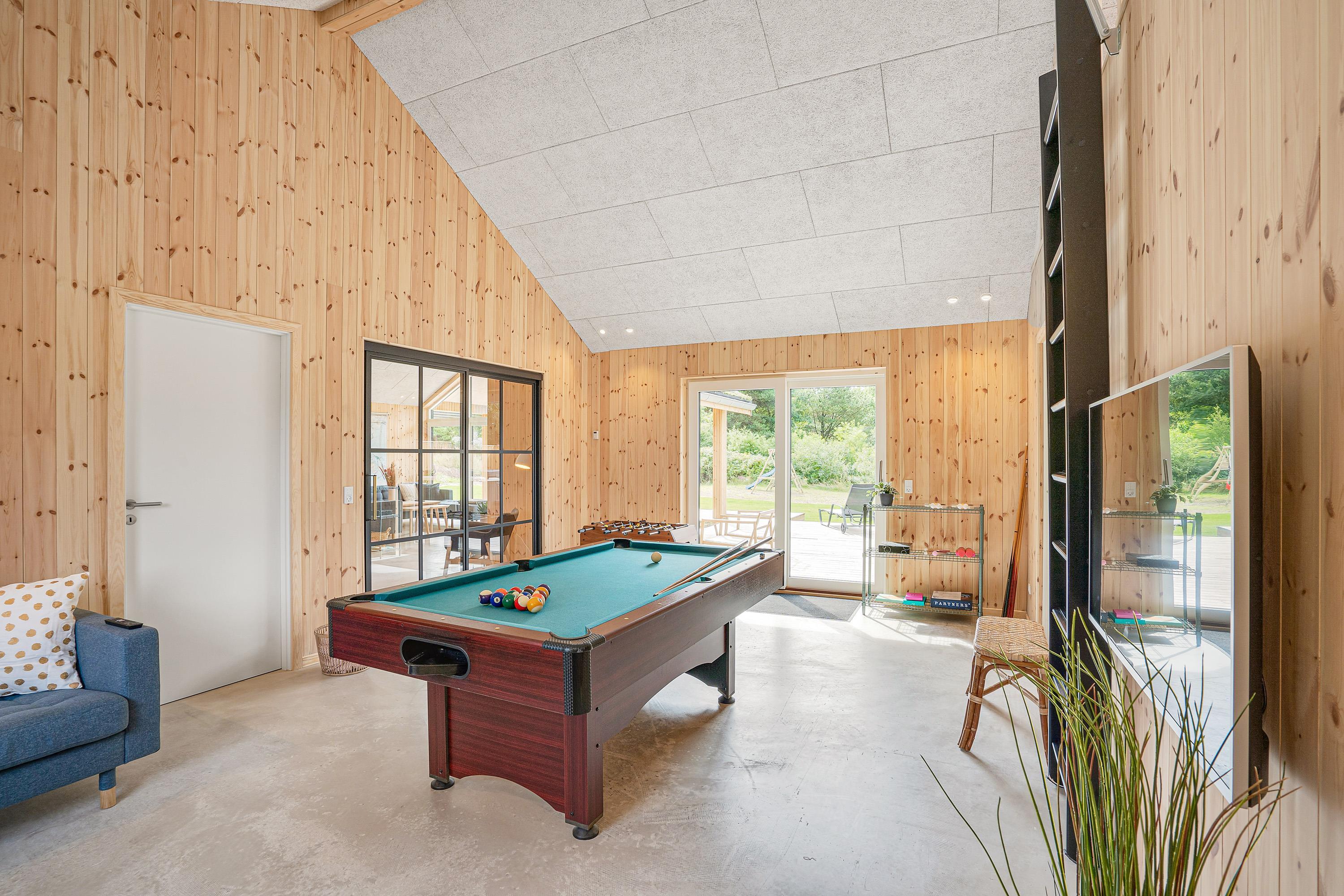 Sommerhusets hjerte er aktivitetsrummet med et aktivitetsbord, hvor I kan spille billard, airhockey eller bordtennis. I det rummelige køkkenalrum finder I køkkenet, hvor I kan tilberede feriens lækre måltider. Køkkenet går i et med stuen, hvor I kan læne jer tilbage og se en god film sammen.