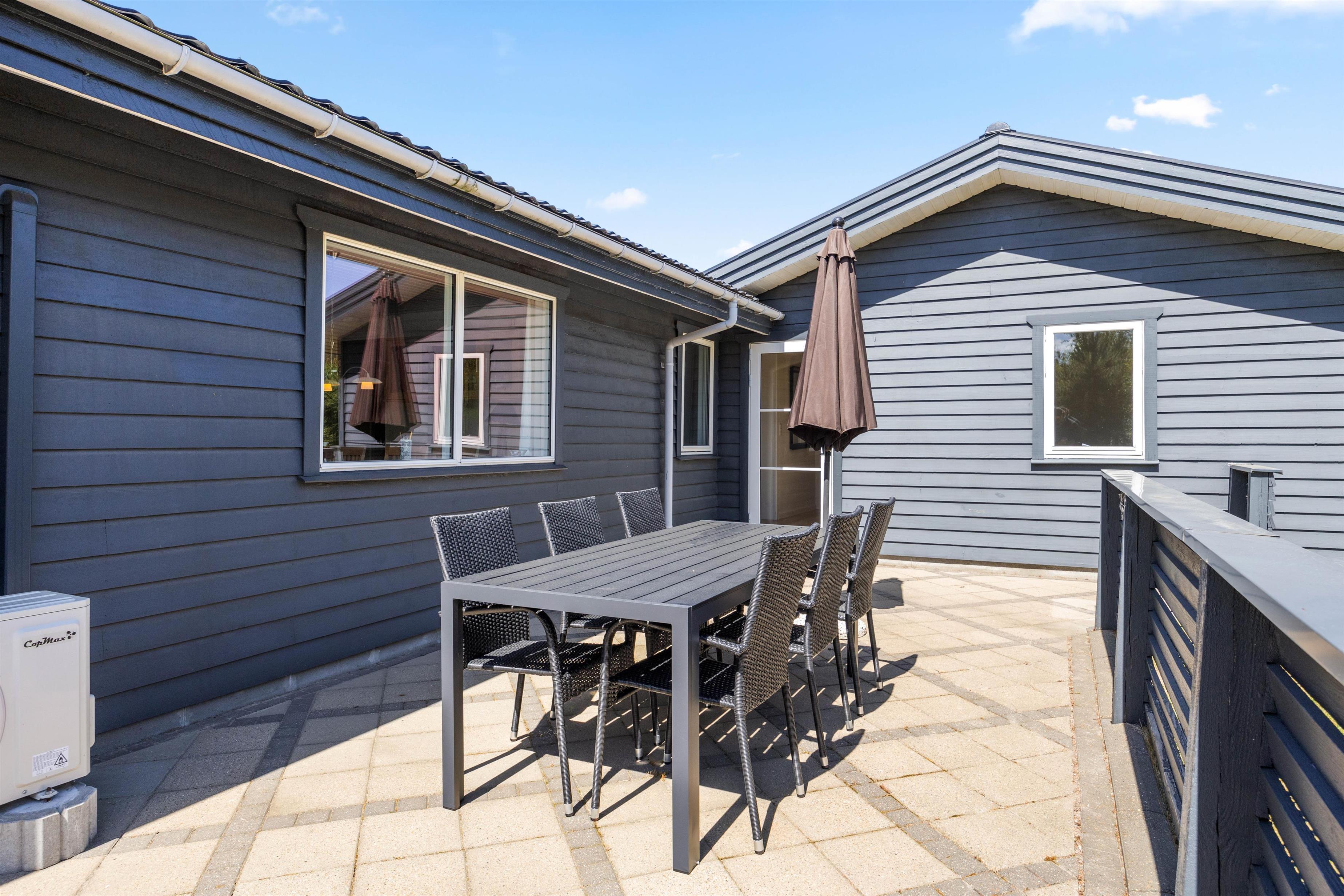 Feriehuset byder på masser af muligheder for at nyde naturen. I kan slappe uforstyrret af på den beskyttede terrasse, grille eller bare nyde den friske luft i fulde drag. Plænegrunden indbyder børn og voksne til at lege eller træne med hunden. Det afskærmede udendørsområde gør feriehuset til et ideelt valg for alle, der sætter pris på privatlivets fred og nyder at tilbringe tid udendørs.