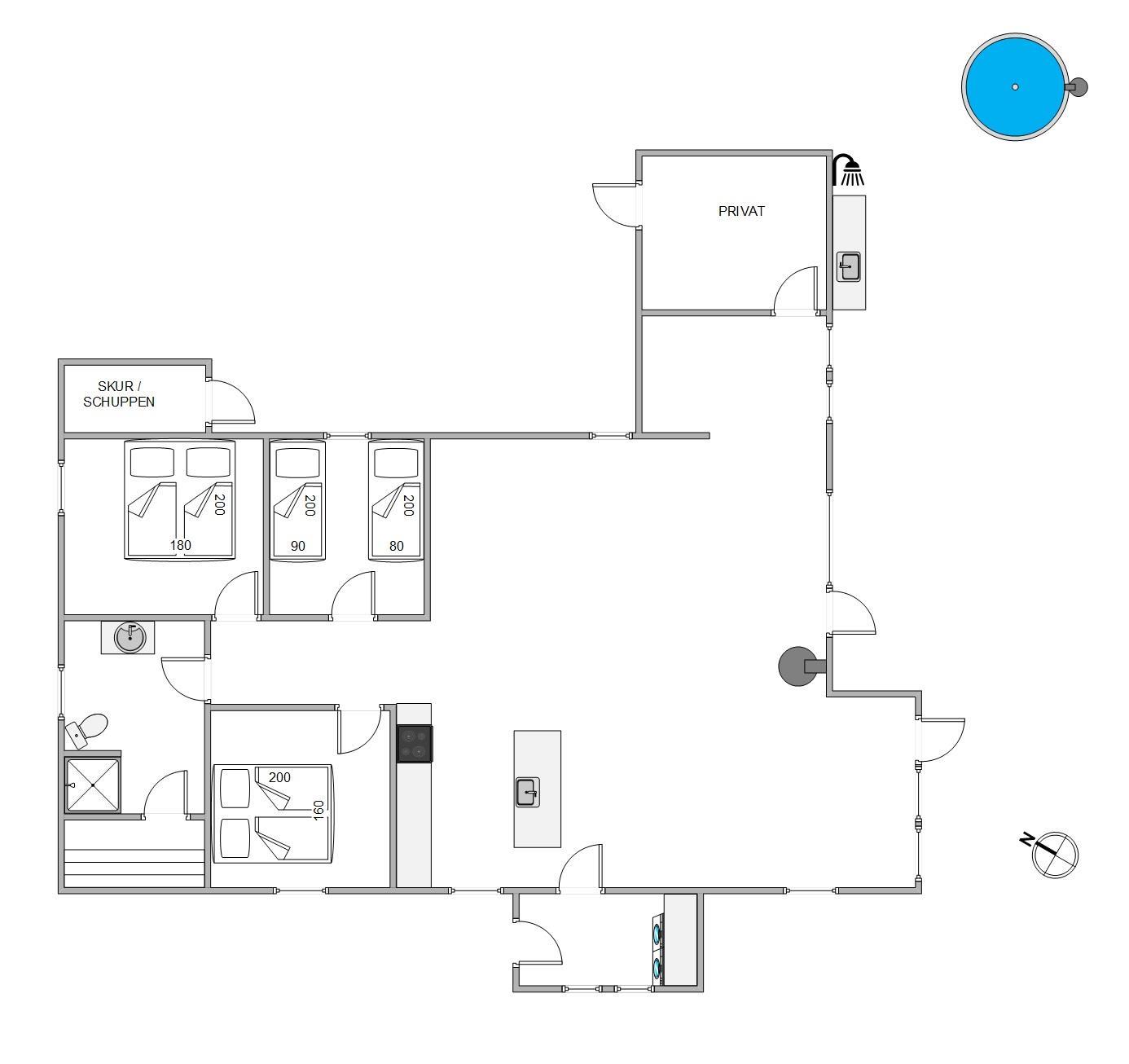 Højdepunktet i sommerhuset er utvivlsomt den varme sauna, som I har adgang til fra badeværelset. I saunaen kan I nyde varmen og få slappet fuldstændig af – her kan I også få varmen igen efter en tur ved Vesterhavet. På badeværelset - og i entreen - kan I desuden få glæde af gulvvarme. I entreen finder I også en vaskemaskine og tørretumbler, der garanterer frisk tøj under opholdet. Det fuldt udstyrede køkken skaber rammerne for gastronomiske oplevelser, hjulpet på vej af opvaskemaskinen og en separat 80-liters fryser.