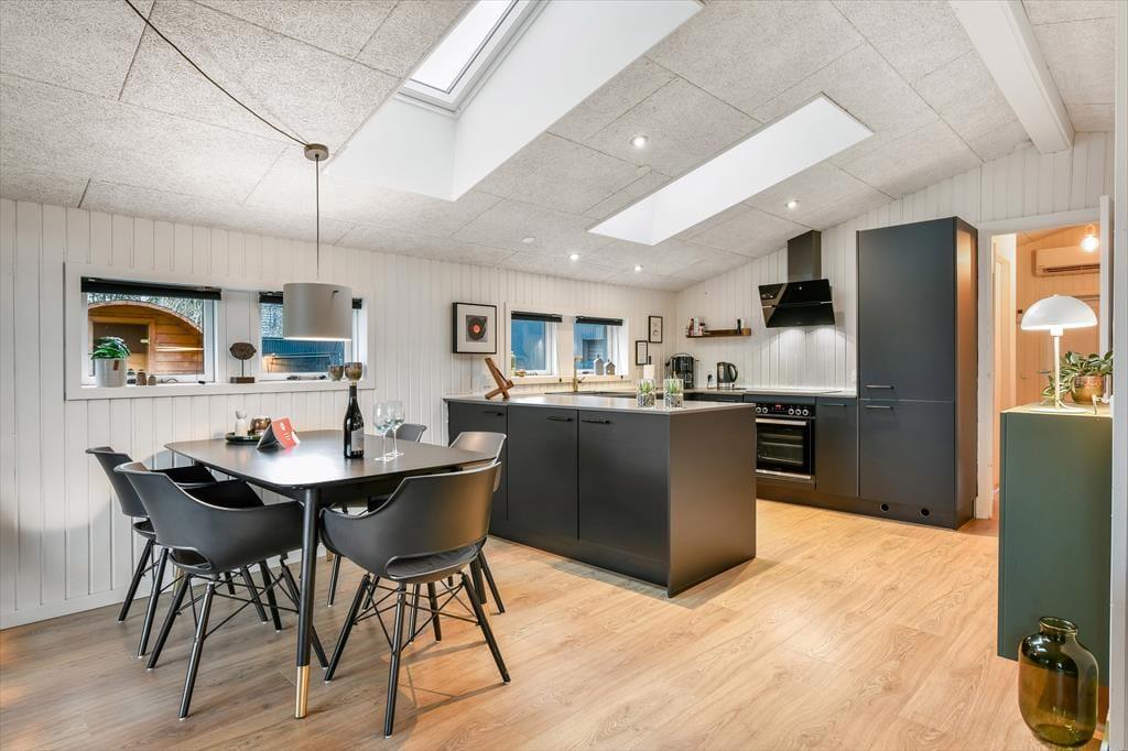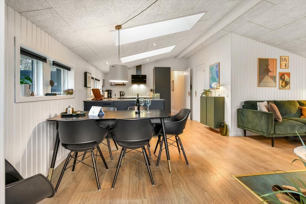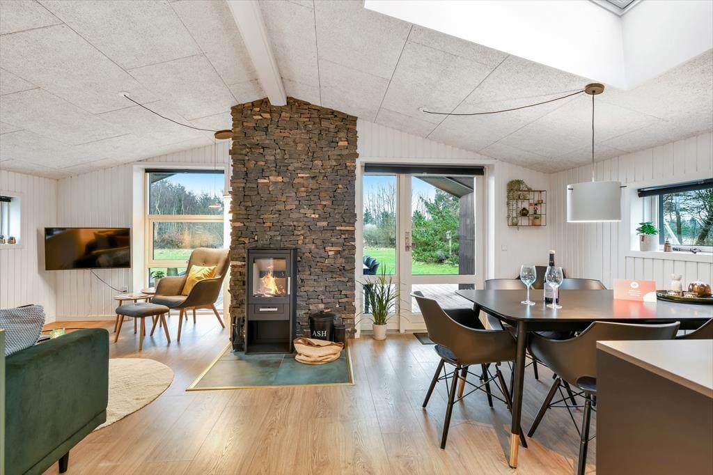 Sommerhuset præsenterer sig med en indbydende atmosfære, der gør det nemt at føle sig hjemme fra det øjeblik, du træder ind. Den stilfulde indretning kombinerer moderne komfort med klassisk hygge, hvilket skaber en behagelig ramme for din ferie. Huset byder på et veludstyret køkken, hvor du kan tilberede lækre måltider, som du kan nyde i den rummelige spise- og opholdsstue. Her er der også plads til at samles omkring brændeovnen, som skaber en varm og hyggelig stemning, især på de køligere aftener. I kan bruge masser af tid i det dejlige aktivitetsrum, hvor du kan finde pool/billardbordet og en hyggelig alkove giver mulighed for at sidde og læse i en god bog. En praktisk skriveplads sikrer, at du nemt kan tage hånd om hverdagens opgaver, selv når du er på ferie, eller børnene kan sidde her og tegne eller se en film.