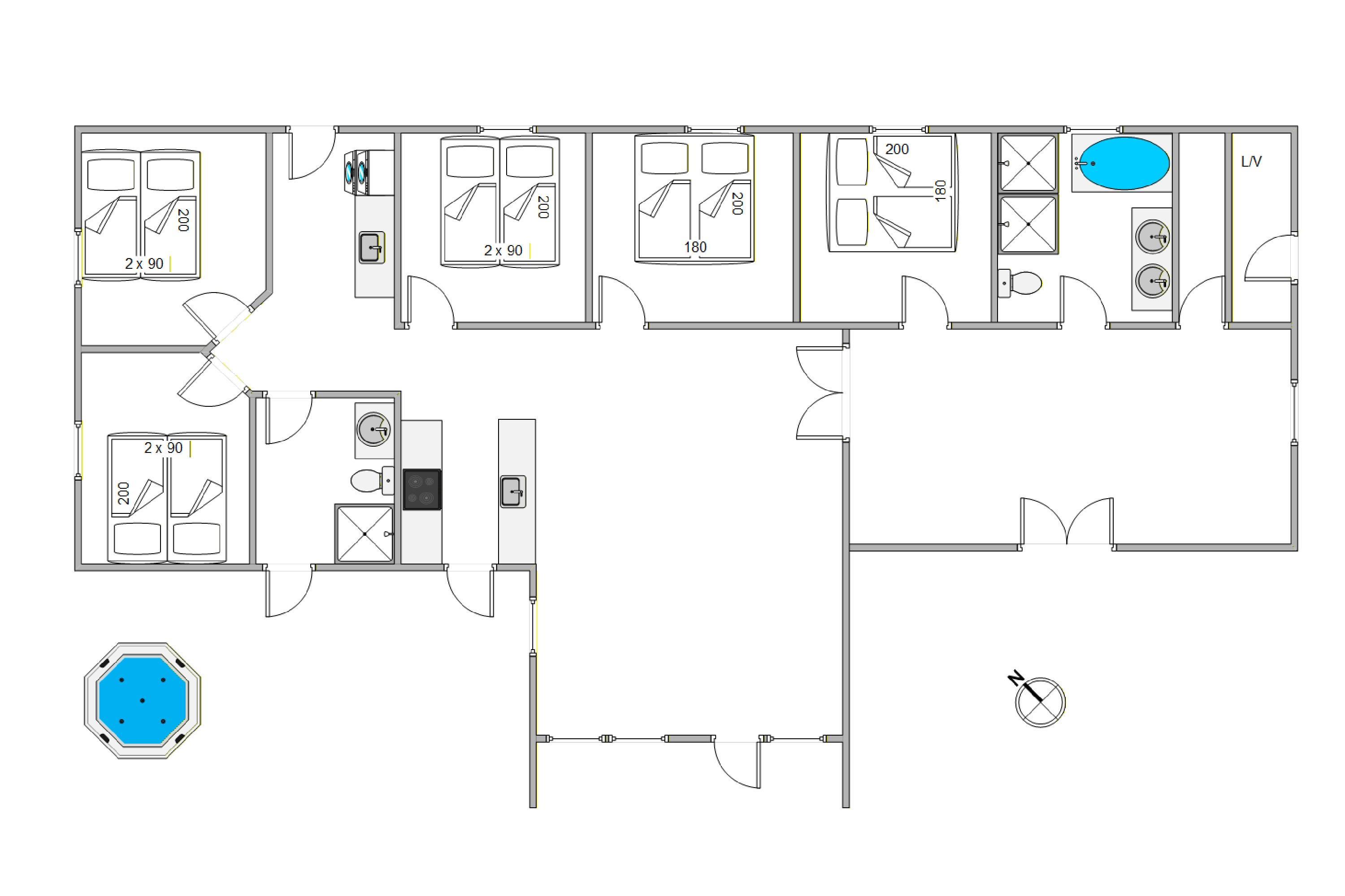 Sovepladserne er fordelt på 5 soveværelser, der alle er med dobbeltseng, så I kan få en god søvn. Alle soveværelserne er lyse og med god plads. I sommerhuset finder I også 2 badeværelser, som begge har indbygget gulvvarme. Badeværelserne er ligeledes store og lyse, og her er der virkelig kræset for jer som gæst.