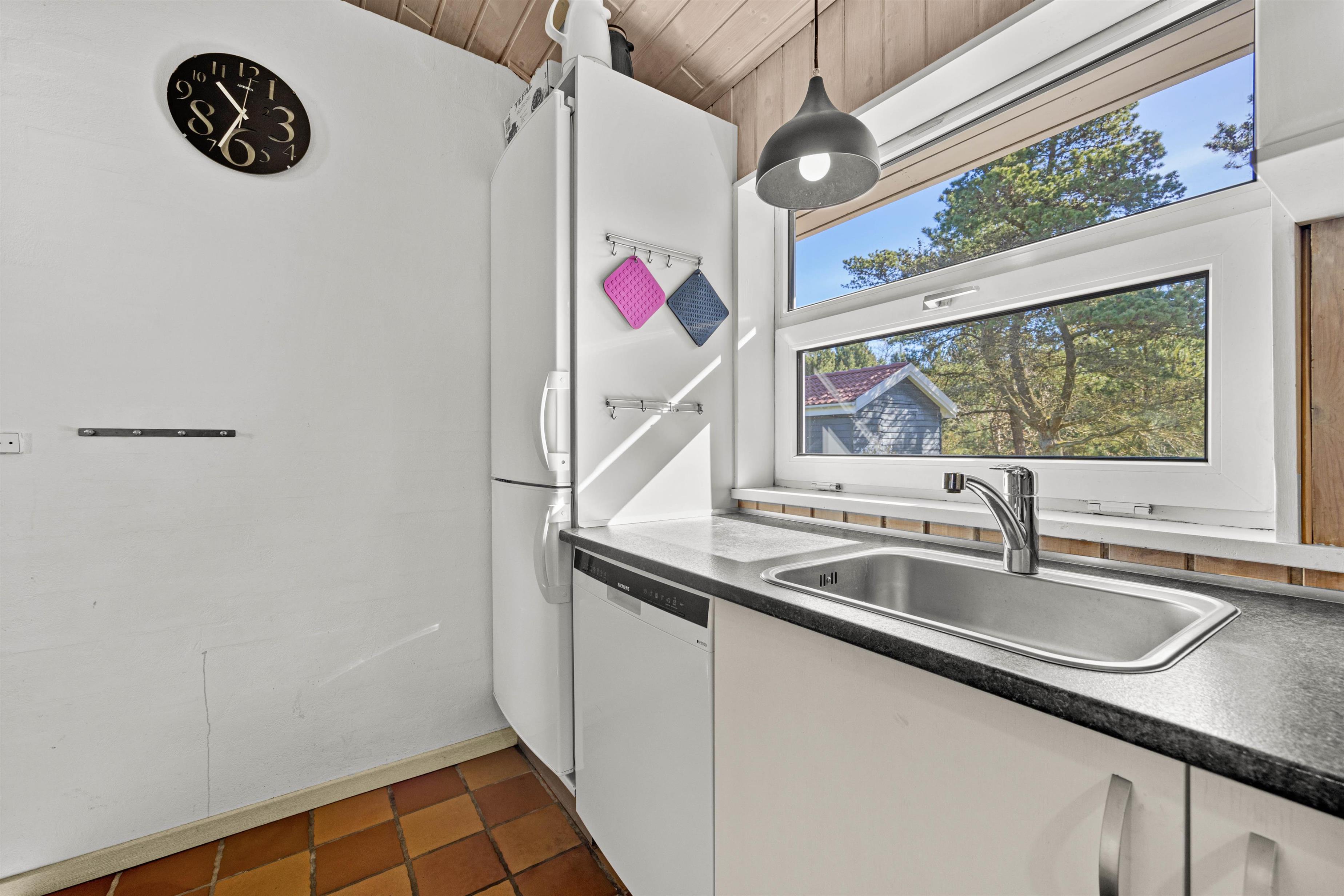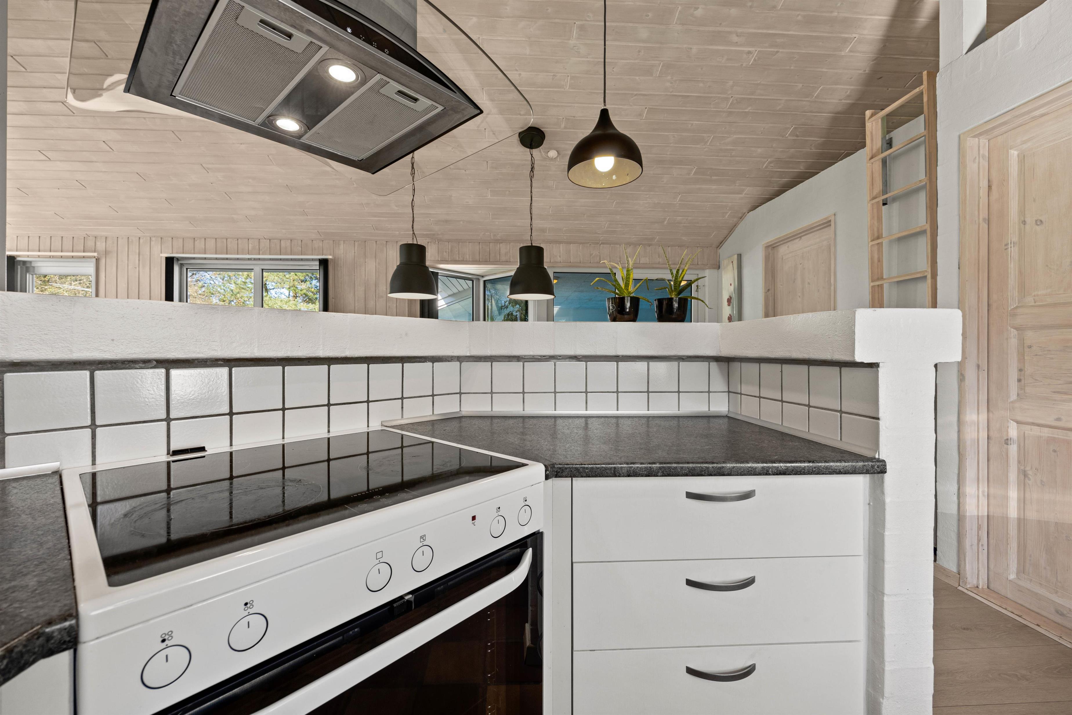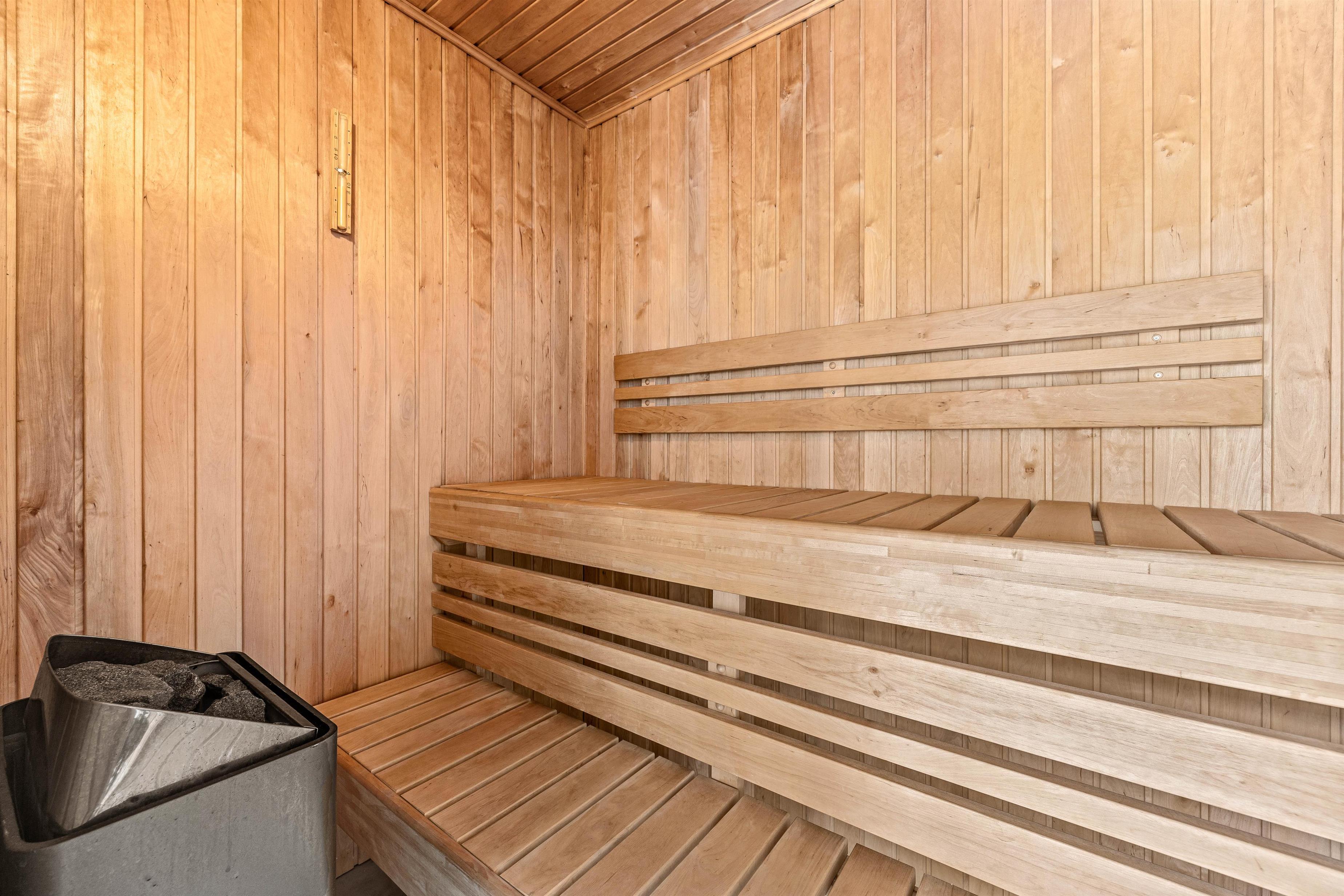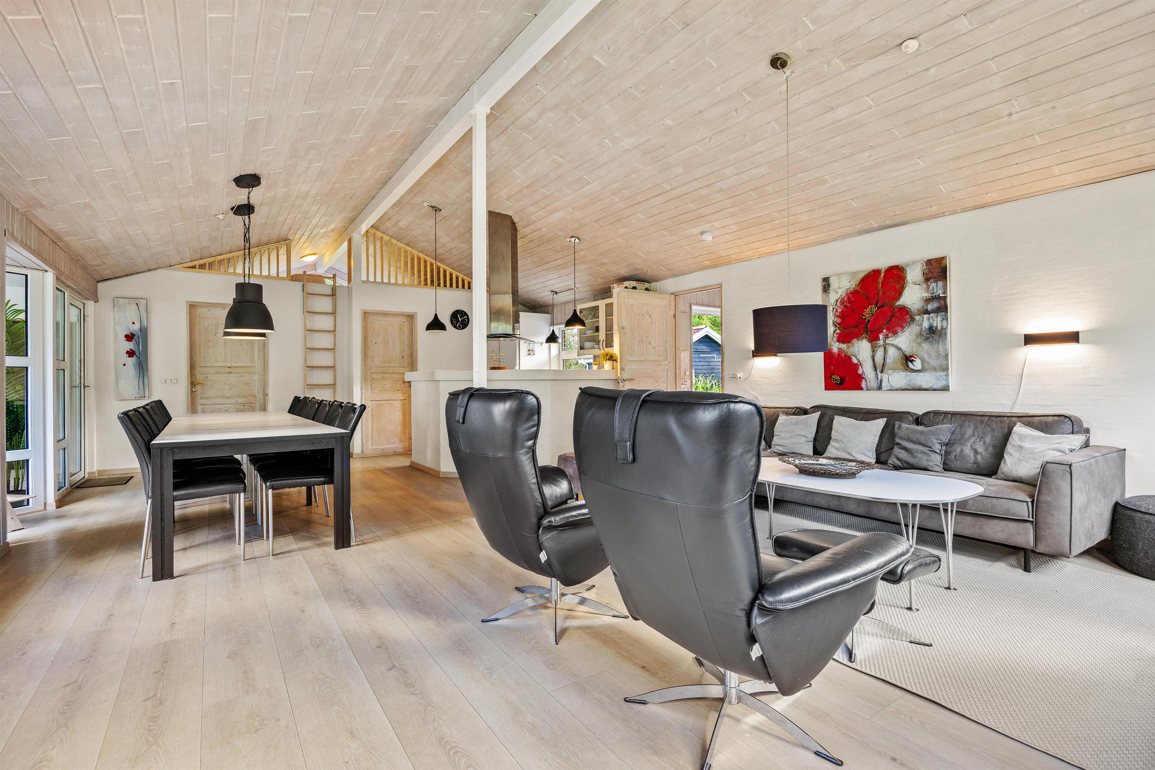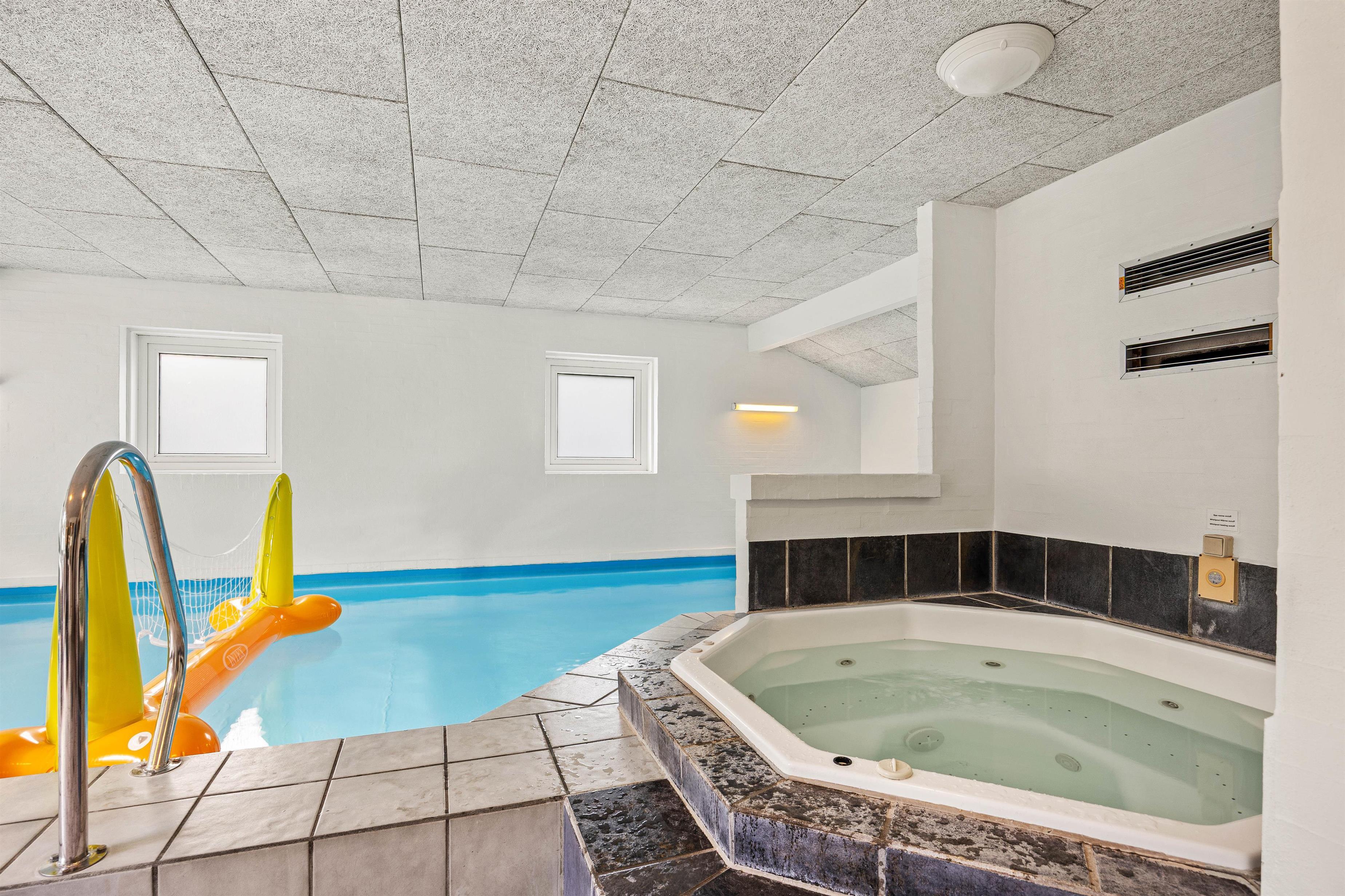 Højdepunkterne for dette dejlige feriehus er det det opholdsrum, hvor stue og køkken er i åben forbindelse, og selvfølgelig poolrummet. Her er den 23 m2 store swimmingpool samt spa og sauna til afslapning. Her er I sikret mange dejlige stunder uanset vind og vejr – poolen indbyder til både vandplaskeri, boldspil og dykning. Senere kan I alle samles omkring det lange spisebord. Lad opvaskemaskinen klare oprydningen, mens I slænger jer i den komfortable sofa. Pop popcornene, spil brætspil eller se film, mens brændeovnens varme breder sig i rummet.