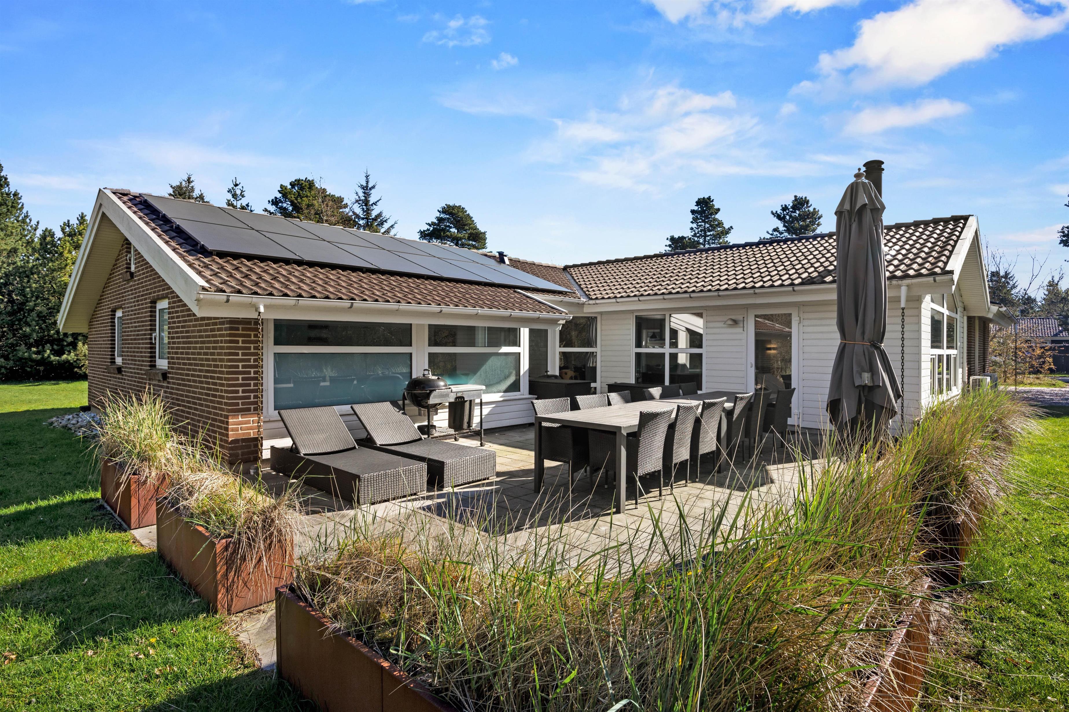 Beliggende i et roligt område finder I dette dejlige store poolhus til 12 personer og 2 hunde. Et lyst og moderne feriehus perfekt til den store familieferie. Her er I sikret afslapning og timevis af sjov med indendørs swimmingpool, spa og sauna. Udenfor er en stor indhegnet have med plads til leg, og 6 km har I til livlige Blåvand.