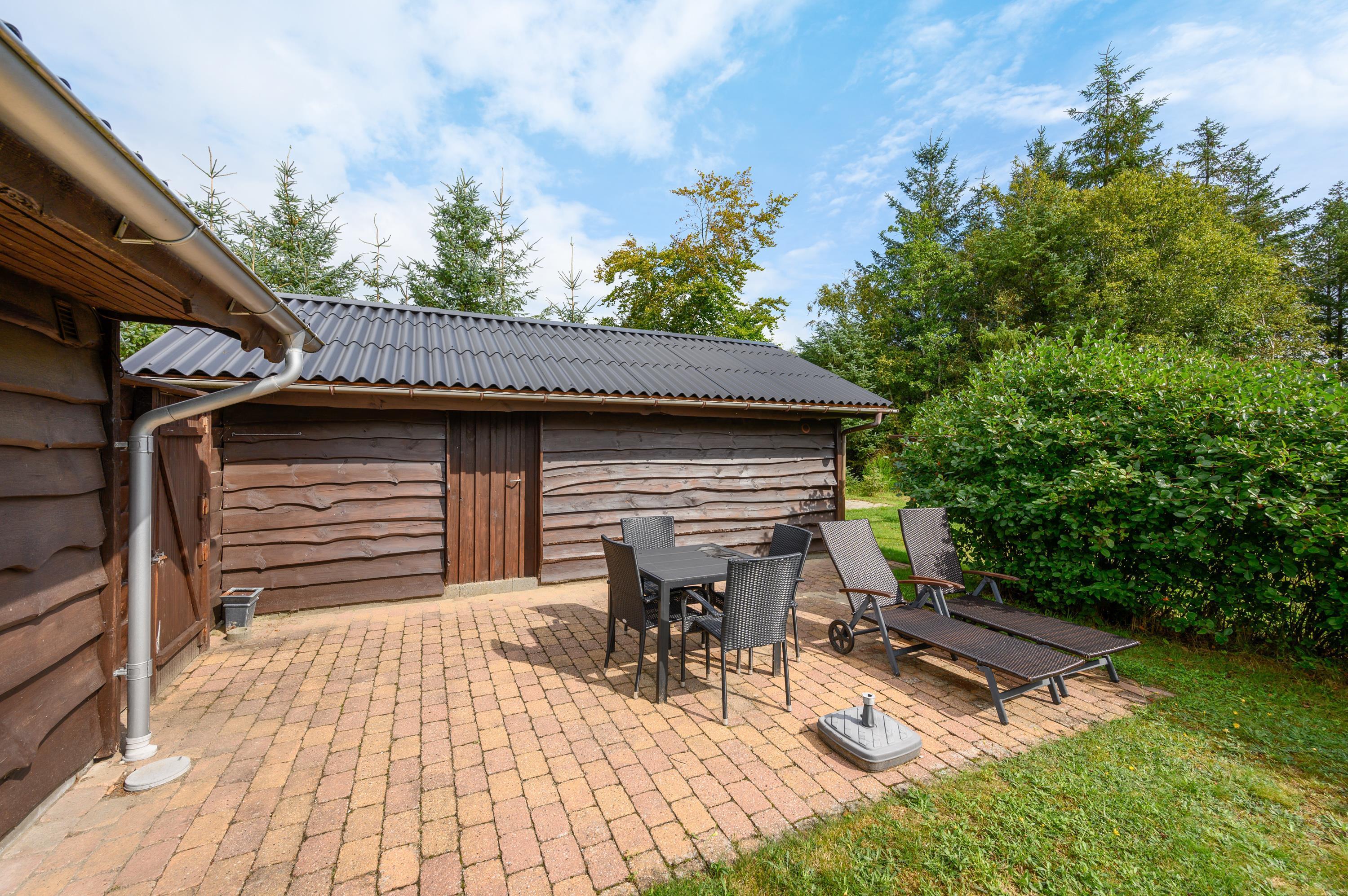 Rundt om sommerhuset finder I flere terrasser og hyggekroge, hvor I kan sætte jer til rette med en friskbrygget kop kaffe og nyde den vestjyske natur. Den ene terrasse er delvist overdækket og er det ideelle sted til en hyggelig grillmiddag i aftensolen.