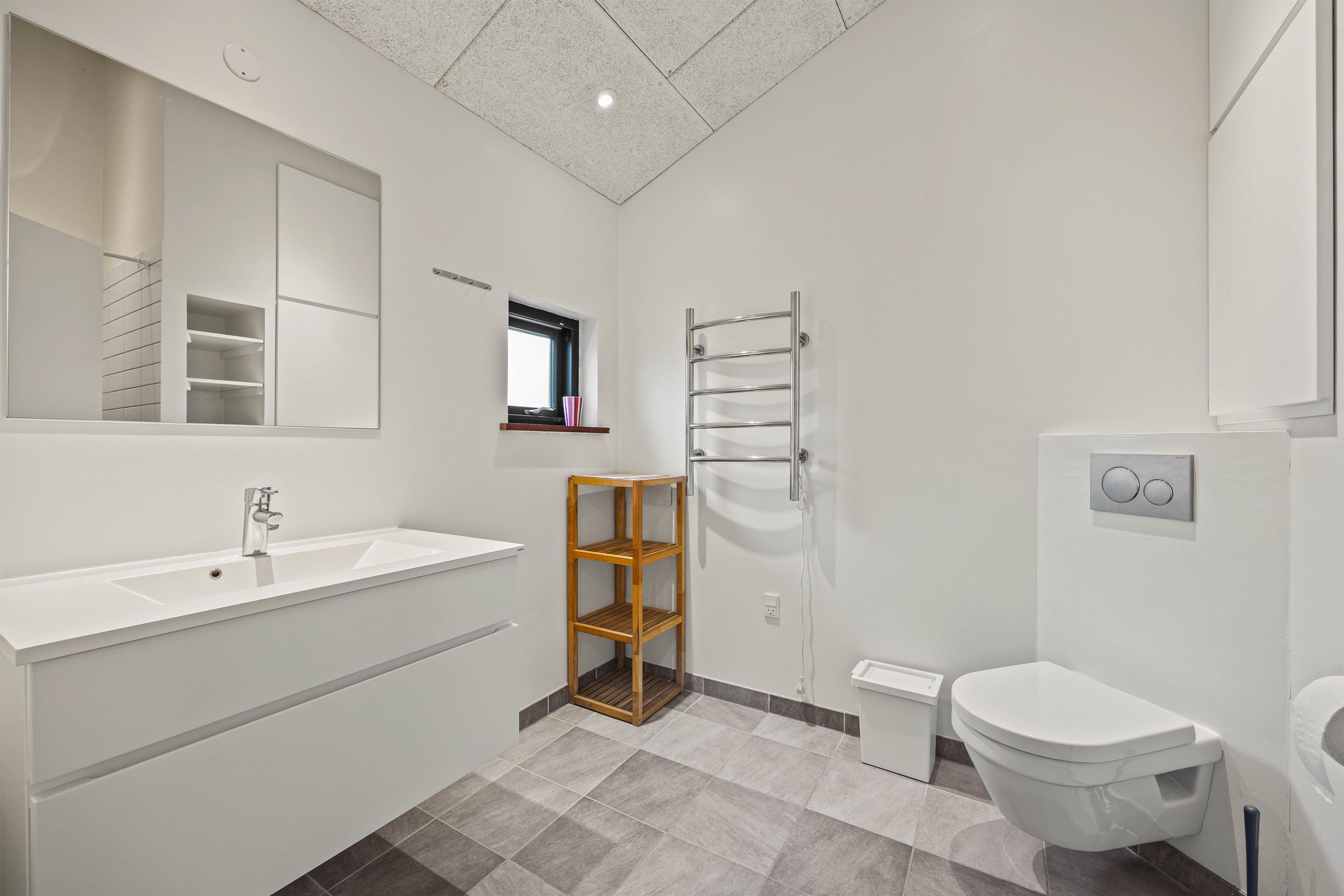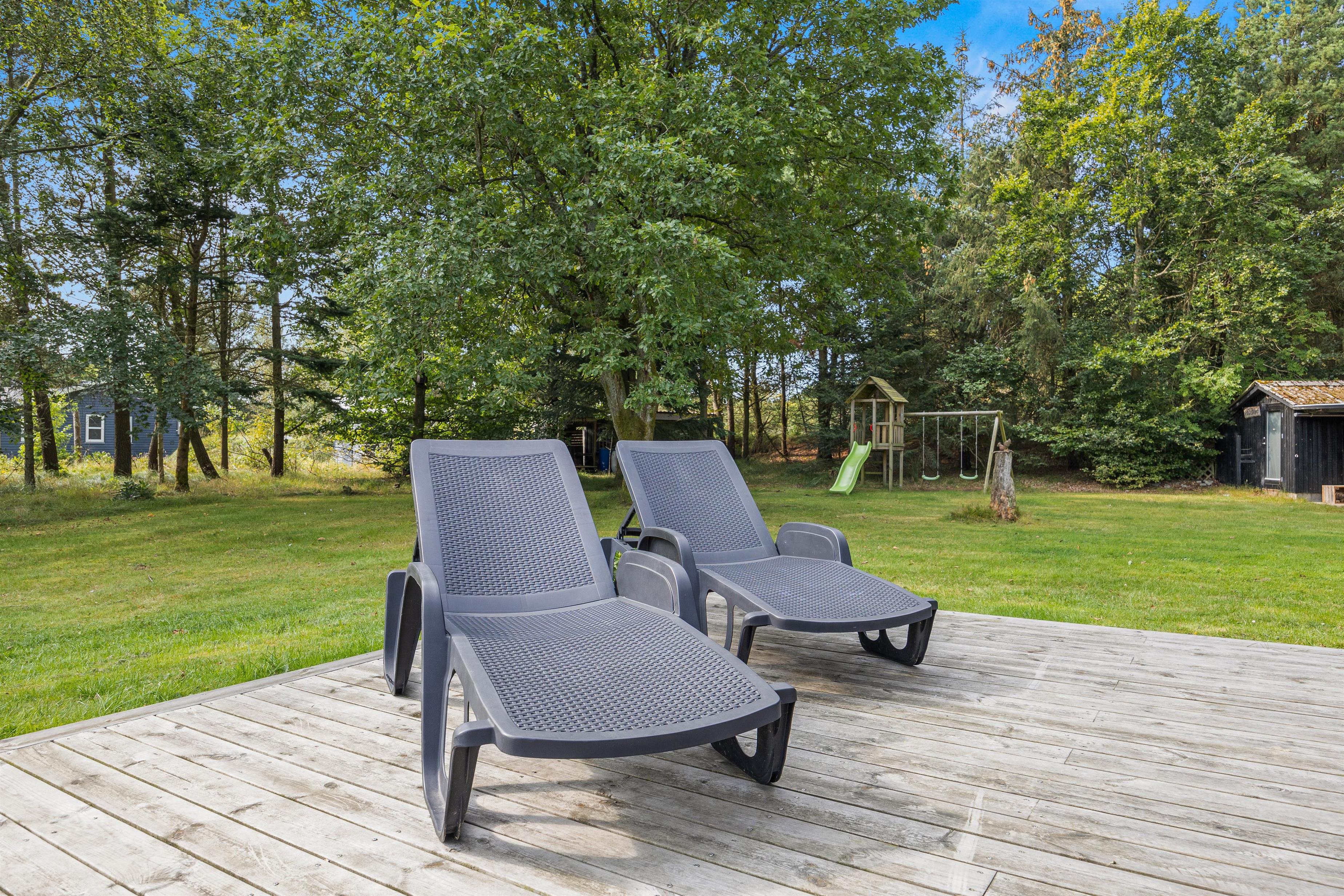 Skulle I liste jer ud om morgenen fra soveværelsets terrassedør for at høre naturen vågne, er der ikke langt til terrassens møbler eller solvogne. Der er nemlig plads til, at de kan stå parat til en kop morgenkaffe. Grillen står naturligvis til rådighed for et godt måltid hele dagen og skulle vind og vejr ikke være til ophold i det fri, kan I trække ind under den overdækkede terrasse.