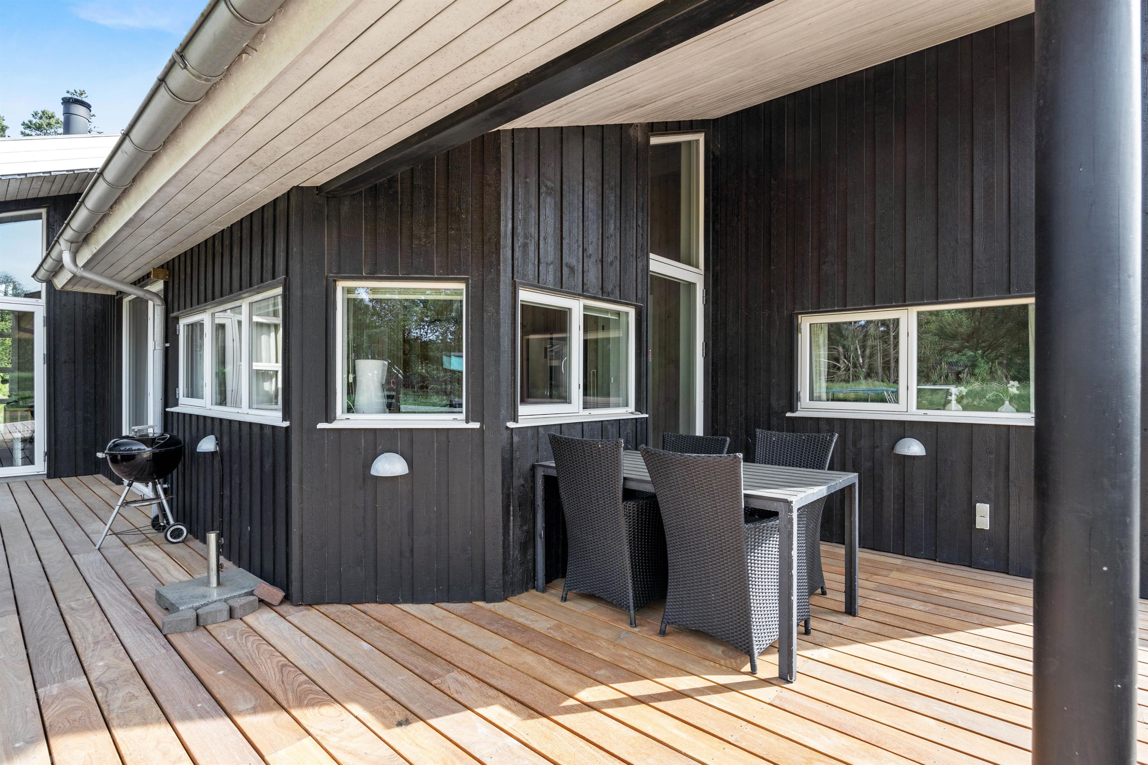 Sommerhuset er lyst og indbydende indrettet, og i alrummet er der et fantastisk lysindfald fra de store vinduespartier mod terrassen. I stuen er der en brændeovn, som ikke blot spreder varme, men også en ekstra hyggelig feriestemning. Måske I trænger til afslapning på sofaen og nyde en god film, som I kan streame via sommerhusets chromecast? Som et ekstra plus er der fjernsyn i alle værelser, så I kan se noget forskelligt.