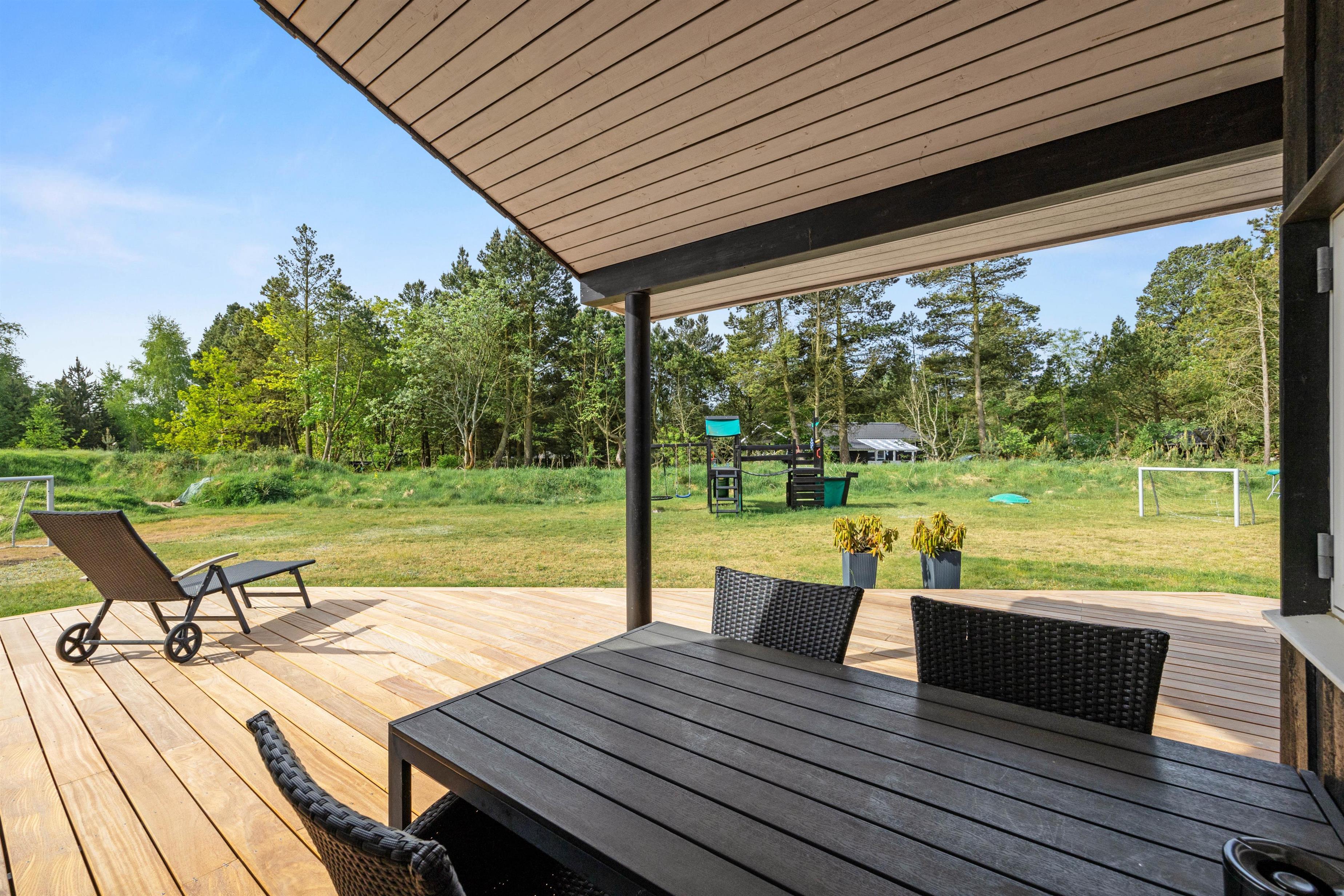 Sommerhusets udearealer vil uden tvivl være jeres favoritsted på en varm sommerdag. Her kan I nyde solen fra terrassen, mens børnene leger på den store grund. Her er der god plads til boldspil, og ved sommerhuset er der både sandkasse, legestativ og trampolin.