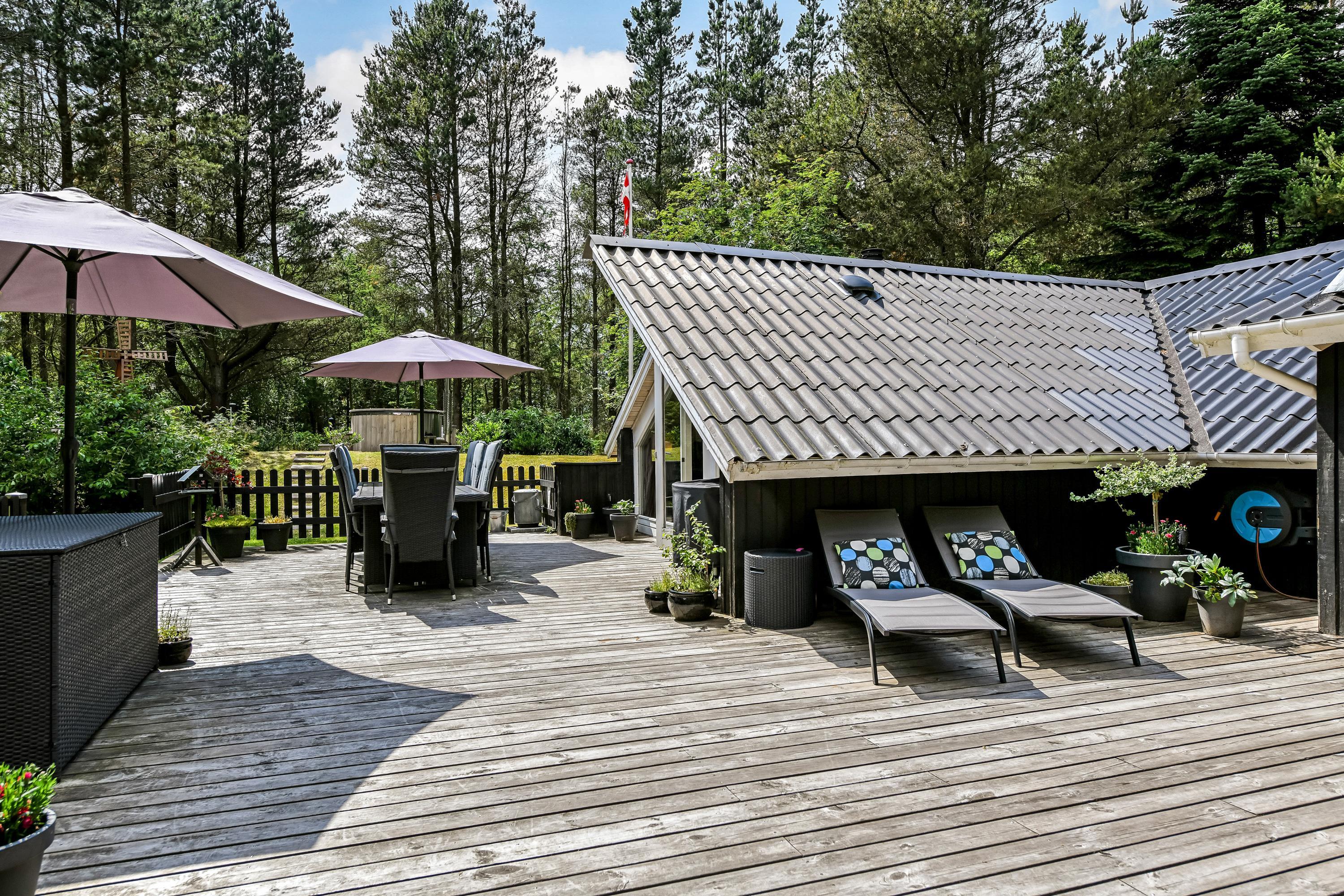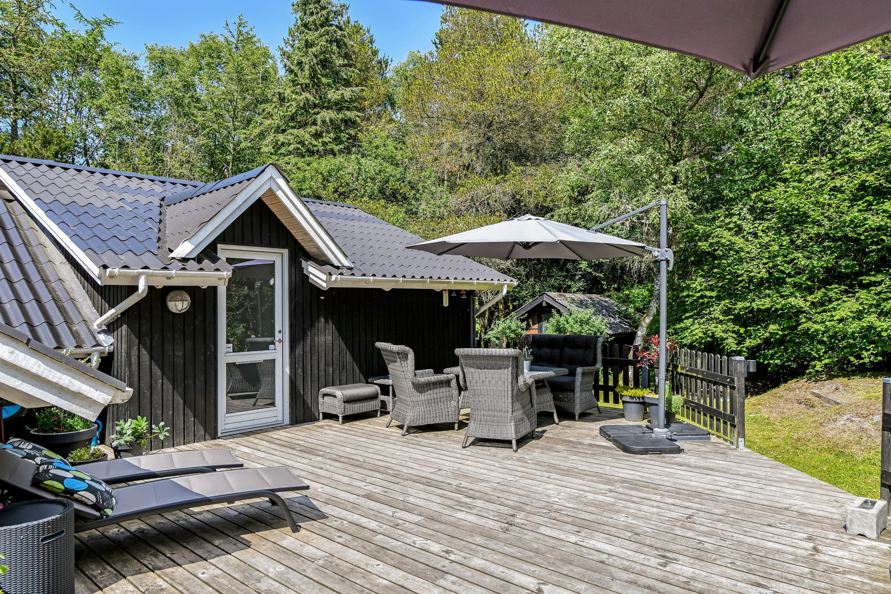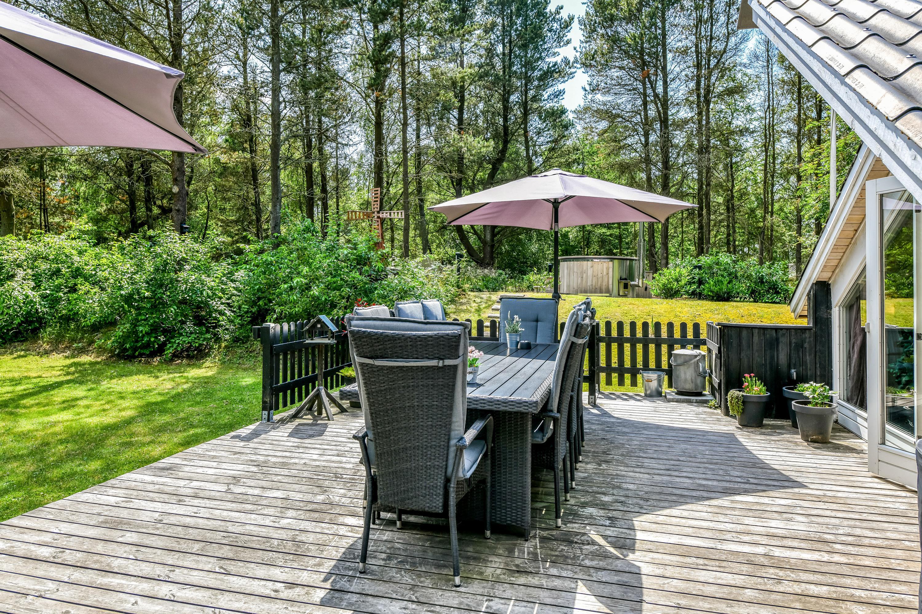 På den afskærmede terrasse kan I lægge jer godt til rette i havemøbler og liggestole, mens børnene leger i sandkassen. Om aftenen kan I bikse lækker mad sammen på grillen og nyde de varme ferieaftener ude på terrassen.